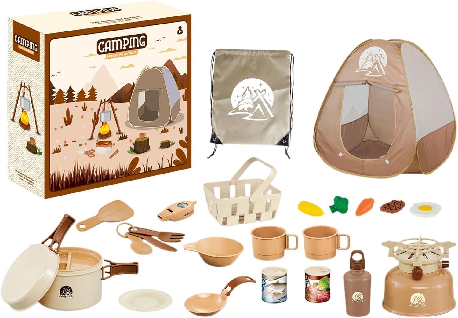 Set da gioco sicuro: lascia che i tuoi bambini intraprendano un'avventura in campeggio con il nostro set da campeggio a misura di bambino. Realizzato appositamente con bordi arrotondati e realizzato con materiali sani e sicuri, è adatto a bambini dai 3 ai 6 anni e offre un ambiente sicuro per più ore di divertimento ed esplorazione evitando graffi e buchi. Migliora la loro immaginazione: lascia che tuo figlio realizzi i suoi sogni in campeggio con un set da campeggio realistico, dagli utensili agli strumenti per il barbecue. Il design dettagliato migliora la loro esperienza di gioco di ruolo e la comprensione e scene a vita quotidiana, ottimo per una grande avventura all'aria aperta Facile trasporto e installazione: preparati per il divertimento all'aria aperta con facilità utilizzando il nostro set da campeggio per bambini. Con una scatola portaoggetti ben progettata che può contenere tutti gli , il set è ottimo per le gite in famiglia e le gite scolastiche. La sua capacità ragionevole e il design facile da trasportare lo rendono ideale per il campeggio del fine settimana Migliora i legami familiari: prova la gioia 'interazione genitore-figlio con il set da campeggio dei nostri bambini. Partecipate insieme alle attività di campeggio come costruire tende, preparare il cibo ed esplorare la natura per migliorare le relazioni. Sviluppa il lavoro di e le abilità sociali promuovendo un ambiente divertente e amorevole per tutta la famiglia Ideale per momenti memorabili: crea ricordi indimenticabili con il nostro set da campeggio per bambini. Ottimo per compleanni e vacanze, questo squisito set regalo porterà sicuramente gioia ed eccitazione ai tuoi figli o ai figli dei tuoi amici. Diffondi felicità e amore in ogni avventura
