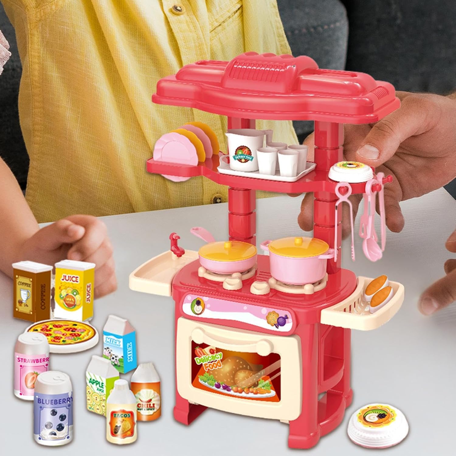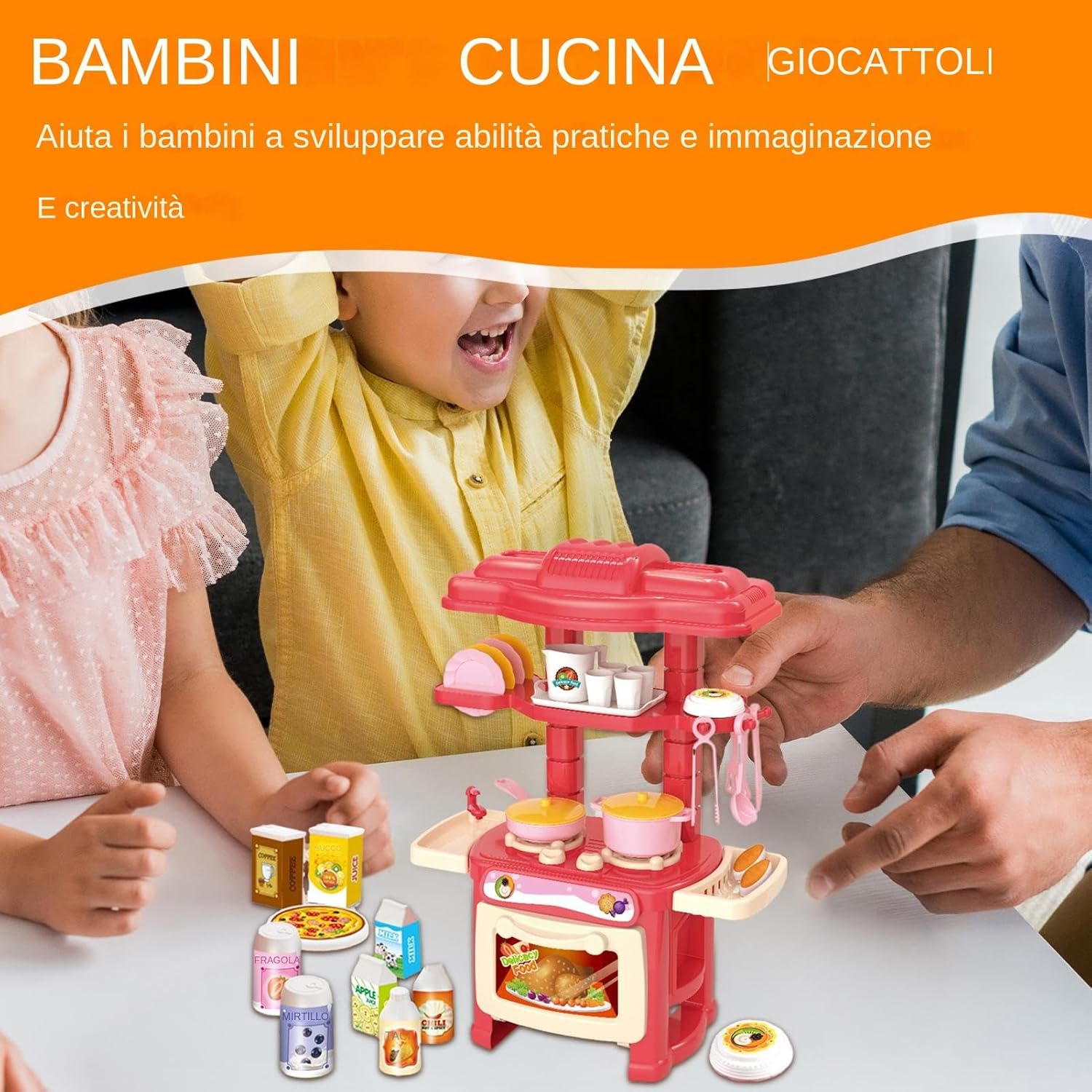 Set da gioco per piccola cucina: questo set da cucina offre una varietà di da cucina, stoviglie e adesivi, oltre a tanto spazio sul bancone, incoraggiando i bambini a sviluppare la loro creatività e immaginazione mentre si impegnano in finti giochi di cucina Non sbiadisce facilmente: questo set da gioco da cucina è costruito con materiale in PVC per resistere all'utilizzo e all'uso dei bambini. Il prodotto offre stabilità e durata con buona resilienza, non facile da rompere o sbiadire, rendendolo la scelta ideale per un gioco sicuro e duraturo Montaggio pratico: questo set da gioco da cucina è facile da installare in pochi minuti, incoraggiando il di qualità tra genitori e figli mentre entrambi apprendono abilità pratiche Giocattoli illuminanti: lascia che il bambino si immerga in un mondo di giochi di ruolo in cucina con questo set da gioco. Il suo assemblaggio può affinare le loro abilità pratiche, mentre il gioco fantasioso li aiuta a crescere e svilupparsi Regalo unico: stimola l'immaginazione di figlio con l'adorabile design di questo set da cucina. Offrilo ai tuoi amici e familiari per un regalo creativo e lascia che sviluppino la loro creatività culinaria