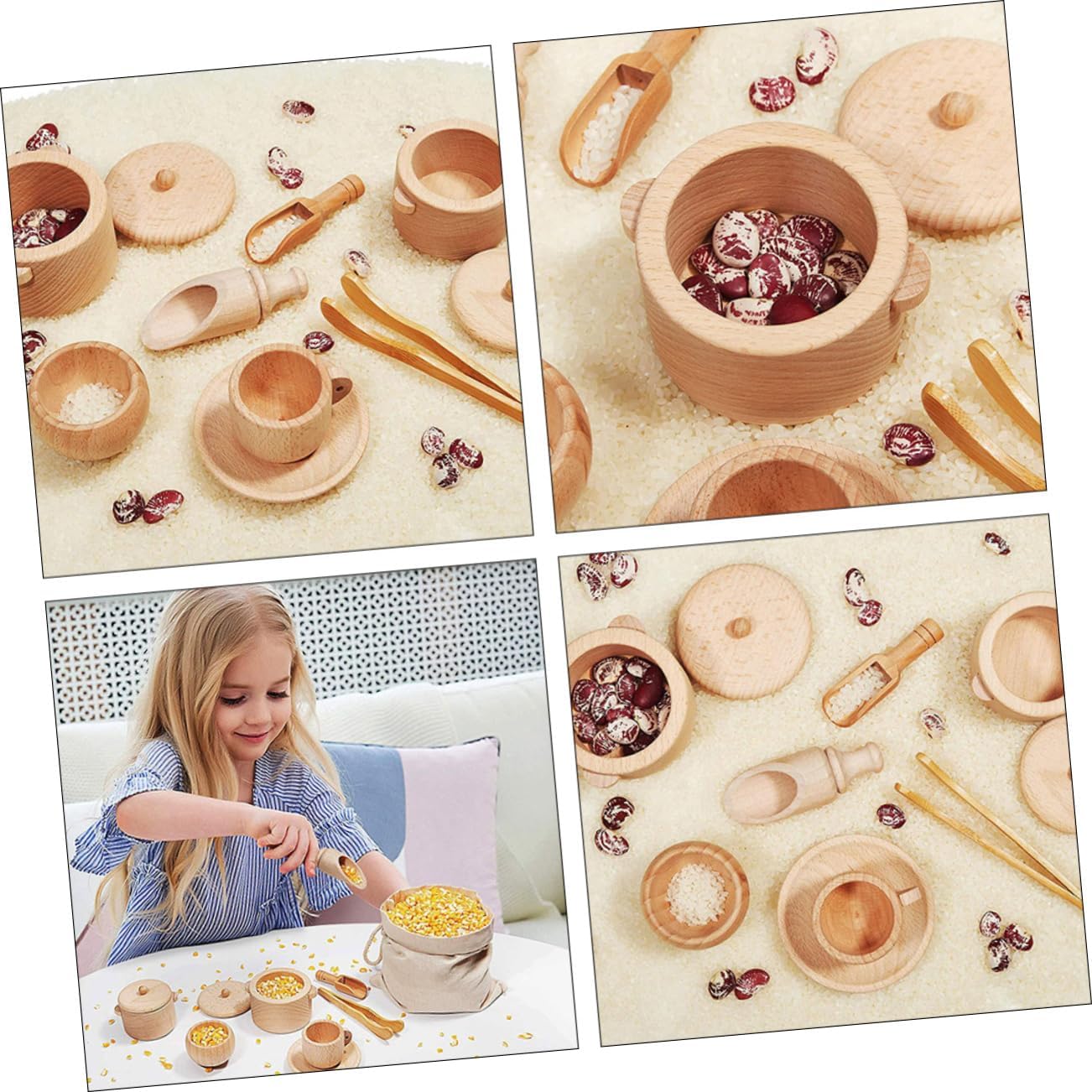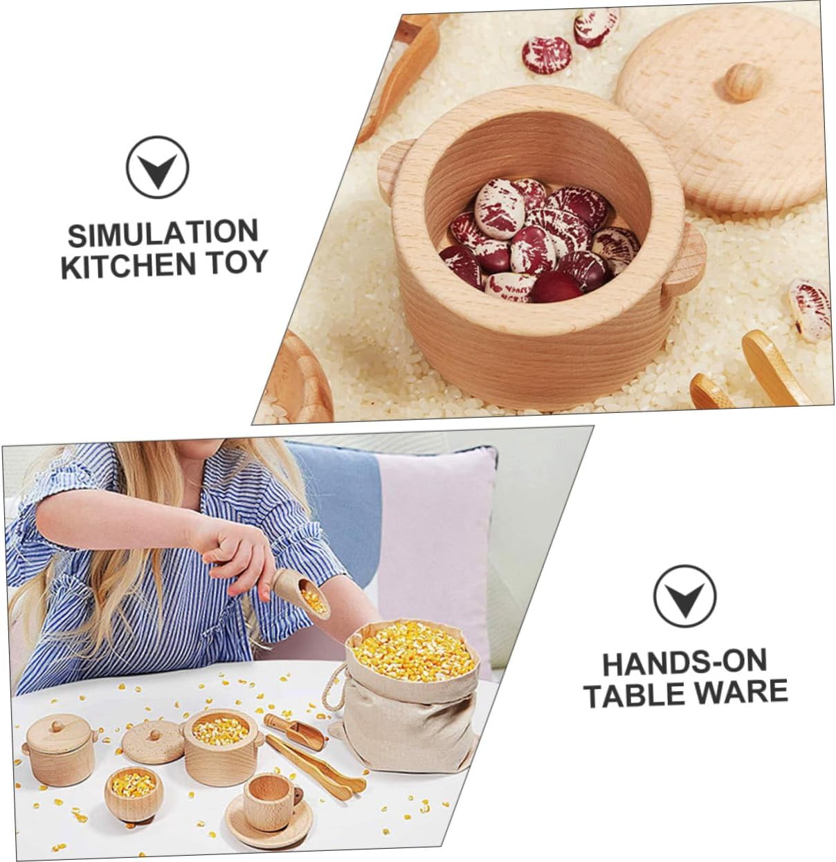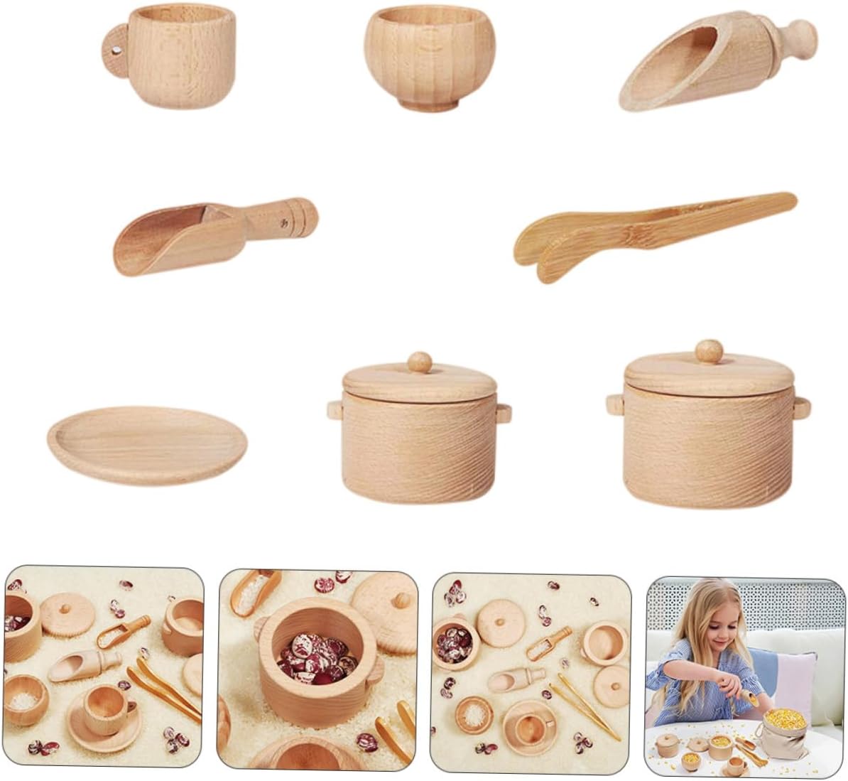 Stoviglie pratiche: strumenti sensoriali pratici sufficienti per sviluppare competenze reali, trasferire lavoro, apprendere capacità motorie e divertirsi, mini utensili da cucina Mini stoviglie giocattoli: realizzati con materiali, sono molto sicuri e non possono essere costantemente supervisionati dai genitori, giocattoli da gioco, giocattoli per bambini: promuovere lo sviluppo del cervello dei bambini e promuovere il loro interesse, strumento per le stoviglie Giocattoli per stoviglie in legno: possono essere portati con i genitori al Per promuovere l'interazione genitore-figlio e approfondire la relazione tra bambini e genitori, giocattoli per le stoviglie Strumenti sensoriali per stoviglie: set di giocattoli da cucina è facile da usare e promuove le abilità pratiche e l'immaginazione dei bambini. È molto adatto come festa dei bambini/compleanno/Natale o come strumento per la casetta dei giochi