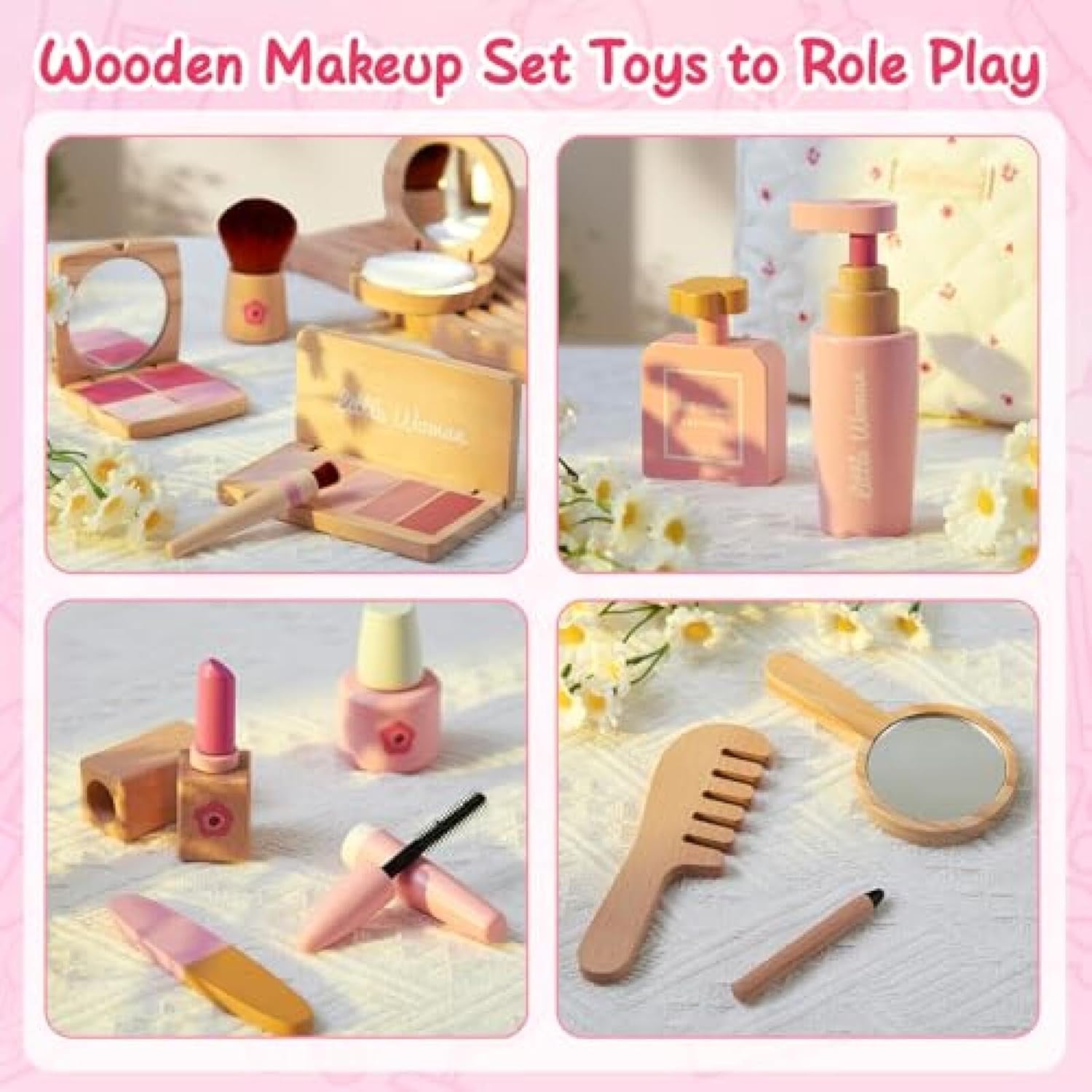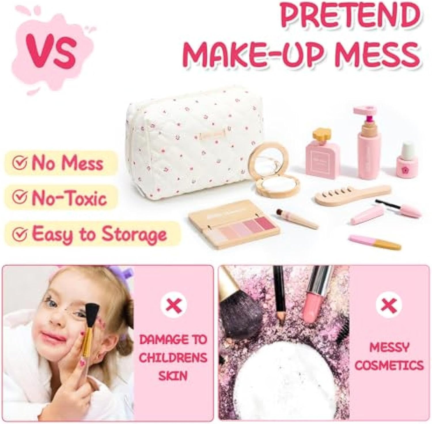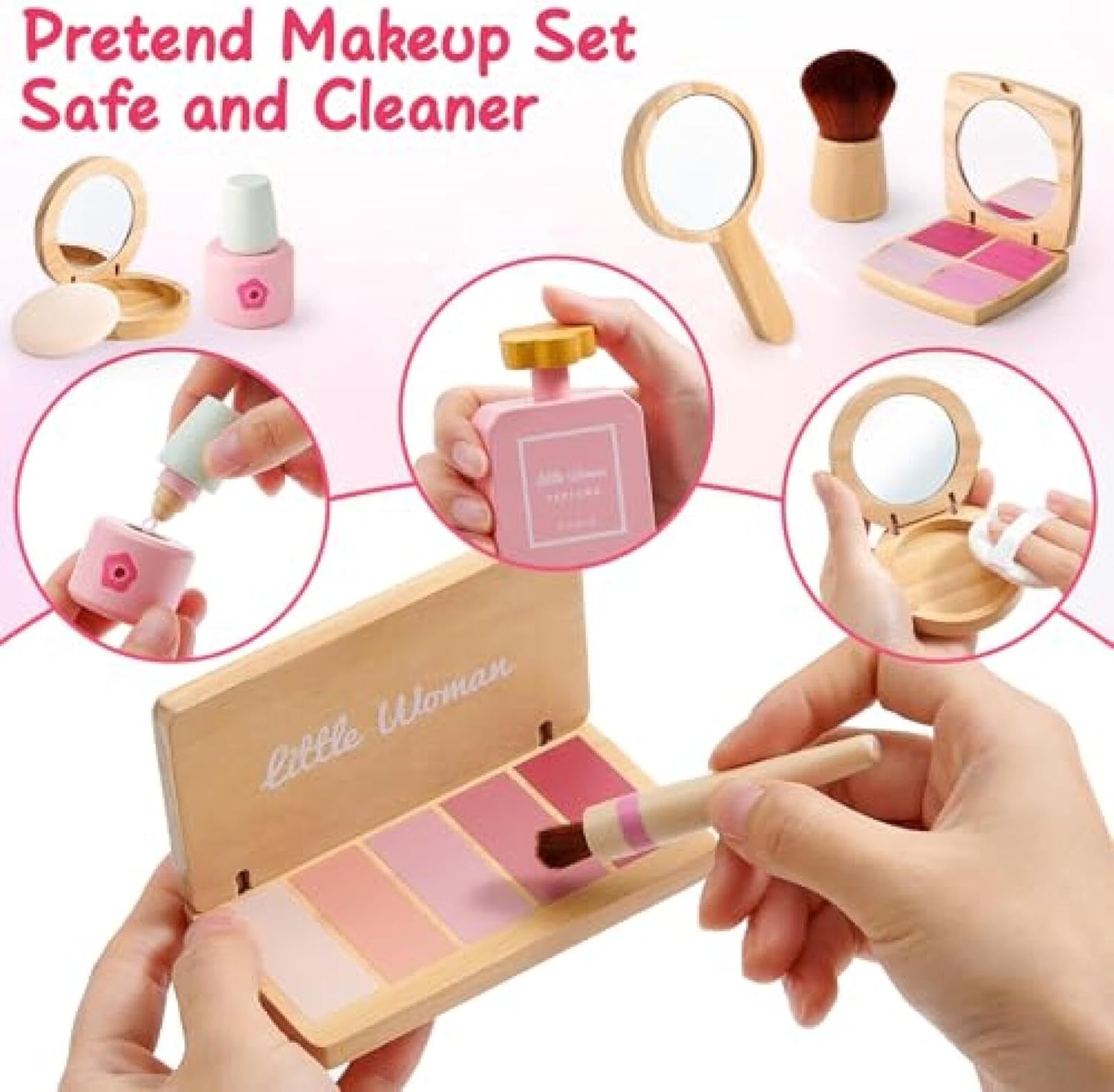 Fantastico design e accessori: una bella e funzionale borsa per il trucco rosa in legno che rende ogni ragazza una principessa! Contiene tutto ciò di cui le ragazze hanno bisogno per accessori di bellezza: borsa morbida per il trucco, lozione faical, matita per sopracciglia, polvere, vassoio per ombretto, pennello per ombretto, vassoio per fard, pennello per fard, pennello per mascara e mascara, rossetto, profumo, smalto, lima per unghie, pettine, specchio, le ragazze possono godersi il gioco di bellezza! Juguetes para ninas Ottimo kit per il trucco per bambini: i nostri prodotti sono accuratamente realizzati in legno massello, vernice a base d'acqua, e tutti gli accessori sono accuratamente lucidati per proteggere il palmo morbido del bambino, e i cosmetici possono essere conservati in una morbida borsa per il trucco che le ragazze possono facilmente trasportare ovunque. Questo set, più di un giocattolo, è il custode della sua infanzia, il punto di partenza dei suoi bellissimi sogni Ordinato e pulito: il nostro trucco in legno sembra realistico, così le ragazze possono rimanere pulite e pulite mentre giocano insieme a travestimenti! La calda consistenza del legno non solo non macchia i suoi vestiti, ma non danneggia la sua pelle delicata, ogni tocco è un contatto intimo con la natura, ogni gioco è un viaggio sicuro di esplorazione Educativo: ogni giocattolo è l'insegnante illuminante sulla strada della crescita dei bambini e la fonte dell'immaginazione ispiratrice. Questo giocattolo per il trucco in legno non è una semplice imitazione di cosmetici per adulti, ma una sorta di illuminazione artistica, in modo che le ragazze possano imparare ad apprezzare l'armonia dei colori in gioco. Durante il gioco, le ragazze imparano a comunicare idee ed esprimere emozioni. Imparano abilità sociali e comprendono i sentimenti degli altri attraverso il gioco di ruolo Regali unici pieni di sorprese: il nostro kit di trucco rosa in legno contiene quasi tutti gli accessori per ragazze da truccare, adatto per Capodanno, festa della principessa, Halloween, compleanno, regali di Natale per ragazze di 3, 4, 5, 6, 7, 8, 9, 10, 11, 12 anni, possono giocare a giochi di vestire, andare a balli e feste, per realizzare il loro sogno di essere una principessa! Questa scena è piena di gioia e calore, ed è un regalo speciale che può far sentire le persone amate e apprezzate