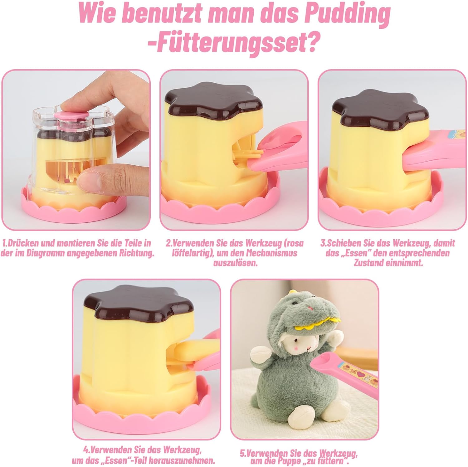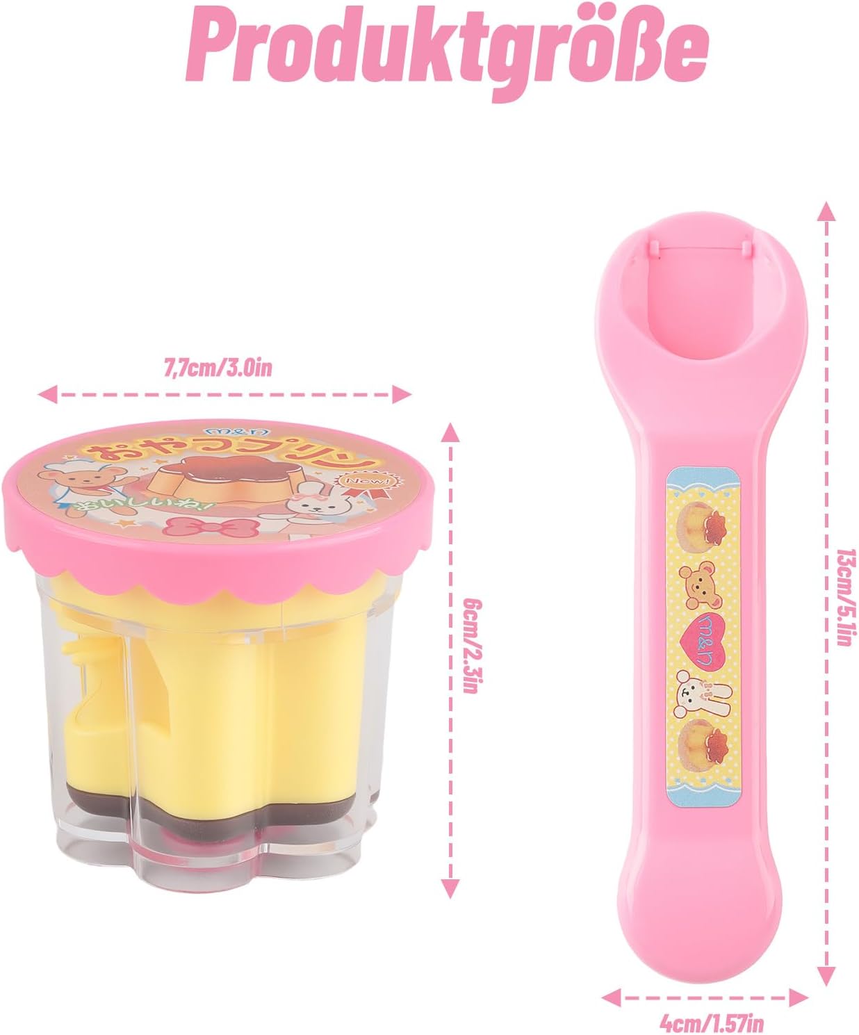 Contenuto del set: questo giocattolo interattivo per bambini contiene un budino di fragole in plastica e un cucchiaio di plastica per giochi di ruolo, un giocattolo divertente e innovativo per bambini. Gioco di alimentazione simulato: i bambini possono interagire con questo giocattolo con le loro bambole preferite, simulare situazioni di alimentazione e sviluppare così le loro abilità sociali. Materiali di alta qualità: questo giocattolo interattivo in plastica di alta qualità convince per i bordi lisci, senza sbavature, colori vivaci e dettagli ricchi di dettagli, ideale per i bambini. Divertente giocattolo da mangiare: questo set di giocattoli per budini convince per il suo design innovativo e accattivante ed è un ottimo antistress per bambini e adulti. Offre opportunità di gioco creative e divertimento senza fine. Giocattolo per la prima infanzia: questo giocattolo per la pasticceria non è solo un giocattolo rilassante e antistress, ma promuove anche le abilità pratiche e la capacità di comunicazione verbale dei bambini.