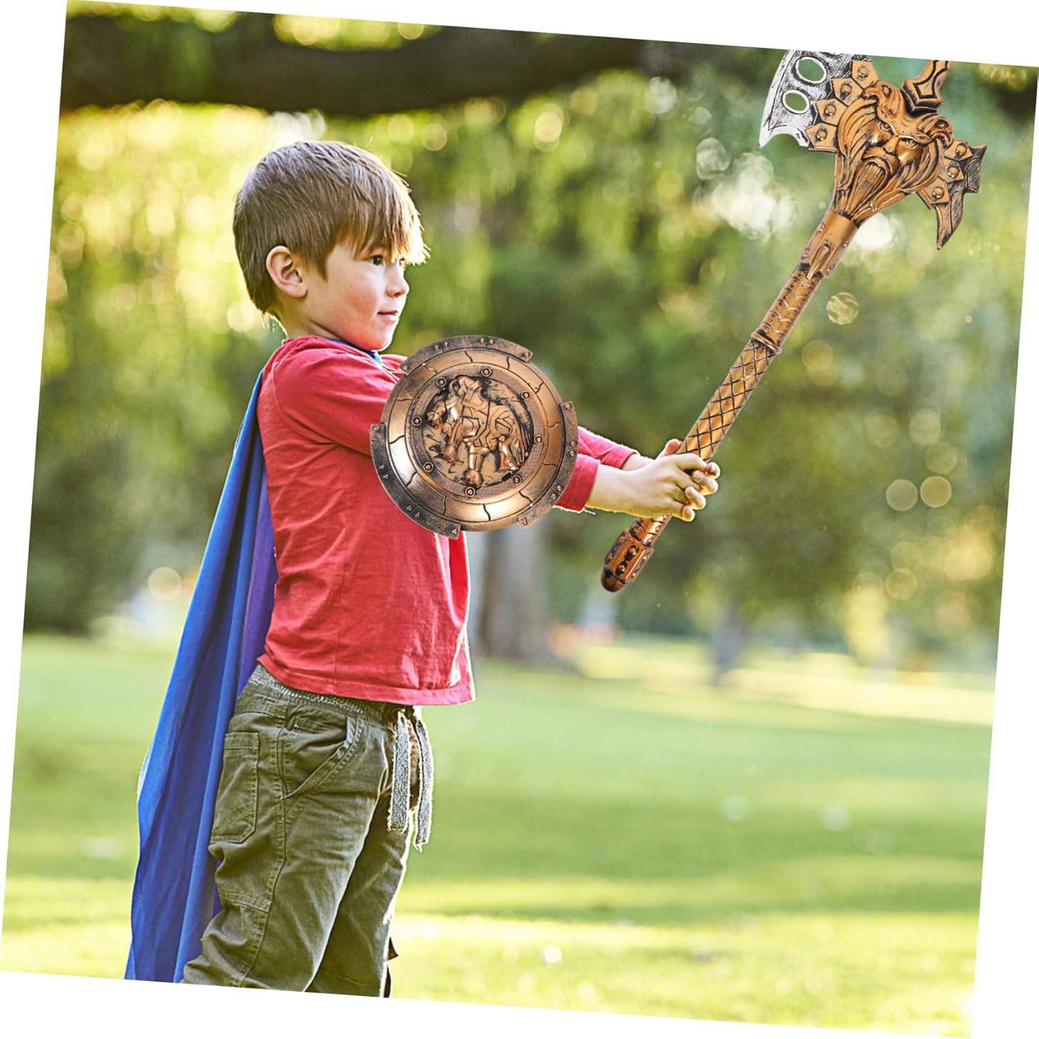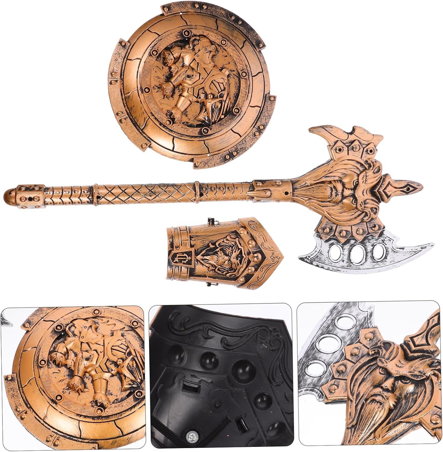 Oggetti di scena - Realizzati in buona plastica per un lungo periodo e un uso prolungato, giocattoli per bambini. Articoli per feste: la pregevole fattura e l'aspetto creativo ne garantiscono la popolarità e la praticità, un'attrezzatura potente per i bambini. Scudo dell'ascia - Leggero e portatile, molto comodo da trasportare, il set da cavaliere per bambini consente ai bambini di provare il divertimento dei giochi di ruolo, ragazzi. PROPRIETÀ COSPLAY UNICA - Design unico e simulato che rende i tuoi bambini più attraenti e impressionanti, armatura per cosplay. Accessorio per foto: leggero, non sbiadisce, facile da vestire o abbellire, per il gioco quotidiano dei ragazzi o per giochi di ruolo, accessorio per cosplay.