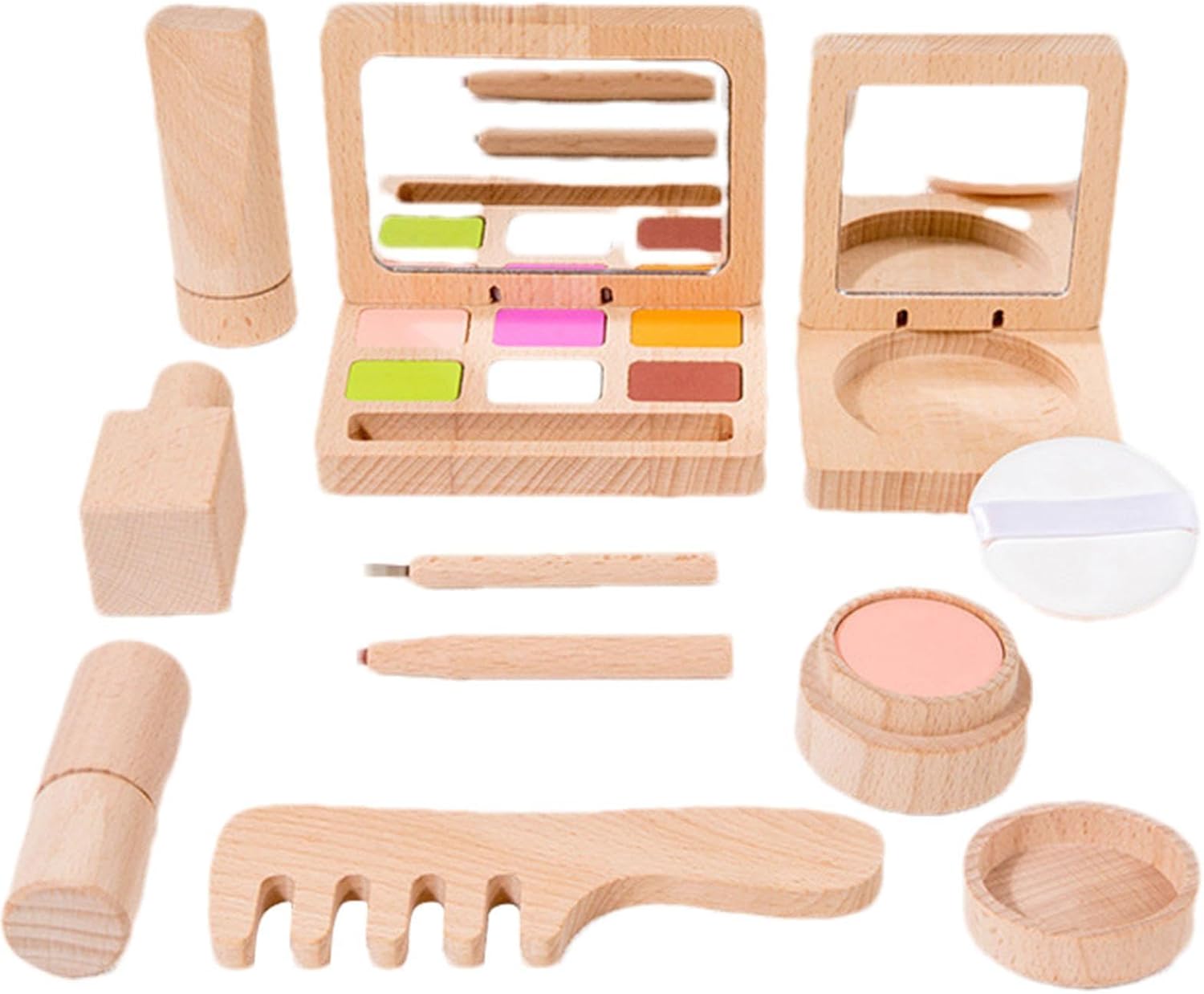 Ecologico e durevole: questo set di giocattoli per il trucco in legno utilizza vernice protettiva ambientale a base d'acqua che è sicura e inodore. Il materiale in legno è liscio e lucido, senza spigoli vivi. Gli strumenti e gli accessori per il trucco sono colorati e realistici, con un design a misura di bambino facile da maneggiare. Set prezioso: questo set di giocattoli per il trucco in legno incoraggia i tuoi bambini a liberare la loro creatività e immaginazione. Possono fingere di truccarsi con detergente viso, smalto, specchietti, pettini, rossetti, fondotinta, fard e matita per sopracciglia. progettati per assomigliare a veri prodotti per il trucco. MIGLIORA LA COORDINAZIONE OCCHIO-MANO E LA FLESSIBILITÀ: questo set di giocattoli per il trucco in legno non è solo divertente ma anche stimolante per i bambini. Questo set di giocattoli stimola anche la loro immaginazione e creatività, lo sviluppo sociale ed emotivo, le capacità linguistiche e comunicative, l'autostima e la consapevolezza di sé. Piccolo e compatto: questo set di giocattoli per il trucco in legno non è solo elegante e divertente, ma anche creativo ed educativo. Questo set di giocattoli è anche facile da trasportare e riporre, poiché è leggero e portatile. Può portarlo all'asilo, in vacanza o in qualunque altro posto le piaccia. Regalo significativo: questo set di giocattoli per il trucco in legno farà sentire la tua bambina come una principessa a una festa di compleanno o a un evento di travestimento. Questo è un regalo meraviglioso per ogni occasione, soprattutto a Natale.