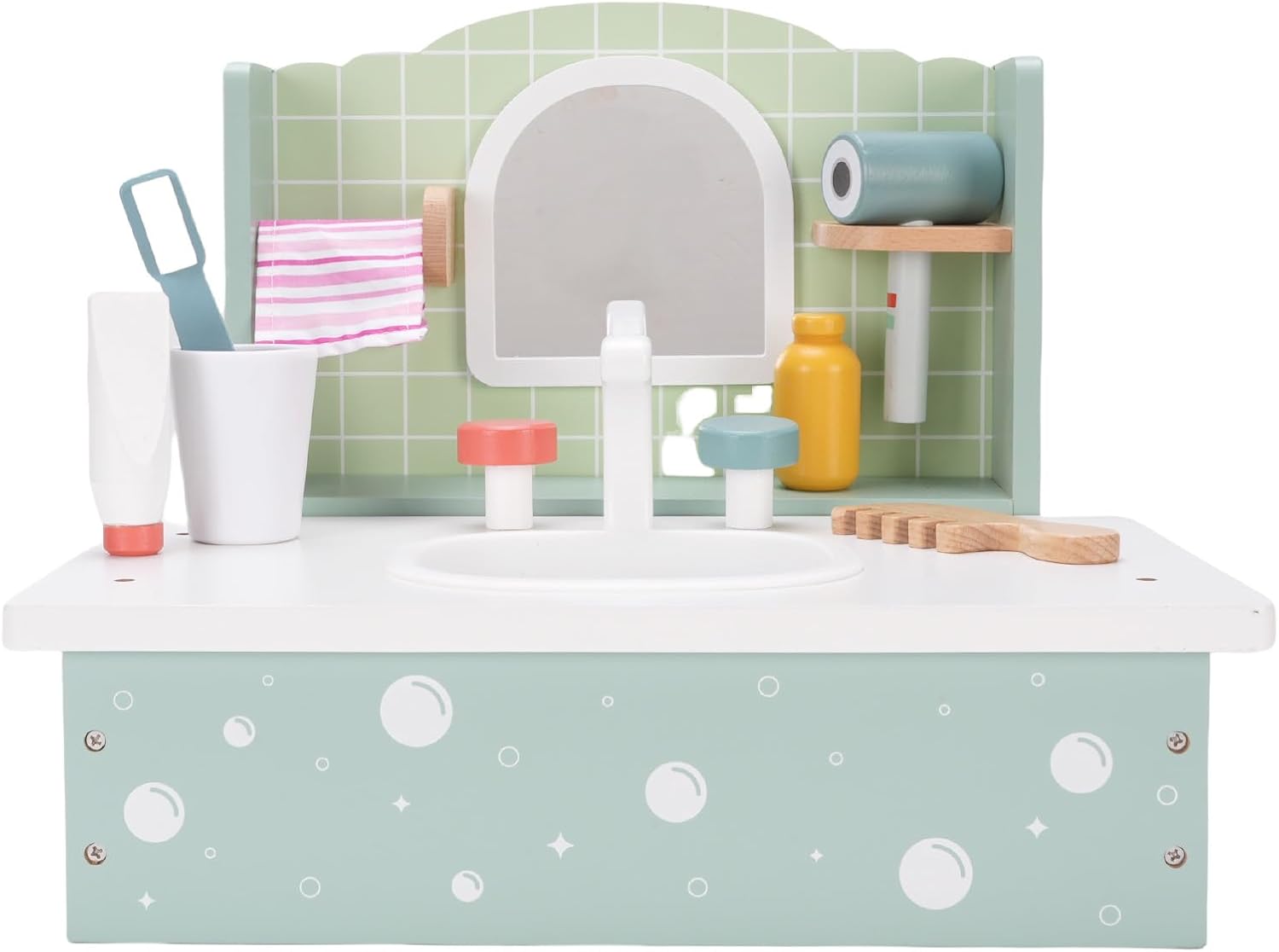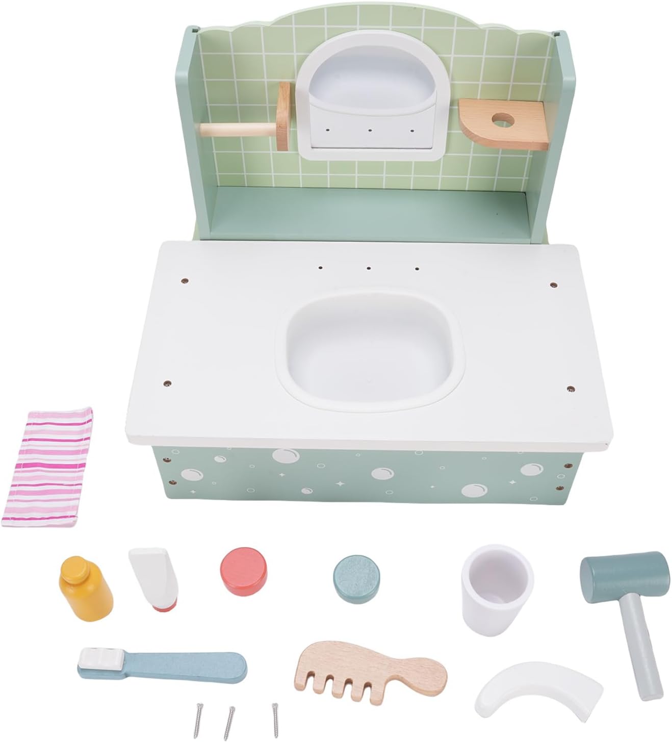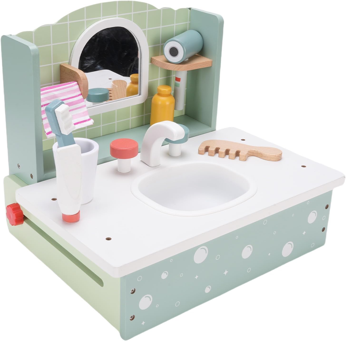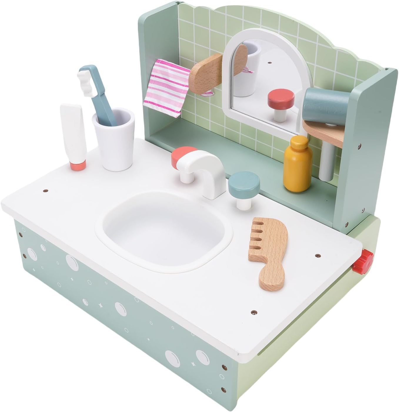 [Idea perfetta] Questo squisito set di vanità in legno è l'ultimo di compleanno per le bambine. Progettati per sorprendere e deliziare, li fa sentire come principesse amate. Il set incoraggia il gioco fantasioso promuovendo la creatività e il legame con gli amici. Il suo design elegante e le caratteristiche realistiche assicurano ore di incantevole gioco di gioco. [Materiale in legno di faggio premium] realizzato in legno di faggio robusto e sicuro Questo set di giocattoli da vanità è costruito per durare. Il materiale è inodore e Splinterfree che garantisce un ambiente di gioco sicuro per i bambini. La sua robusta costruzione resiste al gioco energico pur mantenendo un aspetto lucido. La finitura in legno naturale aggiunge un tocco di eleganza a qualsiasi sala giochi. [Ispira la creatività e l'immaginazione] Guarda tuo figlio esplorare nuovi mondi attraverso un gioco di finzione interattiva. Questo set di vanità stimola il pensiero creativo e lo sviluppo delle abilità sociali. I bambini possono sperimentare ruoli diversi dai truccatori alle principesse reali. Le possibilità di gioco aperte aiutano a sviluppare capacità di risoluzione dei problemi e espressione emotiva. [Royal Lifestyle Experience] Lascia che il tuo piccolo si conceda in lussuose fantasie di principessa con questo set di vanità realistico. Il design dettagliato imita le tabelle di vanità per adulti che creano scenari di gioco autentici. Completo di finti accessori per il trucco che offre un'esperienza reale completa. Questo set aiuta a creare fiducia mentre i bambini imitano i comportamenti adulti in un ambiente divertente sicuro. [Portatile e salvaspazio] Progettato specificamente per le bambine, questo set di vanità compatto è facile da spostare e archiviare. La costruzione leggera consente di giocare ovunque in casa o durante il viaggio. Tutti gli accessori si adattano perfettamente a ridurre al minimo il disordine massimizzando il divertimento. Nonostante le sue dimensioni portatili, offre tutte le caratteristiche di un tavolo da vanità completo per il divertimento completo del gioco.