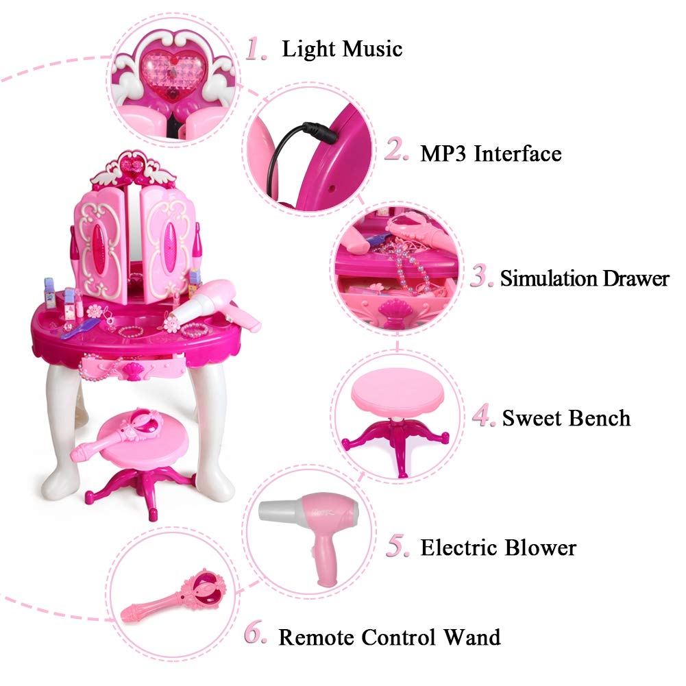 Questo set di giocattoli offre accessori di moda e trucco immaginari per la tua piccola principessa: include accessori per bambini, trucco, accessori per capelli, cassettiere con specchi, sgabelli, bacchette magiche e asciugacapelli funzionanti. Credi che alla maggior parte delle ragazze piacerà questo e le renderà molto felici Realizzate in plastica, queste sono pensate per essere applicazioni finte. 4. Sviluppo per bambini dai 3 anni in su: incoraggia lo sviluppo della consapevolezza dello stile e dell'immagine, favorendo la creatività e l'espressione di sé nei bambini in età prescolare. 5. Occasioni versatili: per Natale, compleanni e varie festività, offrendo infinite opportunità di gioco finto per le bambine.
