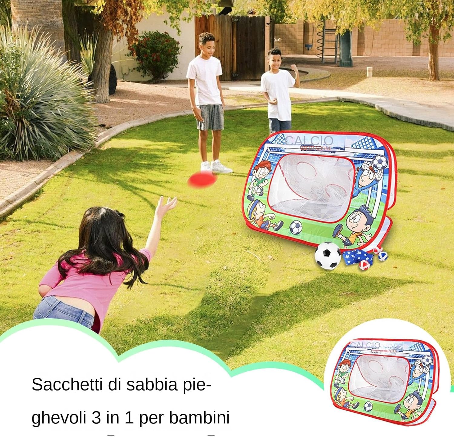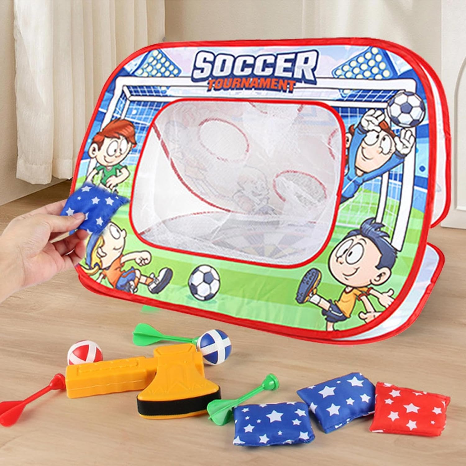 Usi versatili: il nostro gioco di lancio di borse di fagioli è il giocattolo multifunzionale per mantenere attivi i bambini e intrattenere il design a tema sportivo promuove l'idoneità fisica, mentre le 3 modalità di gioco forniscono più divertimento. Ideale per il gioco sia interno che esterno, è un must per qualsiasi genitore che sembra un giocattolo divertente e versatile Esperienza di gioco senza eguali: con una base stabile e non definita realizzata in tessuto spesso di alta qualità, il nostro gioco di lancio di borse di fagioli ha un filo elastico elevato e un'eccellente fattura per un'esperienza di gioco ideale. Il design morbido e confortevole promette una durata eccezionale per il divertimento di lunga durata Giocattoli deliziosi: il giocattolo ideale per il divertimento all'aperto, questo gioco di lancio di borse per fagioli portatile è per i bambini che desiderano qualche ora di più intrattenimento. Ideale per la partecipazione e lo sviluppo del coordinamento occhio-mano Applicazione completa: porta l'eccitazione all'aperto a qualsiasi incontro con questo gioco di lancio di borse di fagioli, per i bambini per giocare e godersi i giochi di dardo impegnativi. Migliorare la creatività e le capacità motorie, è un modo migliore per le famiglie di legare e creare ricordi indimenticabili pieni di gioia e risate, sia all'interno che all'esterno Regali di vacanza ideali: Foster Team-Building e Game con amici con questo emozionante gioco di borse di fagioli. Perfetti per le feste per bambini, è una scelta eccellente per compleanni e partner di Natale. Adatto a bambini e adulti, è meglio per migliorare la sportività. Un miglior giocattolo per bambini di età compresa tra 3 e 8 anni