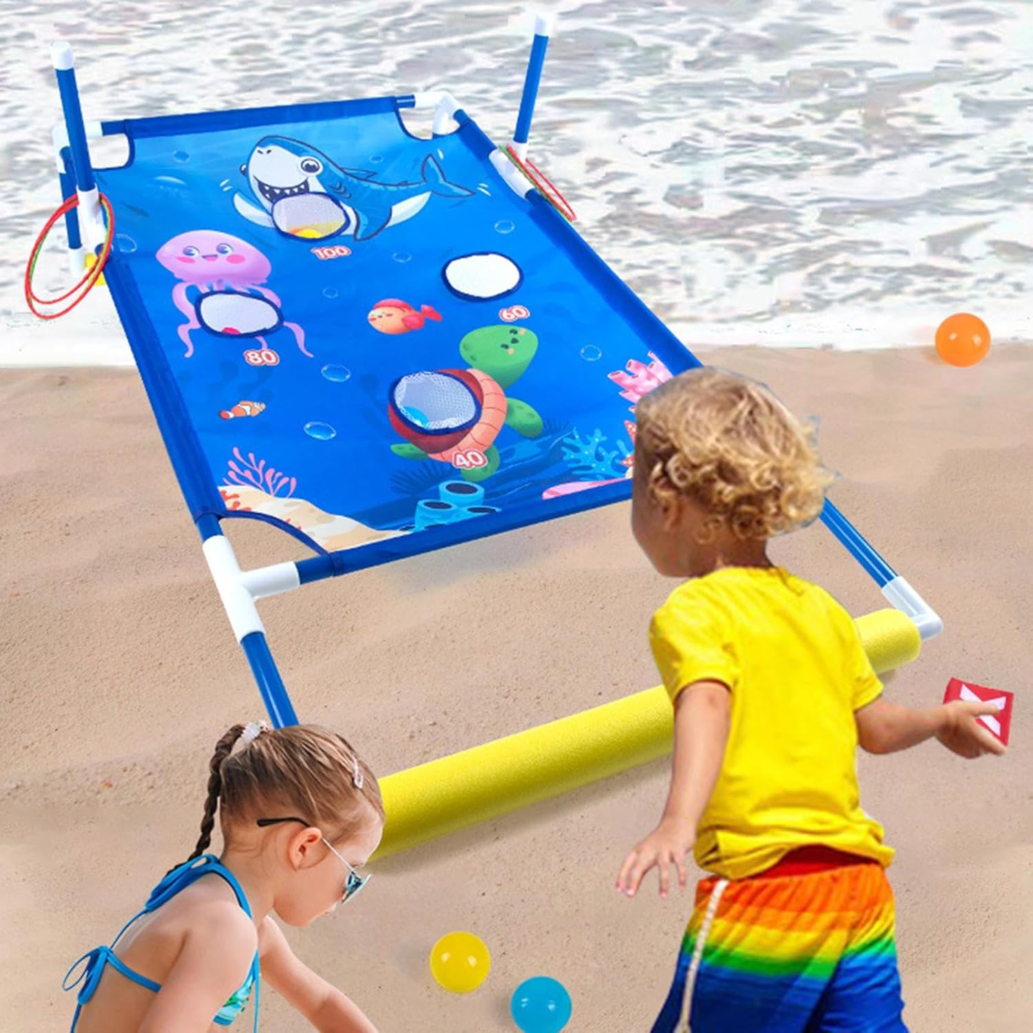 Gioco d'acqua interattivo: migliorare il familiare con il nostro set di gioco di lancio di borse di fagioli che combina più intrattenimento con ore di divertimento 'acqua, creando interazioni genitore-figlio indimenticabile Migliora le capacità cognitive: non solo per divertimento, questo set di gioco di lancio di borse di fagioli migliora il coordinazione occhio-mano dei tuoi bambini, rafforza le capacità motorie e supporta la loro crescita progressivamente Usi ampi: ottimo per riunioni di famiglia, picnic o gite in campeggio; Il set offre varie possibilità di gioco come toss, cornhole e : far divertire tutti per ore Costruito per durare per generazioni: costruito con materiali di alto livello e sicuri, questo set di giochi di lancio di fagioli è progettato per sopportare un gioco approssimativo, con bordi morbidi per la sicurezza e una robusta build che garantisce una lunga durata di vita Portabilità comoda: leggero e facile da installare, questo gioco di lancio di borse di fagioli può essere rapidamente impostato e messo via, garantendo divertimento in piscina, spiaggia o cortile; Viene fornito con una comoda borsa da stoccaggio