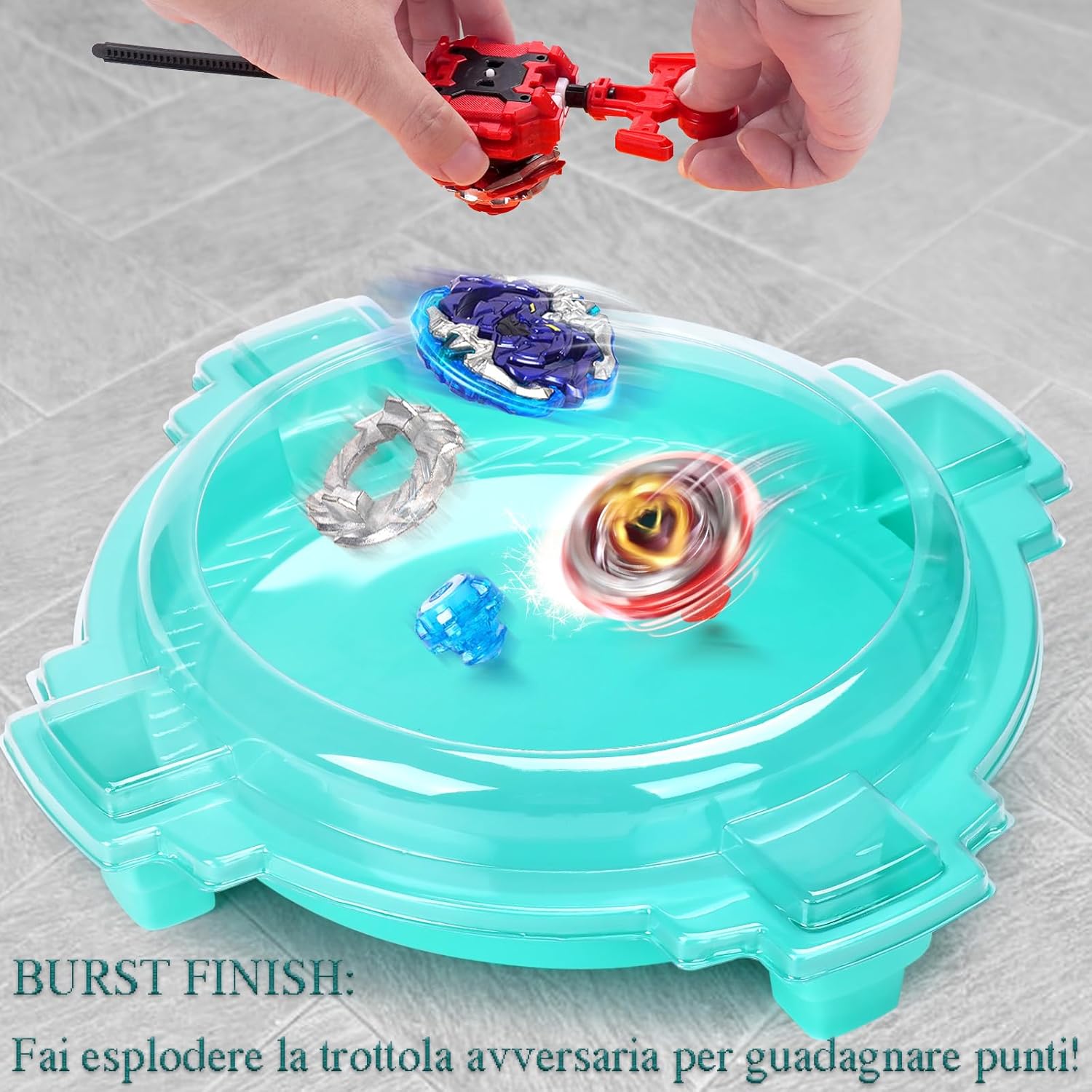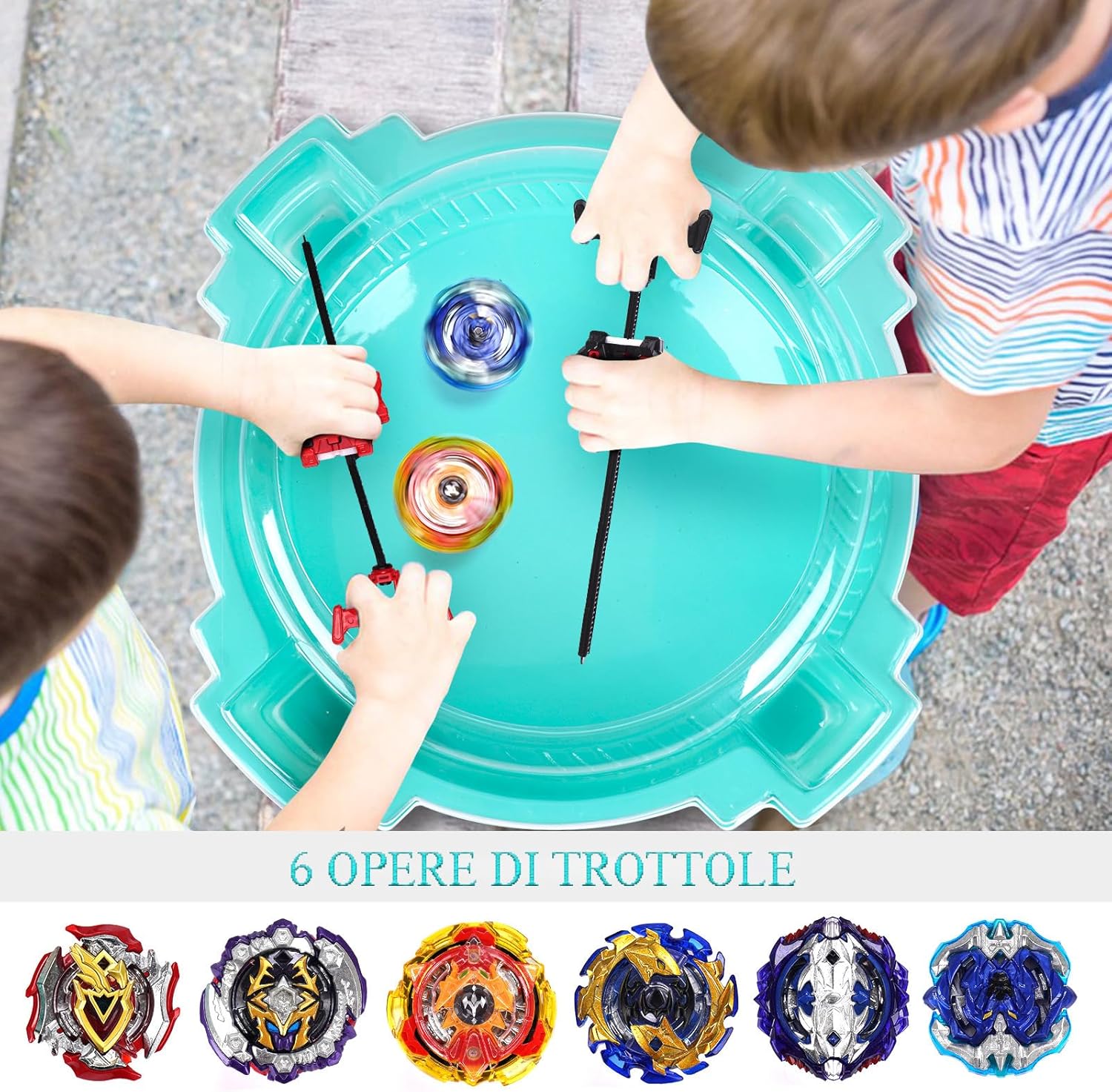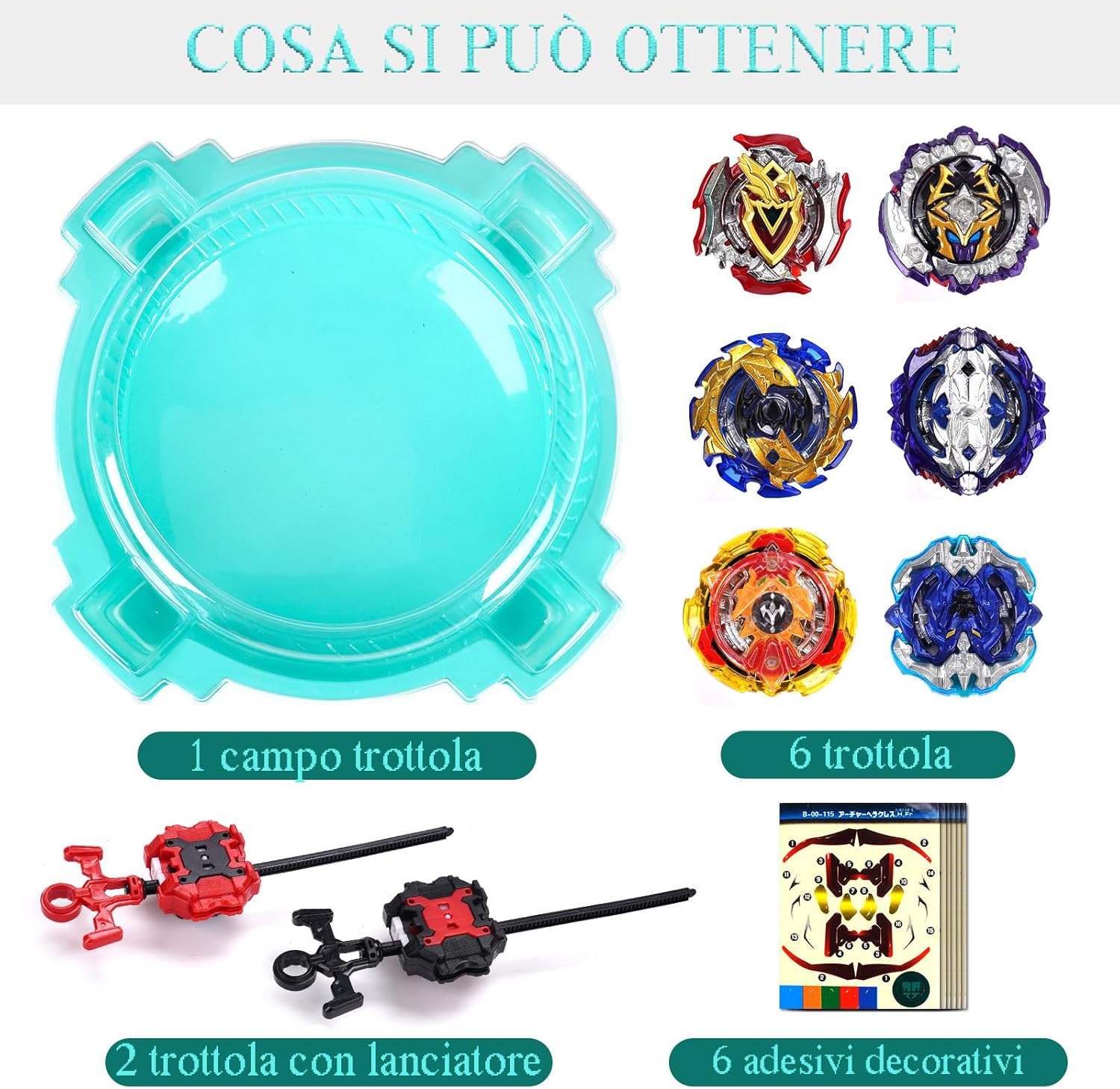 【TUTTO IL NECESSARIO PER COMBATTERE】Comprende un'arena per trottole da stadio, 2 Lanciatore e 6 toupies per un set da battaglia completo. 💥【Explosive Burst Battle Action】Progettati per combattimenti mozzafiato, questi gyro esplodono in battaglia creando momenti adrenalinici! Frammenti spettacolari, colpi di scena - ogni duello diventa un'esperienza esplosiva! 【 STADIO CON TETTO PER DIVERTIMENTO】Il design coperto dell'Arena di Battaglia impedisce alle cime di volare fuori, creando l'ambiente perfetto per un'intensa esperienza di Arena Battling! 【 PERFETTO PER TUTTI I LIVELLI DI ABILITÀ】 Che tu sia un principiante o un professionista, questo Multipack è adatto a tutti i livelli di abilità. Le trottole e i lanciatori permettono ai bambini di sviluppare le loro abilità di combattimento divertendosi. È pensato per tutti coloro che amano le battaglie nell'arena e offre un intrattenimento senza fine! 【 IDEALE PER BAMBINI OLTRE I 6 ANNI】Stai cercando il regalo perfetto Battling multipla? Questo set di giochi da competizione è ideale per i bambini dai 6 anni in su. Che si tratti di compleanni, vacanze o semplicemente di una sorpresa speciale, questo scoppiettante set da stadio porterà sicuramente emozioni e sfide ai bambini che amano le battaglie con le trottole! 【Lasciate che il vostro bambino giochi senza paura】Il nostro prodotto è realizzato in lega di zinco e plastica, materiali che hanno superato rigorosi test di sicurezza. È stato testato secondo gli standard GPSR e EN 71, ed è pienamente conforme alle normative europee sulla sicurezza dei giocattoli. Puoi usarlo con tranquillità.