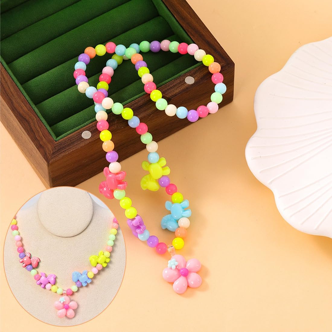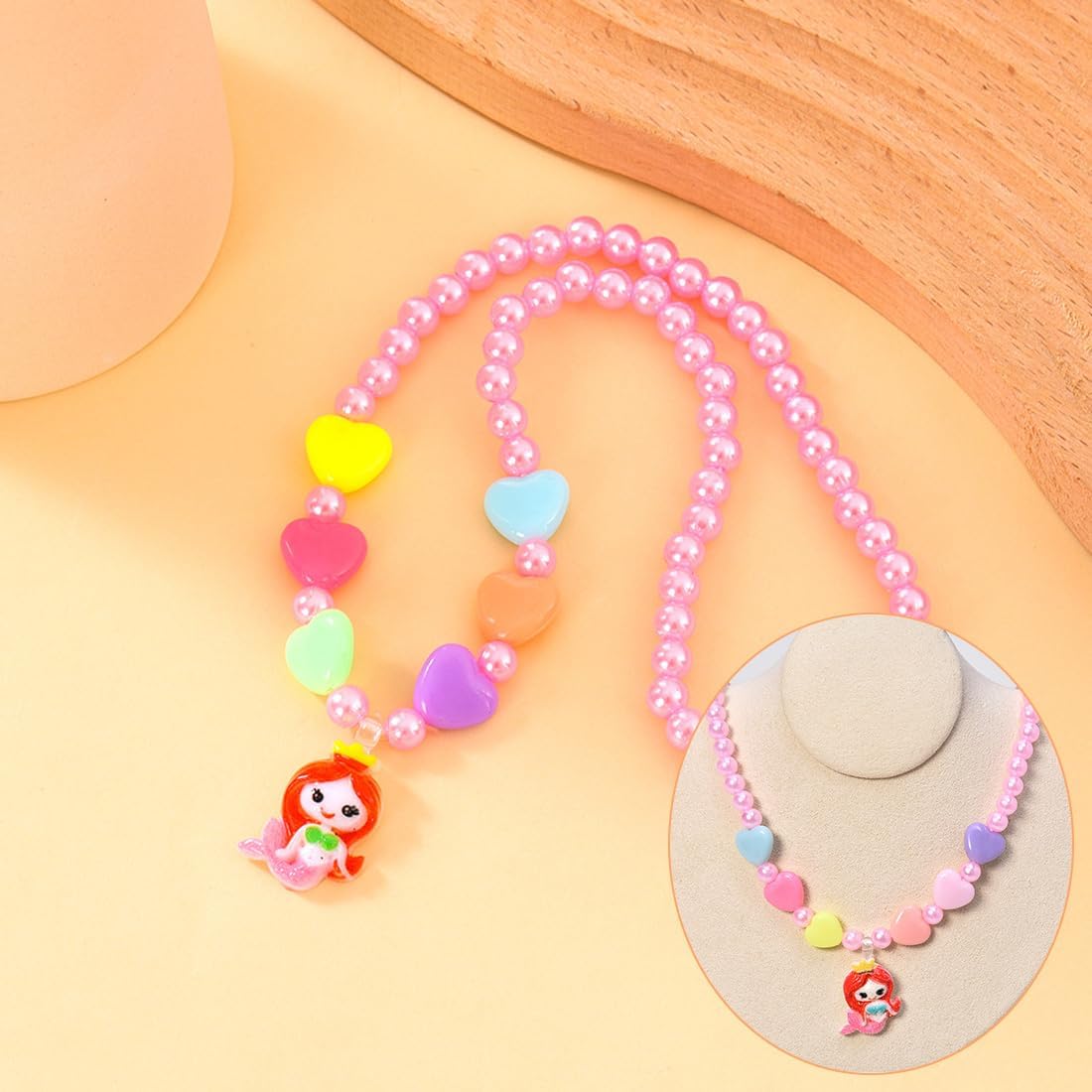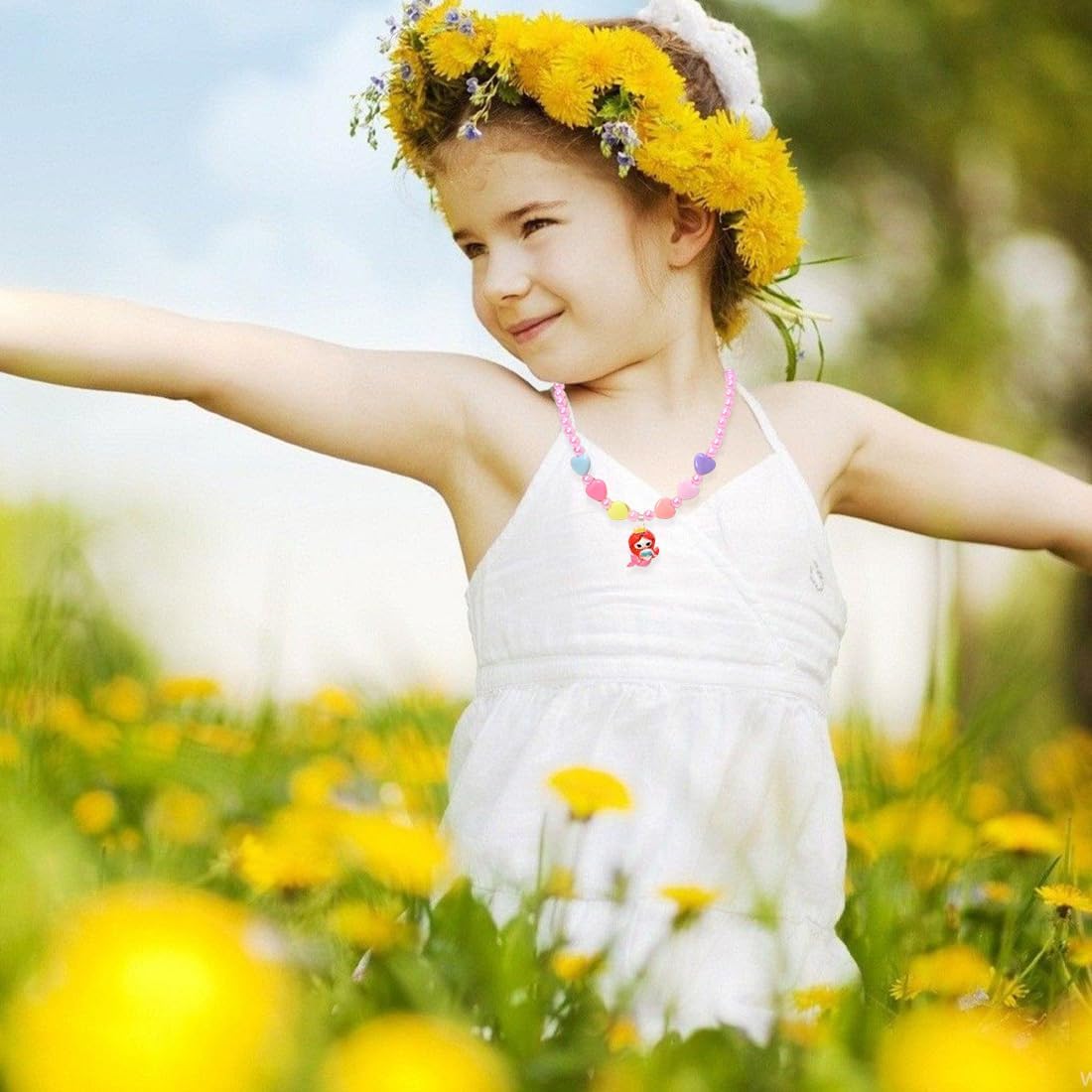 Materiali premium: la collana è realizzata in ABS, acrilico e resina di alta qualità, delicata sulla pelle dei bambini, resistente e indossabile. Design elastico: adatto alla maggior parte dei bambini, facile da indossare e da togliere, non facile da rompere da parte dei bambini e i bambini possono indossarlo in modo indipendente. Set di gioielli per bambini: include una collana con fiori per bambini e una collana con sirena per bambini. Colori vivaci: adorabile principessa sirena e fiori appesi sotto la collana di perline colorate, lisci e lucenti. Un regalo super carino per la tua adorabile figlia o nipote! Regalo eccellente: il set di collane è squisito e simboleggia i sogni d'infanzia innocenti. Ottima scelta per feste di compleanno, Natale, cosplay di Halloween e altre occasioni divertenti.