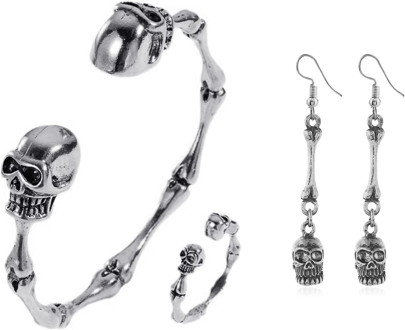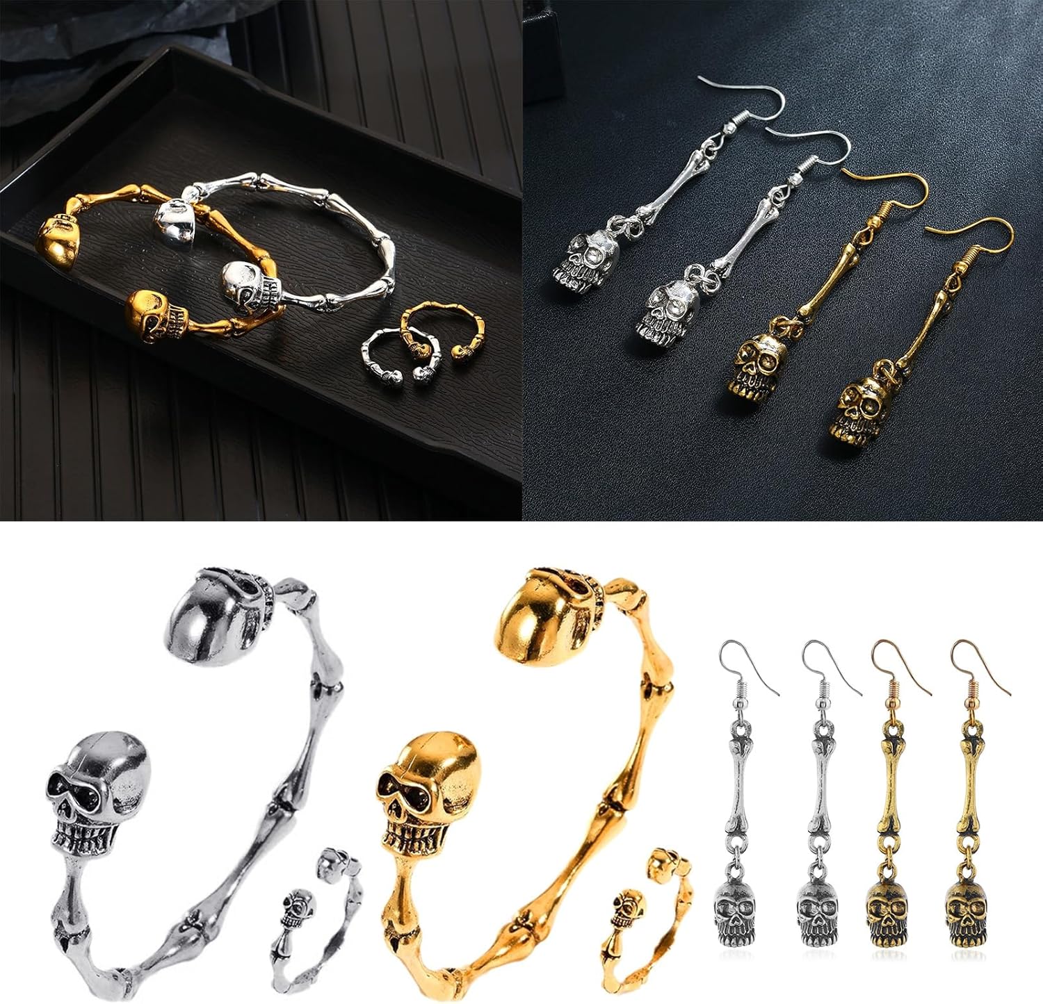 Set di gioielli vintage con teschio e scheletro, per Halloween, braccialetto, anelli, orecchini, accessorio alla moda per l'uso quotidiano Caratteristiche: Abbraccia il tuo lato tagliente con questo set di gioielli a forma di teschio, una collezione che trasuda vintage e personalità. Realizzato in lega, questo set include un braccialetto e anelli con teschio e scheletro, entrambi con design aperto regolabile per una vestibilità comoda. Adatto sia per uomini che per donne che osano distinguersi, questo set di gioielli è ideale per gli appassionati di punk e chiunque ami accessori unici di ispirazione retrò. Sia che tu stia accessoriando per un appuntamento, una festa a tema, questo set di gioielli con teschio farà sicuramente girare la testa. Questo set di gioielli non solo è un'aggiunta sorprendente alle tue collezioni personali, ma è anche un regalo per coloro che amano pezzi distintivi e accattivanti che riflettono il loro spirito individualistico. Specifiche tecniche: Componente in lega. Dimensioni: circa 6 cm. Anelli circa 1,8 cm. Orecchini circa 4,5 cm. Colore Oro Antico/Argento Antico Peso: 42 g. La confezione include: 1 set di gioielli con teschio. Nota: 1. Si prega di considerare un margine di errore di 1-2 cm dovuto alla misurazione manuale. 2. A causa delle differenze tra i diversi monitor, l'immagine potrebbe non riflettere esattamente il colore reale.