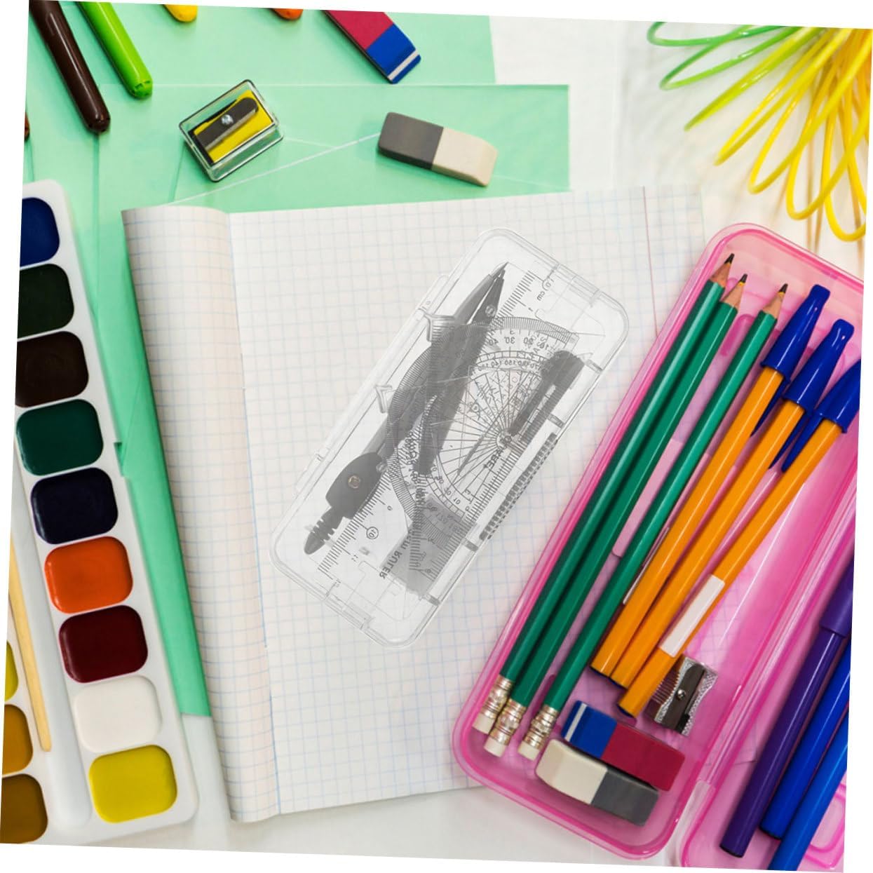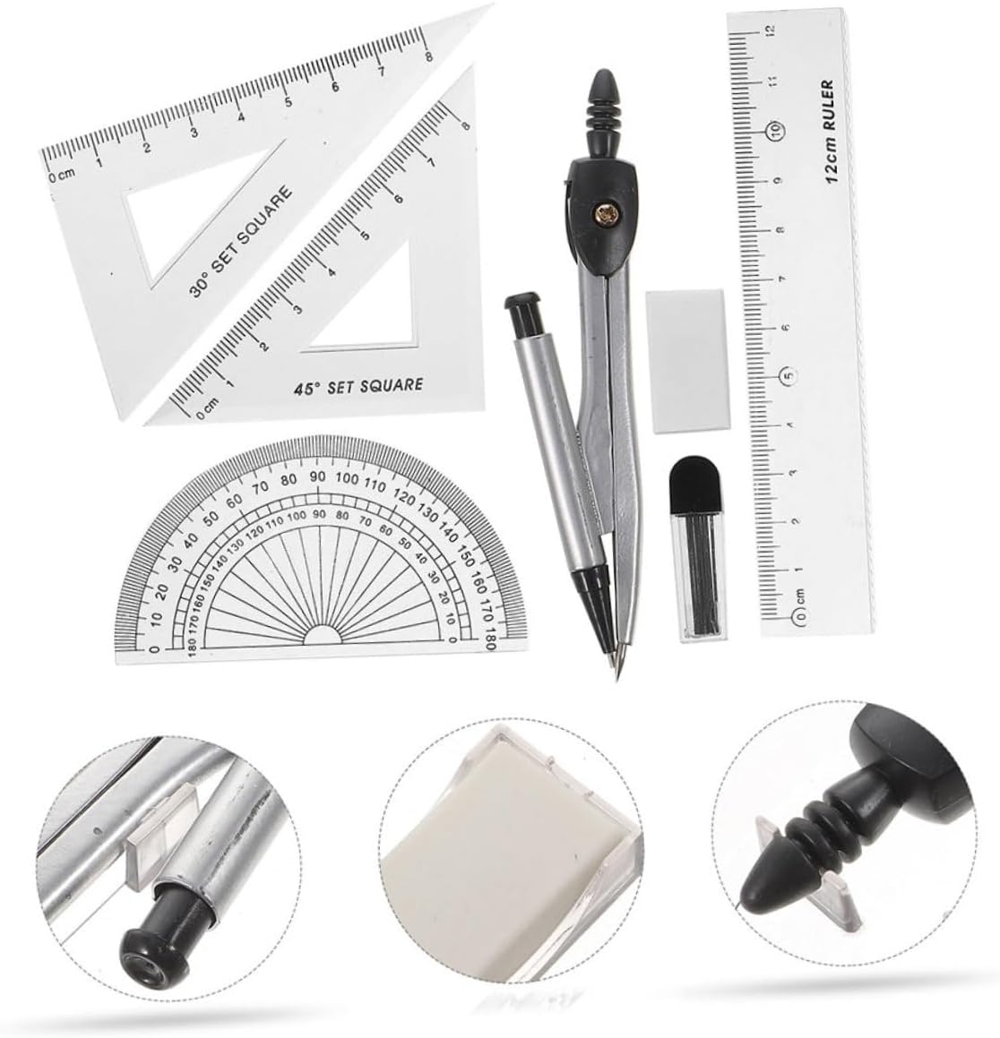 Pratica gomma: dotata di una pratica gomma, questo set consente correzioni, garantendo che il tuo lavoro sia sempre pulito e accurato,righelli,forniture per l'architettura Comodo da trasportare: leggero e portatile, è molto comodo da portare con sé ovunque tu voglia, strumento di disegno della bussola, geometria della bussola Gomma incorporata: con una gomma incorporata, questo set semplifica la correzione di eventuali errori, garantendo che i tuoi disegni siano sempre puliti e precisi, compasso da disegno, materiale scolastico E affidabile: questo set è progettato per durare nel tempo, rendendolo una scelta affidabile per l'uso quotidiano in vari ambienti, kit di geometria, bussola per la geometria Uso versatile: adatto a insegnanti, studenti, architetti e ingegneri, questo set è adatto per un'ampia di, progetti scolastici alle attività di disegno professionale, compasso geometrico, kit di disegno