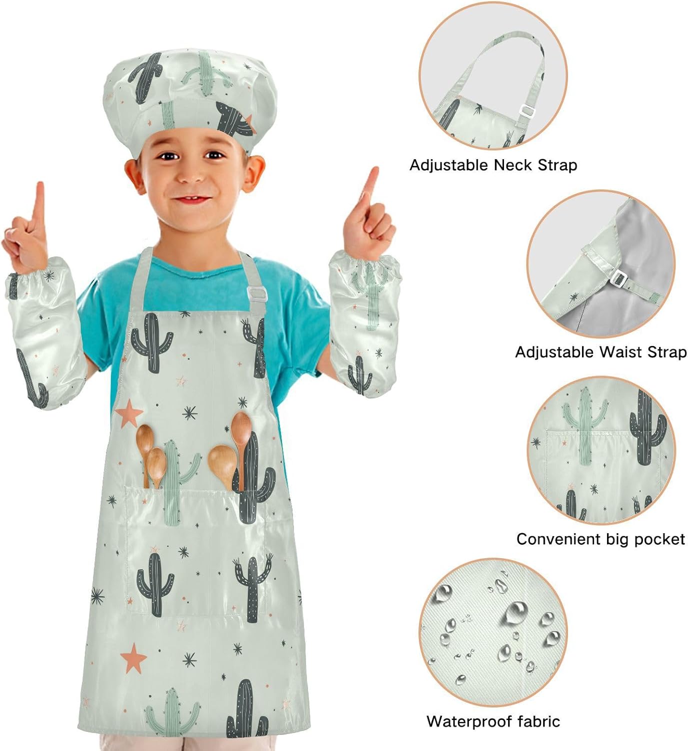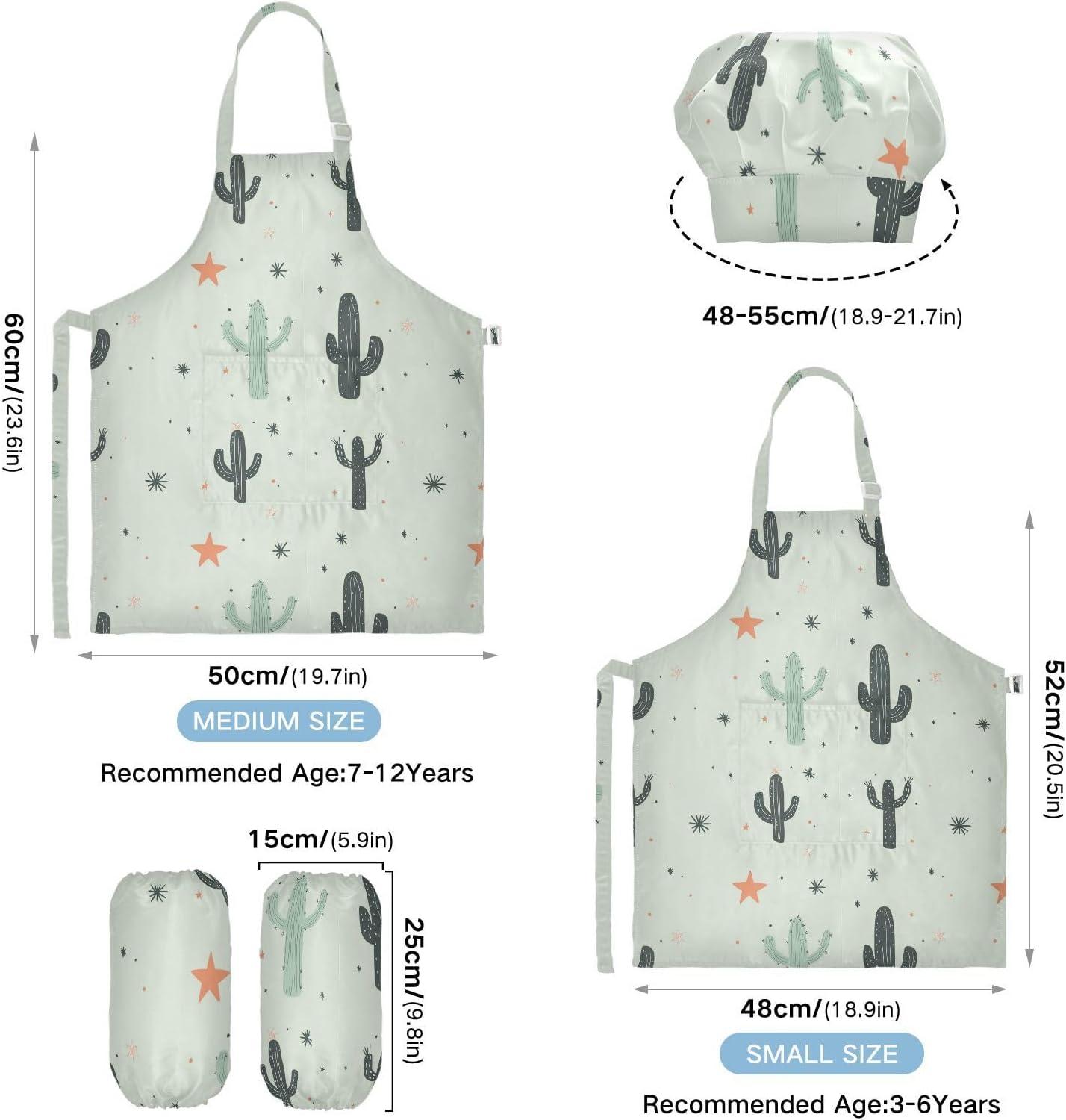 Taglia disponibile: S: 48 x 52 cm, per bambini dai 3 ai 6 anni. M: 50 x 59,7 cm, per bambini dai 7 ai 12 anni. Le taglie di cappelli e maniche condividono le stesse dimensioni. Cappello: 48-55 cm. Maniche: 15 x 24,9 cm. Materiale ecologico: il tessuto è impermeabile, leggero, accogliente, stampa adorabile alla moda, ecologico per la pelle dei bambini. Caratteristica impermeabile: Realizzato in poliestere, i grembiuli per bambini sono impermeabili. I bambini possono sentirsi liberi di imparare a cucinare e dipingere come preferiscono e possono mantenere i loro vestiti puliti allo stesso tempo. Multiuso: il grembiule per bambini non può essere indossato per pittura, cucina, giardinaggio, lavaggio dei piatti, feste, arte, artigianato e attività scolastiche, ma anche per Natale, Ringraziamento, Halloween, San Patrizio, Capodanno, festa dei bambini, festival, vacanze, cene, compleanni e riunioni di famiglia. Facile da pulire: il nostro prodotto è impermeabile e a prova di fuoriuscite. Basta strofinare, lavare in lavatrice e lavare a mano.