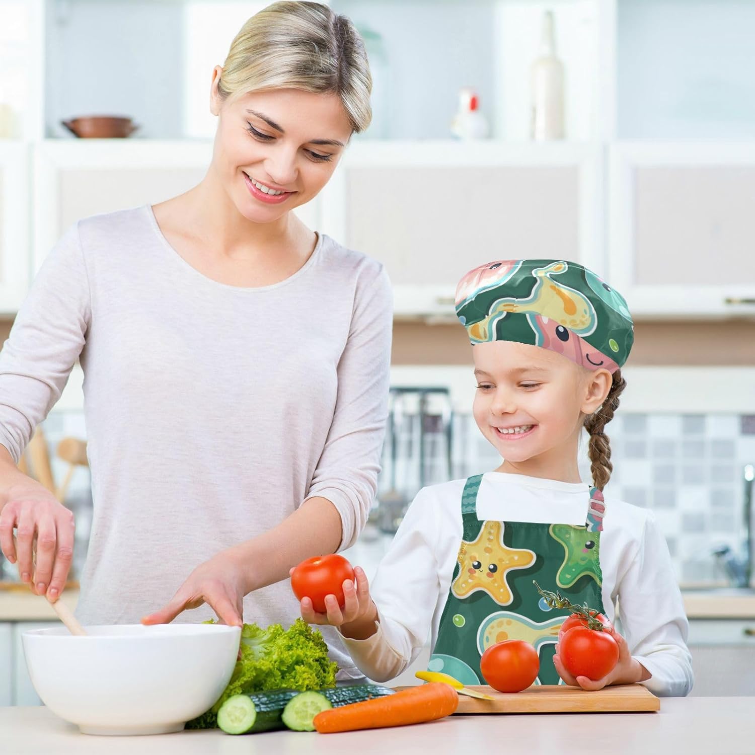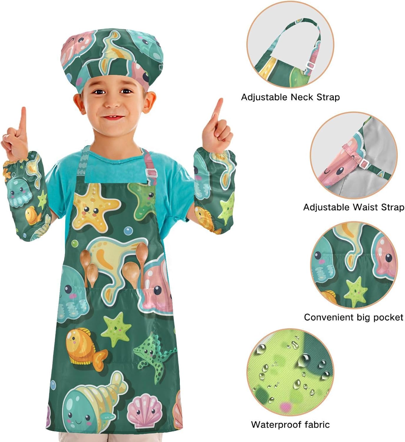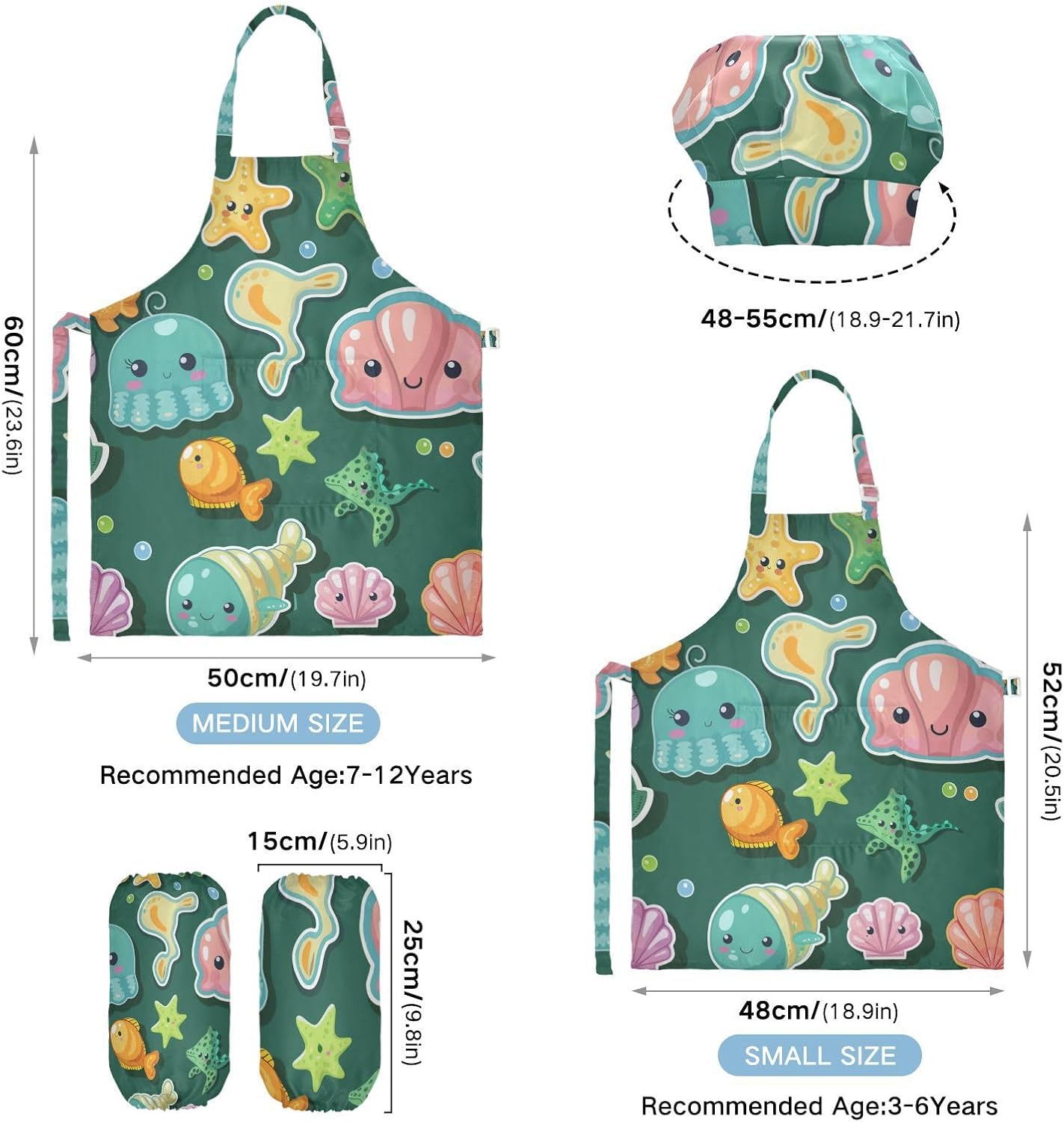 Set di grembiule per bambini con cappello da chef, regolabile, con tasche, per bambini dai 3 ai 12 anni