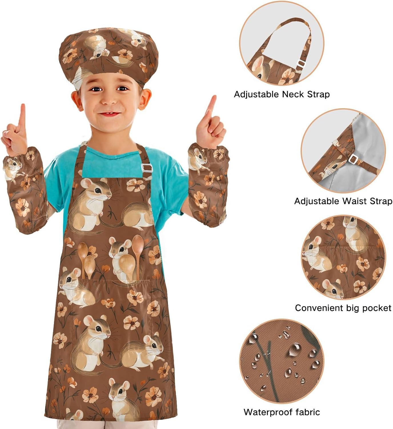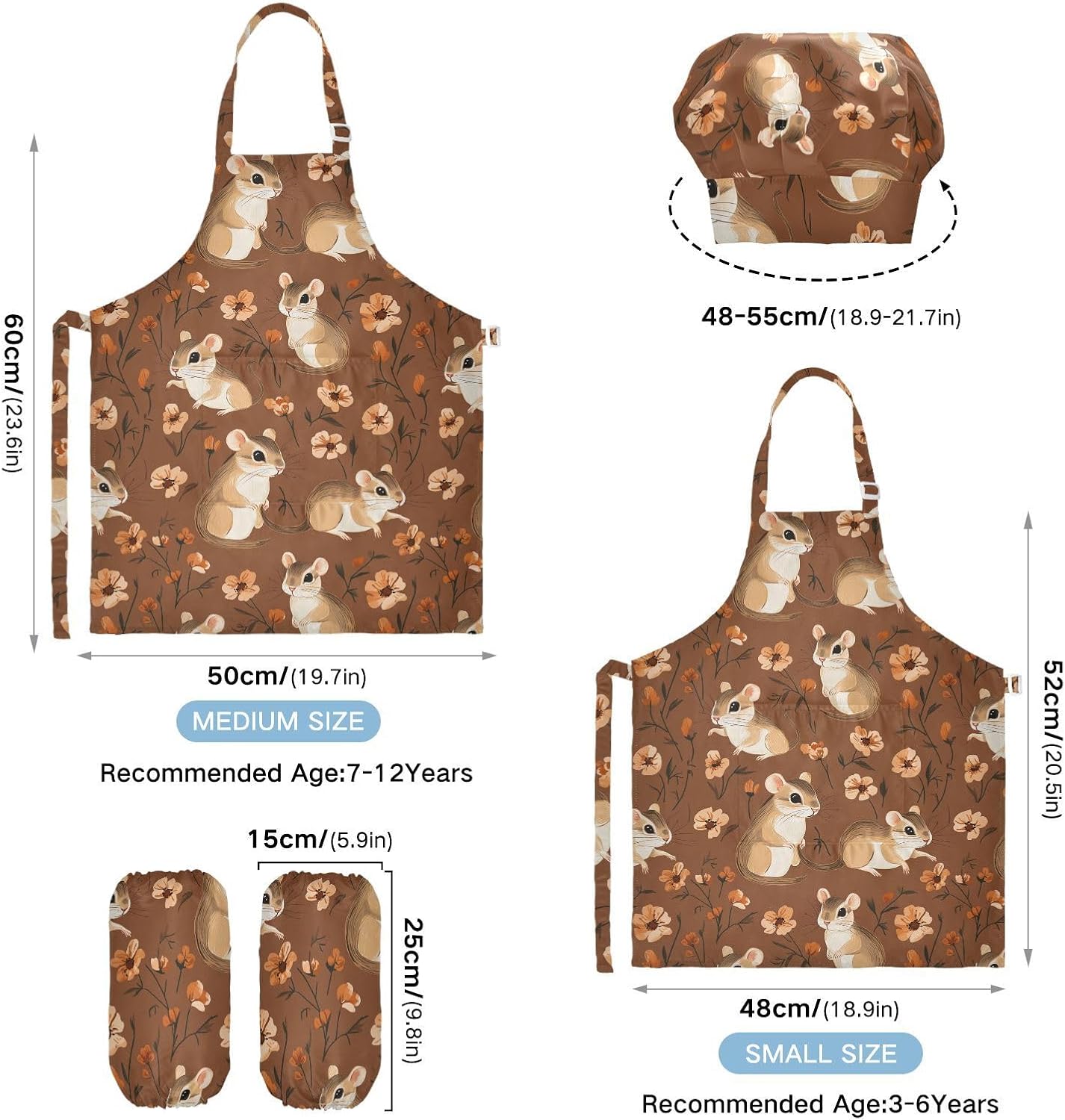 Dimensioni: i grembiuli per bambini di piccole dimensioni per bambini dai 3 ai 6 anni sono alti 52,1 cm, larghi 48 cm. Il costume da chef per bambini di taglia media da 7 a 12 anni è alto 59,7 cm, largo 50 cm. Il cappello delle due dimensioni misura 48-55,1 cm. ?La custodia misura 15 x 24,9 cm. Materiale ecologico: il tessuto è impermeabile, leggero, accogliente, stampa adorabile alla moda, ecologico per la pelle dei bambini. Protezione delle maniche con una grande tasca: due maniche possono proteggere i bambini da acqua, olio e pigmenti. Con grandi tasche decorative e funzionali, è comodo mettere alcuni strumenti quando si utilizza, adatto per imparare a cucinare, fare caramelle, dolci, ecc. Ampia applicazione: il costume da chef per bambini è adatto per l'insegnamento della pittura e l'insegnamento della cucina, può essere applicato anche per corsi d'arte, costumi di Halloween, oggetti di scena teatrali, feste di compleanno e le belle attività della decorazione per feste a tema. Contenuto della confezione: un grembiule impermeabile, un cappello da chef e due maniche. L'adorabile grembiule per bambini può incoraggiarli a sviluppare le loro abilità di cucina, pittura, cottura, giardinaggio o altre abilità.