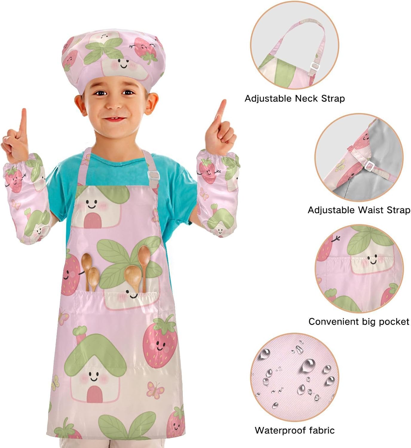 Set di grembiuli creativi per bambini con cappello da chef e fragole e grembiule da cucina per bambini da 3 a 12 anni
