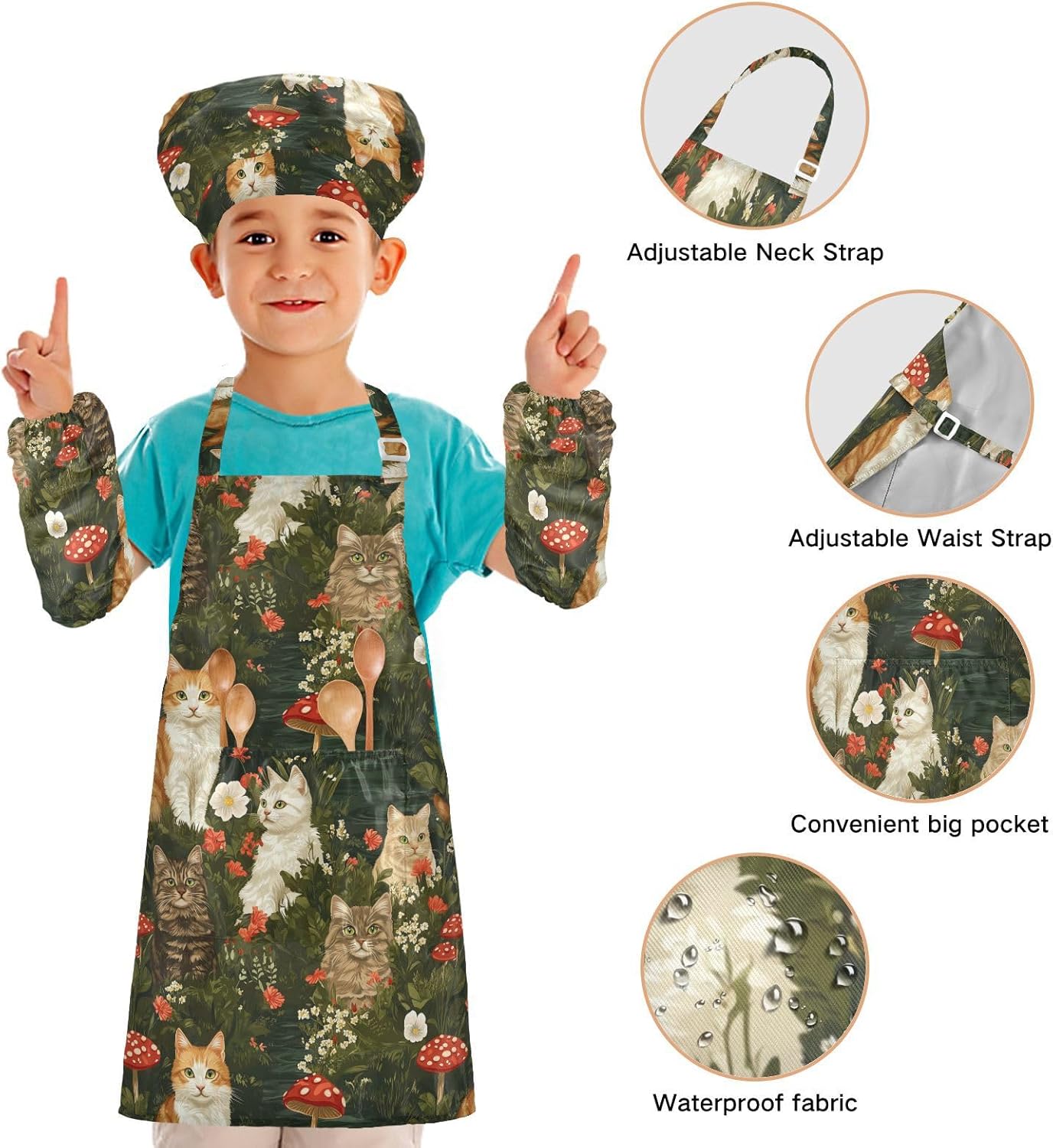 Dimensioni: il grembiule artistico per bambini di piccole dimensioni per bambini dai 3 ai 6 anni è alto 52,1 cm, largo 48 cm. Il set di grembiule per bambini di medie dimensioni per bambini dai 7 ai 12 anni è alto 59,7 cm, largo 50 cm. Il cappello delle due dimensioni misura 48-55,1 cm. ?La custodia misura 15 x 24,9 cm. Materiale di alta qualità: il set di cappelli da chef per bambini è realizzato in poliestere, morbido tessuto impermeabile twill 290, per una sensazione confortevole quando si indossa. Protezione delle maniche con una grande tasca: due maniche possono proteggere i bambini da acqua, olio e pigmenti. Con grandi tasche decorative e funzionali, è comodo mettere alcuni strumenti quando si utilizza, adatto per imparare a cucinare, fare caramelle, dolci, ecc. Multiuso: il grembiule da cucina per bambini non può essere indossato per pittura, cucina, giardinaggio, lavaggio dei piatti, feste, arte, artigianato e attività scolastiche, ma anche per Natale, Ringraziamento, Halloween, San Patrizio, Capodanno, festa dei bambini, festival, vacanze, cene, compleanni e riunioni di famiglia. L'articolo include: il costume da chef per bambini include 1 grembiule leggero, 1 cappello da chef e 2 maniche. Il costume da chef per bambini da 3 pezzi può dare ai bambini una buona esperienza di utilizzo per cucinare o dipingere come cuochi o pittori professionisti.