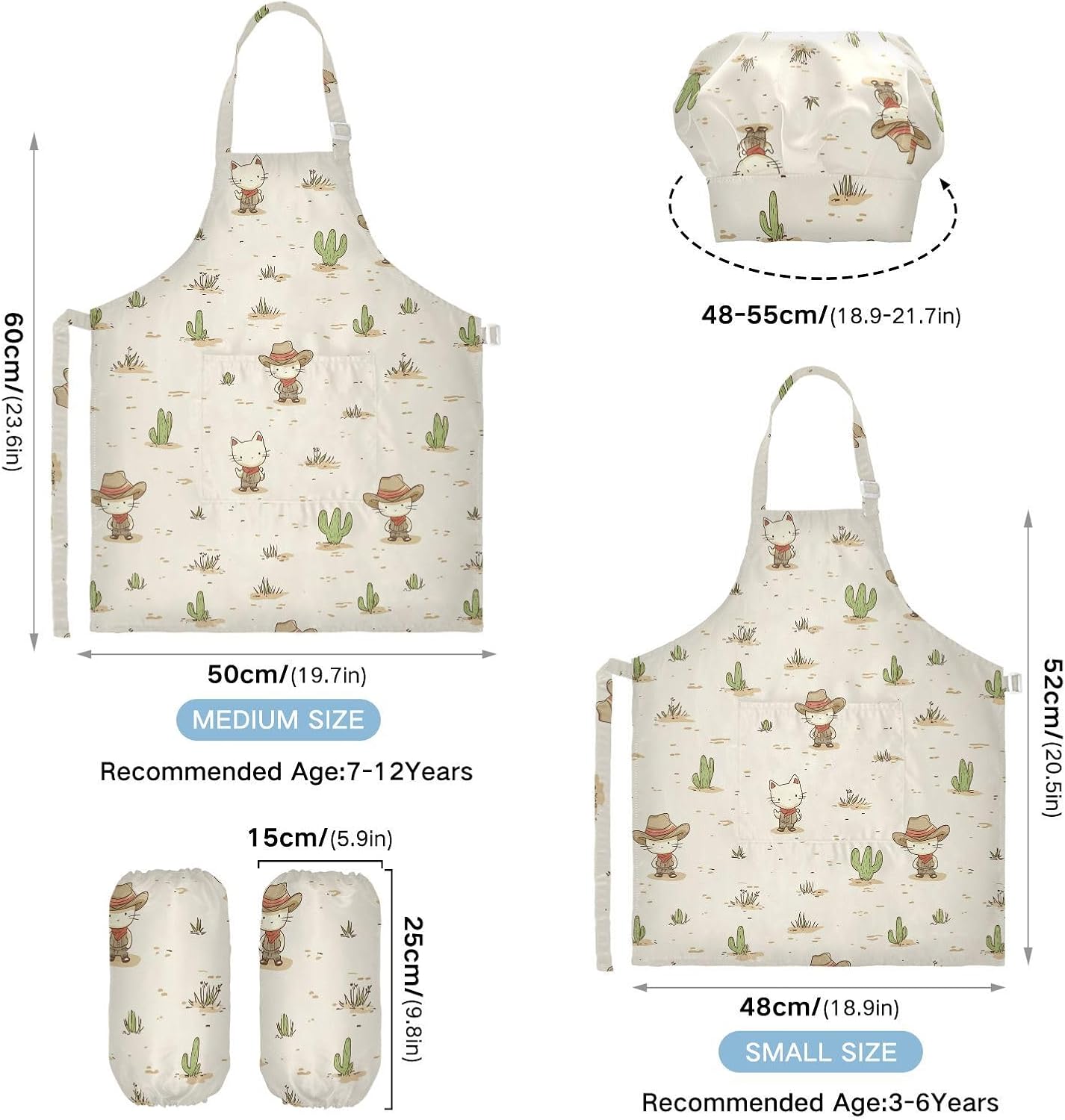 Dimensioni: il grembiule per bambini di piccole dimensioni per bambini dai 3 ai 6 anni è alto 52,1 cm, largo 48 cm. Il set da cucina per bambini di medie dimensioni da 3 a 7-12 anni è alto 59,7 cm, largo 50 cm. Il cappello delle due dimensioni misura 48-55,1 cm. ?La custodia misura 15 x 24,9 cm. Materiale di alta qualità: il set da chef per bambini è realizzato in poliestere, comodo, elegante, leggero e regolabile, impermeabile, facile da pulire. Cinghia regolabile: il collo lungo e le cinghie in vita sono regolabili. È possibile regolare la cinghia in base alla lunghezza che i bambini si sentono a proprio agio per attività o vestirsi Inoltre, la cinghia regolabile può fornire abbastanza spazio per i bambini da indossare o togliere. Ampia applicazione: i grembiuli per bambini sono adatti per l'insegnamento della pittura e l'insegnamento della cucina, possono essere applicati anche per corsi d'arte, costumi di Halloween, oggetti di scena teatrali, feste di compleanno e le belle attività della decorazione per feste a tema. Facile da pulire: il nostro prodotto è impermeabile e a prova di fuoriuscite. Basta strofinare, lavare in lavatrice e lavare a mano.