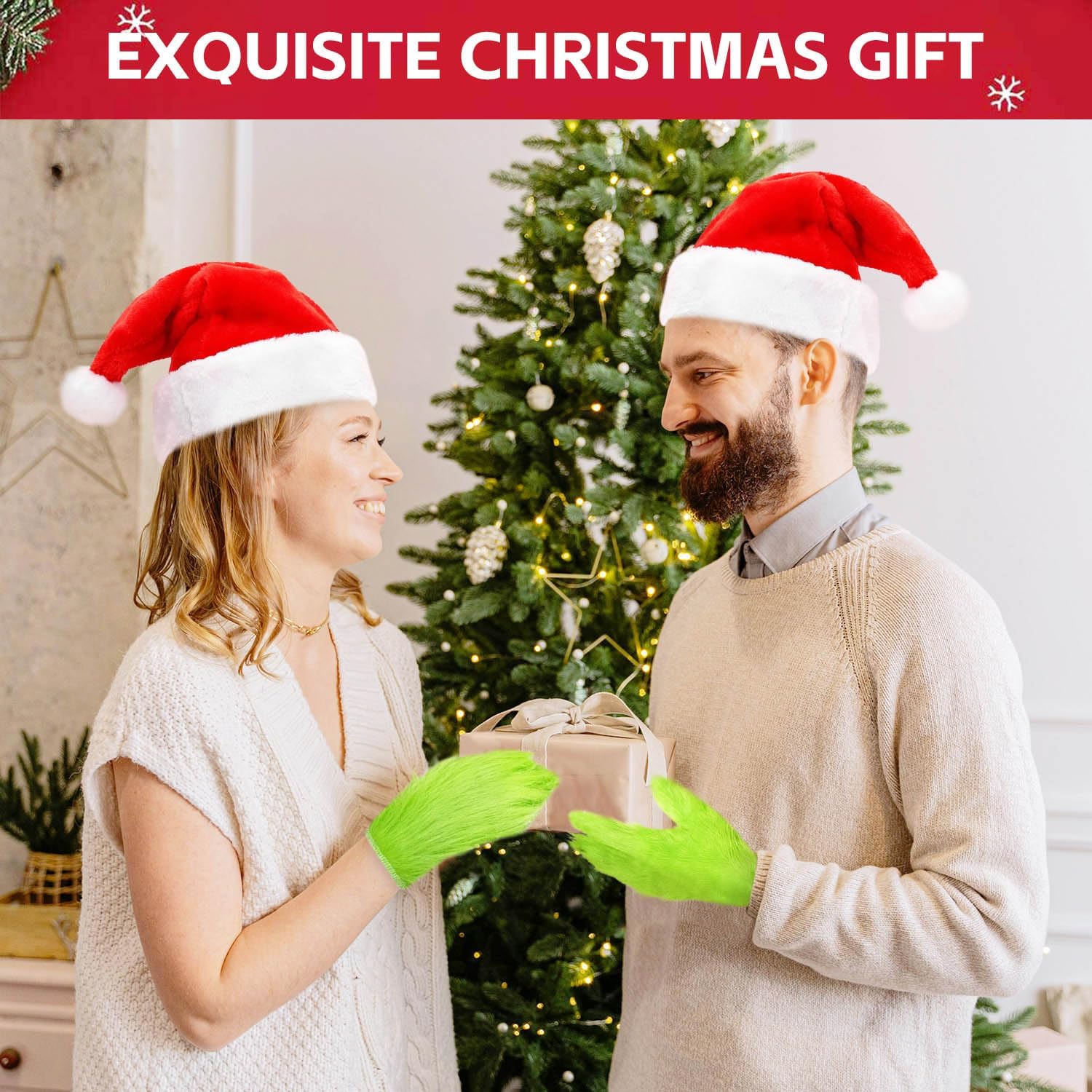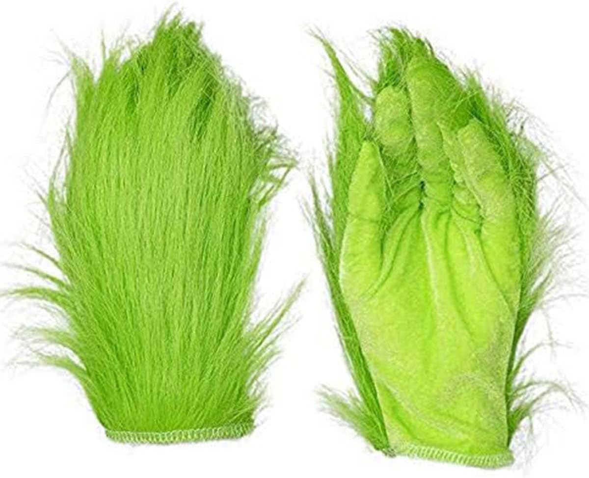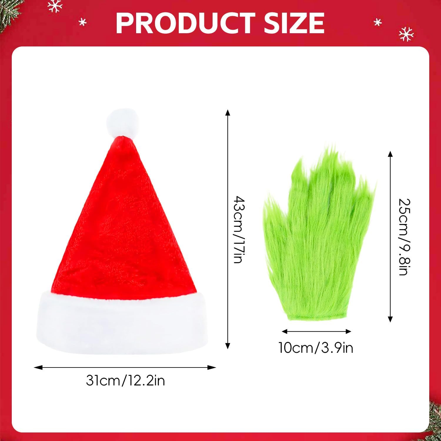 Set di guanti e cappello da Babbo Natale pelosi verdi, divertenti guanti natalizi per Halloween, guanti pelosi e cappello da Babbo Natale, oggetti di scena per cosplay per adulti