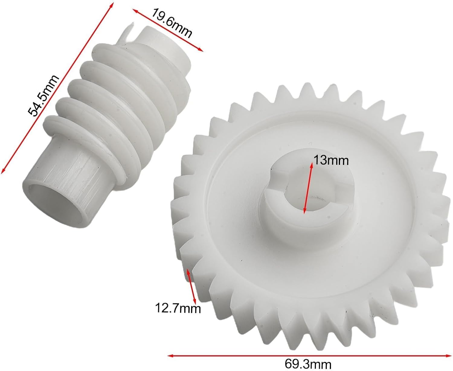 Set di ingranaggi e ingranaggi a vite senza fine di ricambio: questo prodotto include un ingranaggio di trasmissione di ricambio (numero di parte 41A e un ingranaggio a vite senza fine (codice articolo 41A4315). È progettato per adattarsi a 13918315SR, 13918415SR, 13918616SR, 13918847, 13918857, 13918869, 13918880, 13953100, 139531006, 13953331006. 110, 110 Sistema apriporta garage 3953200 e 139 Access. Informazioni precise sulle taglie: l'ingranaggio ha un diametro esterno di 8 mm e un foro di 13 mm. Dispone di 32 denti sulla ruota motrice, una perfetta vestibilità e un funzionamento fluido. Materiale: realizzato in materiale ABS, questo set di ingranaggi e ingranaggi a vite senza fine è costruito per durare nel tempo. Fornisce prestazioni affidabili e lunga durata, il funzionamento regolare ed efficiente dell'apriporta del garage. Facile installazione: con la ruota motrice e l'ingranaggio a vite senza fine inclusi, la sostituzione delle parti vecchie o rotte è rapida e senza problemi. Basta seguire le istruzioni e installare facilmente gli ingranaggi di ricambio per ripristinare la funzionalità ottimale dell'apriporta del garage. Contenuto della confezione: questo set include 1 ruota motrice e 1 ingranaggio a vite senza fine, fornendo tutto il necessario per una sostituzione completa del cambio. Siate certi che con questo set di ingranaggi di trasmissione correttamente adatto, il vostro apriporta del garage funzionerà perfettamente.