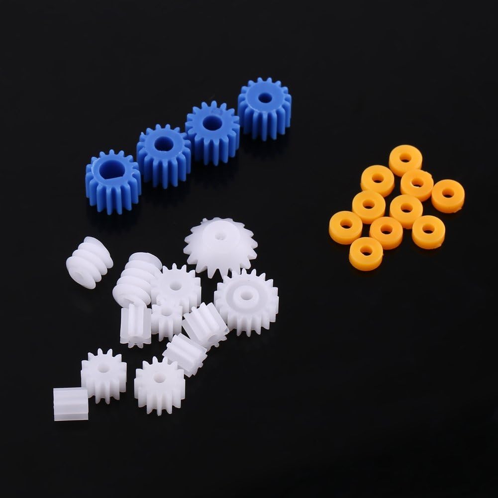 【Costruzione in plastica resistente per prestazioni di lunga durata】 : Realizzata in plastica di alta qualità che resiste all'usura durante ripetuti progetti fai-da-te e all'uso di giocattoli. Costruito per durare. 【Ideale per modellini di automobili, aerei, robot e altro】 : Accessorio perfetto per i produttori che costruiscono modellini di veicoli, aerei, robot, arte cinetica e altre creazioni motorizzate. 【Include 26 ingranaggi a vite senza fine, manicotti e mandrini assortiti】 : Il set contiene una varietà di ingranaggi a vite senza fine, manicotti e mandrini di dimensioni da 2 mm a 4 mm per soddisfare le diverse esigenze. 【Le parti di dimensioni compatte consentono un montaggio semplice】 : I piccoli componenti in plastica sono leggeri e facili da maneggiare per una costruzione semplice da parte degli appassionati di fai-da-te. 【Compatibile con varie dimensioni di motore e tipi di albero】 : Adatto per l'uso con motori coreless, dimensioni dell'albero da 2 mm a 4 mm, alberi a D e altri piccoli motori per hobby.