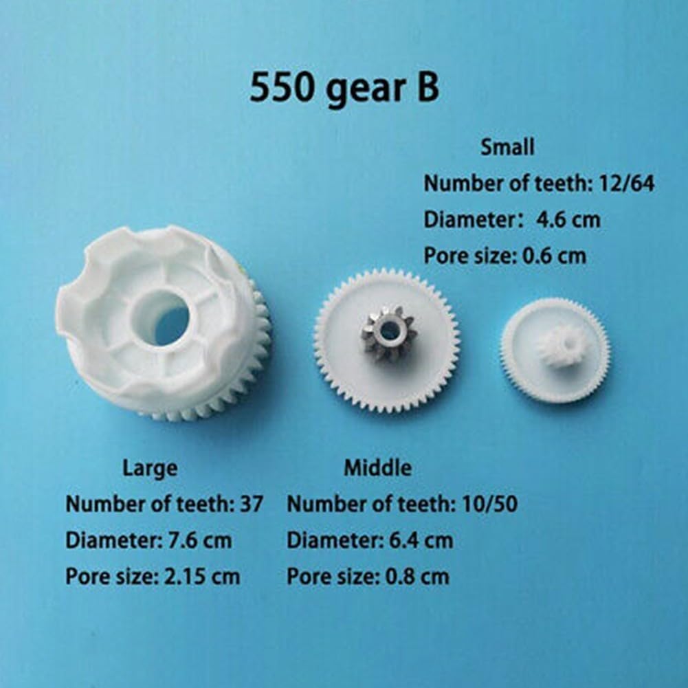 Materiale: realizzati in materiale, questi ingranaggi in plastica sono durevoli e durevoli. Compatibile con riduttori 550 e 390: progettati per auto elettriche per bambini con cambio 550 e 390, questi ingranaggi sono perfetti per la sostituzione o l'aggiornamento. Varie opzioni: scegli tra diversi modelli e set, tra cui 550 5P, 390 rapporti A/B e 550 rapporti A/B, per soddisfare le tue esigenze specifiche. Dimensioni precise: le dimensioni di questi ingranaggi sono misurate accuratamente e mostrate nelle immagini, per una vestibilità perfetta. La confezione include: scegli tra diverse opzioni di pacchetto, tra cui un set completo o una singola marcia, per una maggiore comodità nel tuo acquisto.
