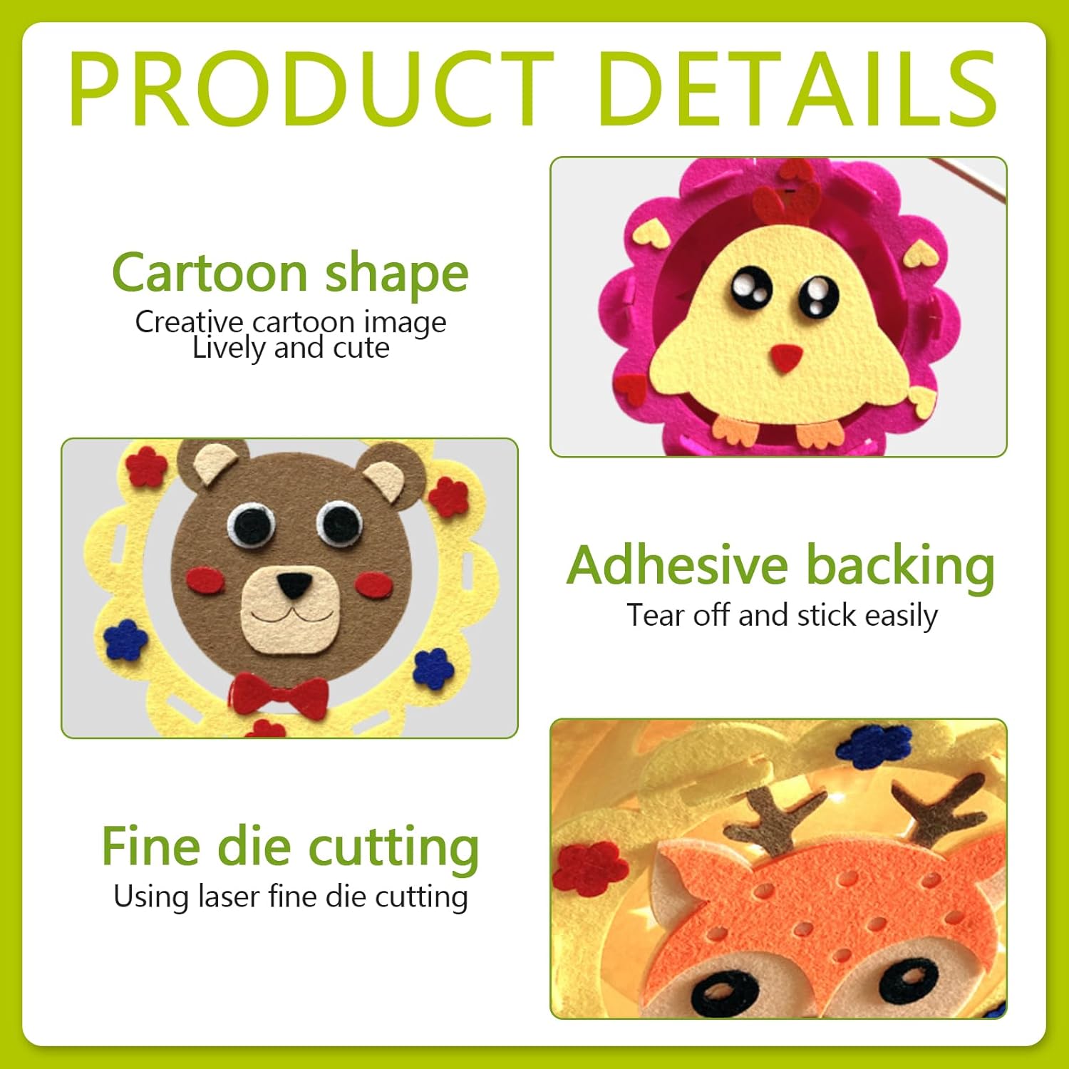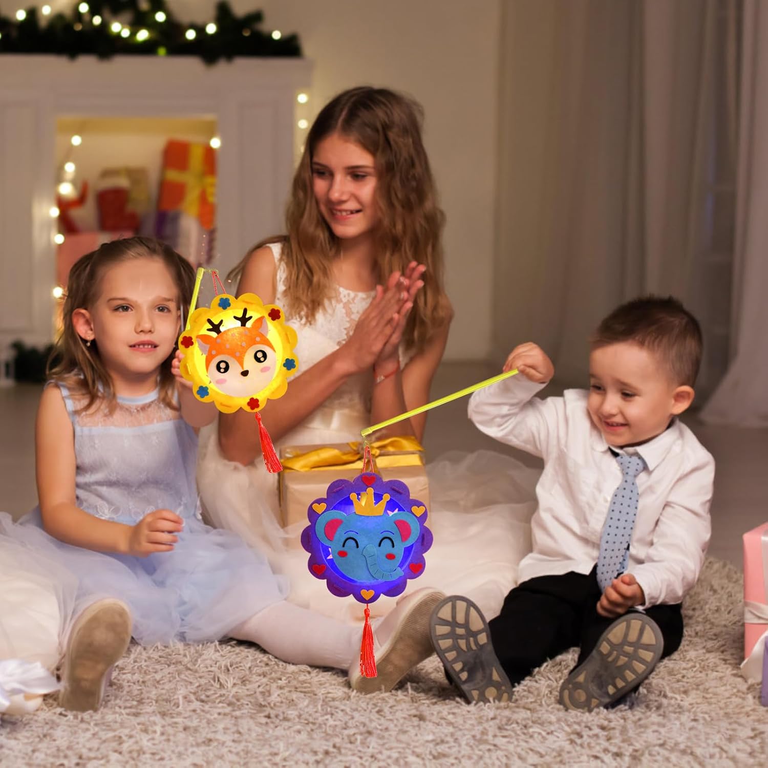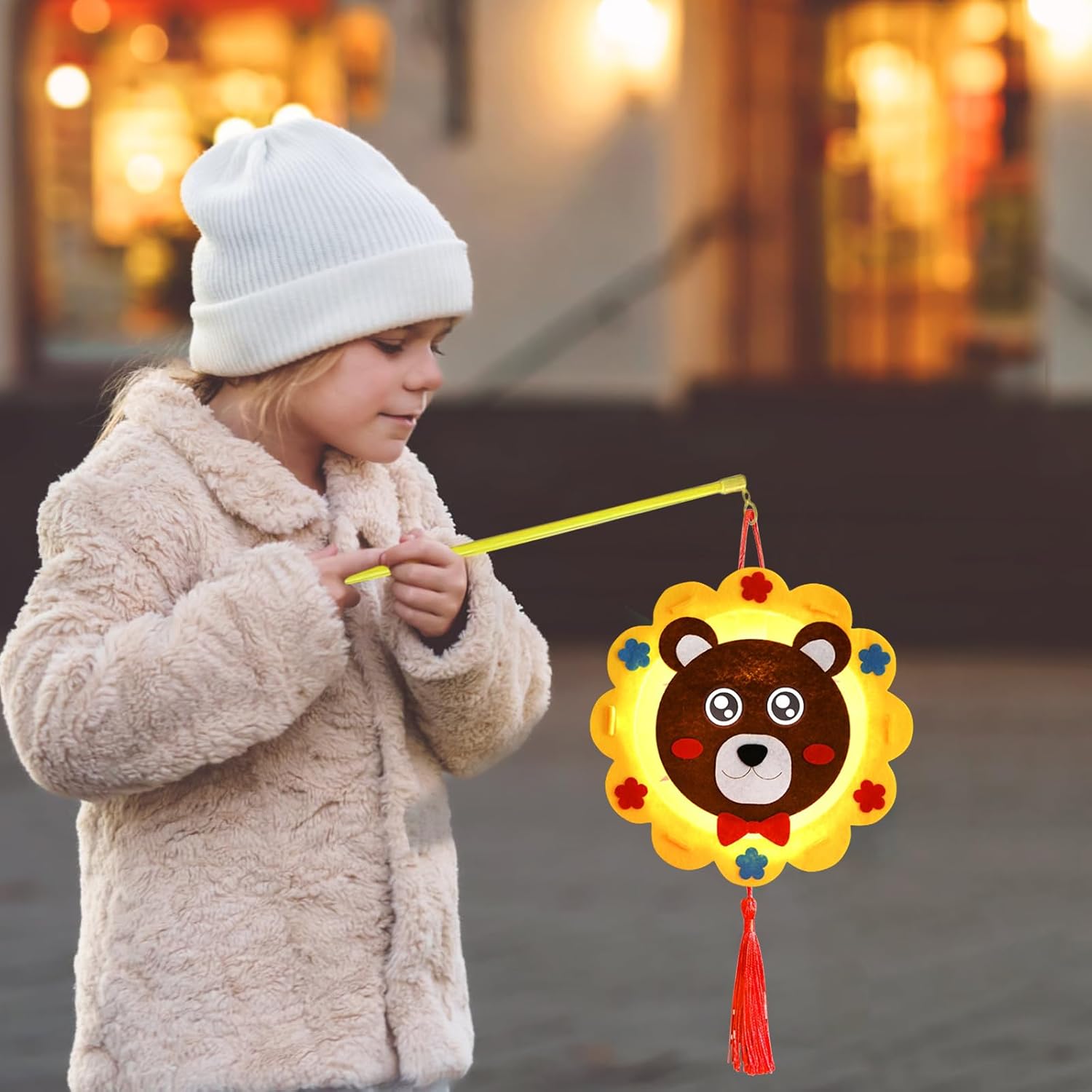 Set di lanterne artigianali di San Martino: il nostro set di lanterne comprende 4 forme di lanterne (oca bianca + coniglio bianco + gallina gialla + tigre / orso + cervo + elefante + rana), 4 bastoncini per lanterne e 4 luci LED. Ideale per la sfilata di San Martino o per altre occasioni di festa, il set offre tutto ciò che serve ai bambini per realizzare una lanterna creativa. Materiali di alta qualità: il set per lanterne è realizzato in feltro, un materiale ecologico. Il feltro è resistente agli strappi e quindi durevole e sicuro per i bambini. Una lanterna in feltro offre inoltre ai bambini una nuova sensazione. Set di lanterne artigianali per bambini: grazie ai simpatici disegni dei cartoni animati, le lanterne faranno la gioia dei bambini di tutte le età. I materiali artigianali sono autoadesivi, il che rende estremamente facile il fissaggio delle parti. I bambini possono staccare e attaccare i materiali senza fatica, facilitando il processo di crafting. Promuove l'interazione genitori-figli: questo set è perfetto per trascorrere del tempo insieme alla famiglia. Il crafting non solo sviluppa le abilità pratiche dei bambini, ma stimola anche la loro creatività e immaginazione. Genitori e figli possono rafforzare il loro legame realizzandoli insieme. Applicazione versatile: I kit artigianali di lanterne fai da te per bambini sono coloratissimi e non sono adatti solo per la processione di San Martino, ma anche per Halloween, Natale, sfilate di lanterne, compleanni, matrimoni, carnevali, decorazioni e festeggiamenti di Capodanno.