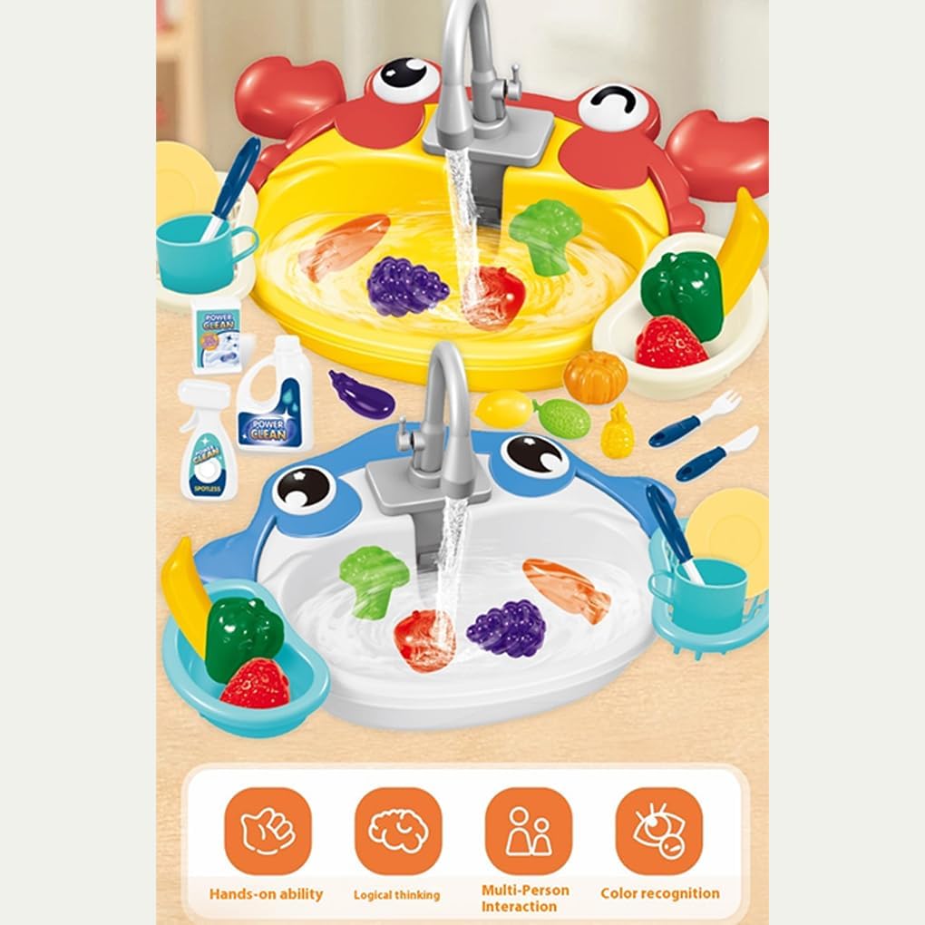 Gioco d'acqua interattivo: i bambini possono divertirsi a giocare con l'acqua che scorre in questo set di giochi con lavello elettrico e acqua Divertimento di ruolo: i bambini possono fingere di lavare i piatti e cucinare in cucina con questo set di giochi da cucina Apprendimento pratico: questo giocattolo per bambini aiuta i bambini a comprendere il concetto di riciclo dell'acqua mentre giocano Scelta regalo: il lavello elettrico a forma di cartone animato è un regalo per bambine e bambini che amano giocare a casa e in cucina Tempo di gioco creativo: lascia che la fantasia del tuo bambino si scateni mentre si diverte per ore con questo set di giochi con lavello da cucina per bambini