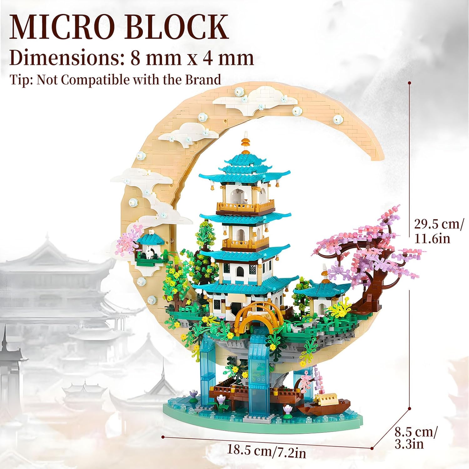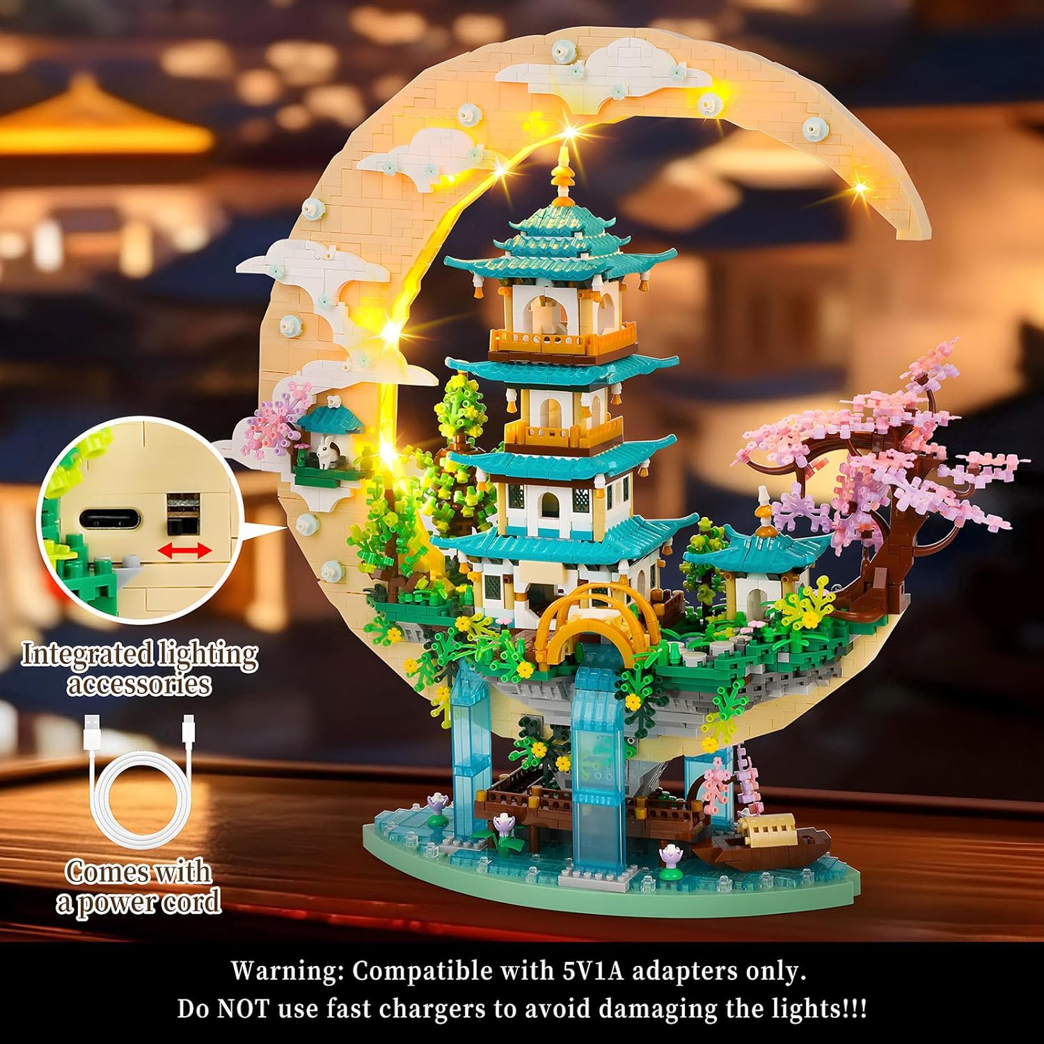 4228 Pezzi di Micro Mattoni - Ispirato alla leggenda cinese del Palazzo della Luna con padiglioni, fiori di ciliegio e Chang’e con il suo coniglio che mantiene l’armonia celeste. I mattoni di questo kit sono più piccoli del normale e in grande quantità. Richiede eccezionale pazienza e perseveranza per essere completato. Non adatto ai costruttori principianti. Materiali Sostenibili - Realizzati in plastica ABS riciclabile di alta qualità. Per ottenere i migliori risultati, consigliamo di pre-selezionare i numerosi pezzi piccoli prima dell'assemblaggio per garantire un'esperienza di costruzione più agevole. Avviso Importante: Il cavo di alimentazione fornito è compatibile solo con una presa da 5V 1A. Non utilizzare dispositivi di ricarica rapida, poiché ciò potrebbe danneggiare le luci! Esperienza di costruzione impegnativa - Perfetta per i costruttori di mattoncini avanzati che cercano progetti gratificanti. Un'attività di gruppo coinvolgente per familiari o amici. Prova l'orgoglio di creare un bellissimo Palazzo della Luna con migliaia di pezzi. Elegante pezzo d'esposizione - Misura 29,5x18,5x8,5 cm una volta completato. Un'esperienza di costruzione gratificante che si trasforma in un sorprendente oggetto decorativo, aggiungendo colore vivace e un tocco artistico a qualsiasi casa o ufficio. Il regalo della scelta - Perfetto per qualsiasi occasione come Capodanno, Natale, compleanno, Festa della Mamma, Pasqua, Halloween o Hanukkah. Progettato per adolescenti creativi (14 anni) e adulti. Confezionato in una scatola di 38x24x7 cm (14,9" x 9,4" x 2,7"). Se mancano dei pezzi, contattaci per una sostituzione gratuita.