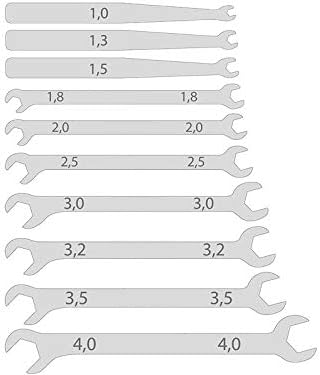 Set di microchiavi aperte 10 pezzi 1-4 mm per modellismo ferroviario, modellismo, hobby Set di microchiavi aperte di alta qualità in V2A (acciaio inossidabile) Dimensioni della chiave 1,0 / 1,3 / 1,5 / 1,8 / 2,0 / 2,5 / 3,0 / 3,2 / 3,5 / 4,0 mm Lunghezza della chiave da ca. Da 3,3 a 4,5 mm Consegnato in una pratica scatola portaoggetti