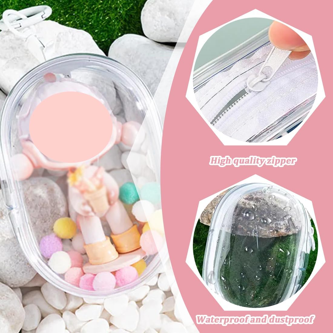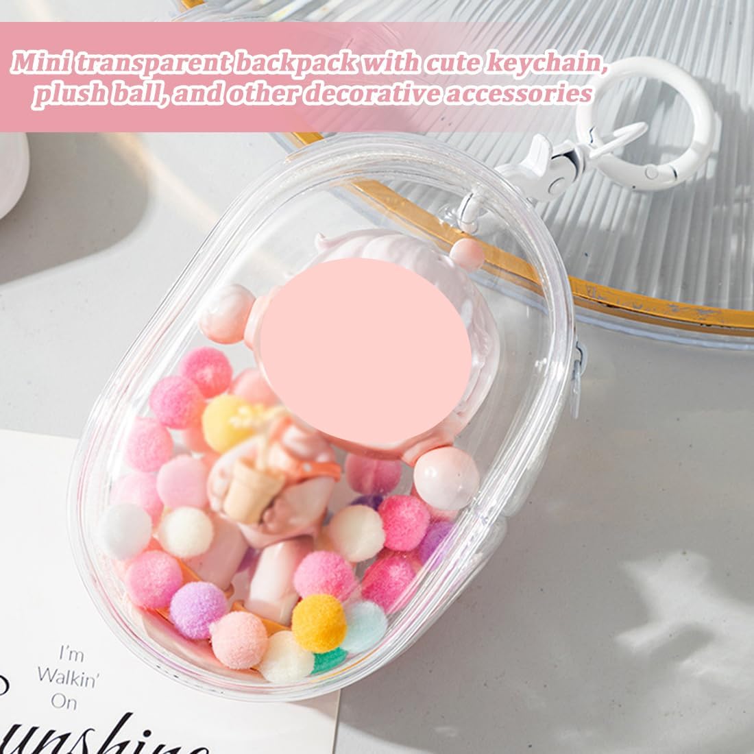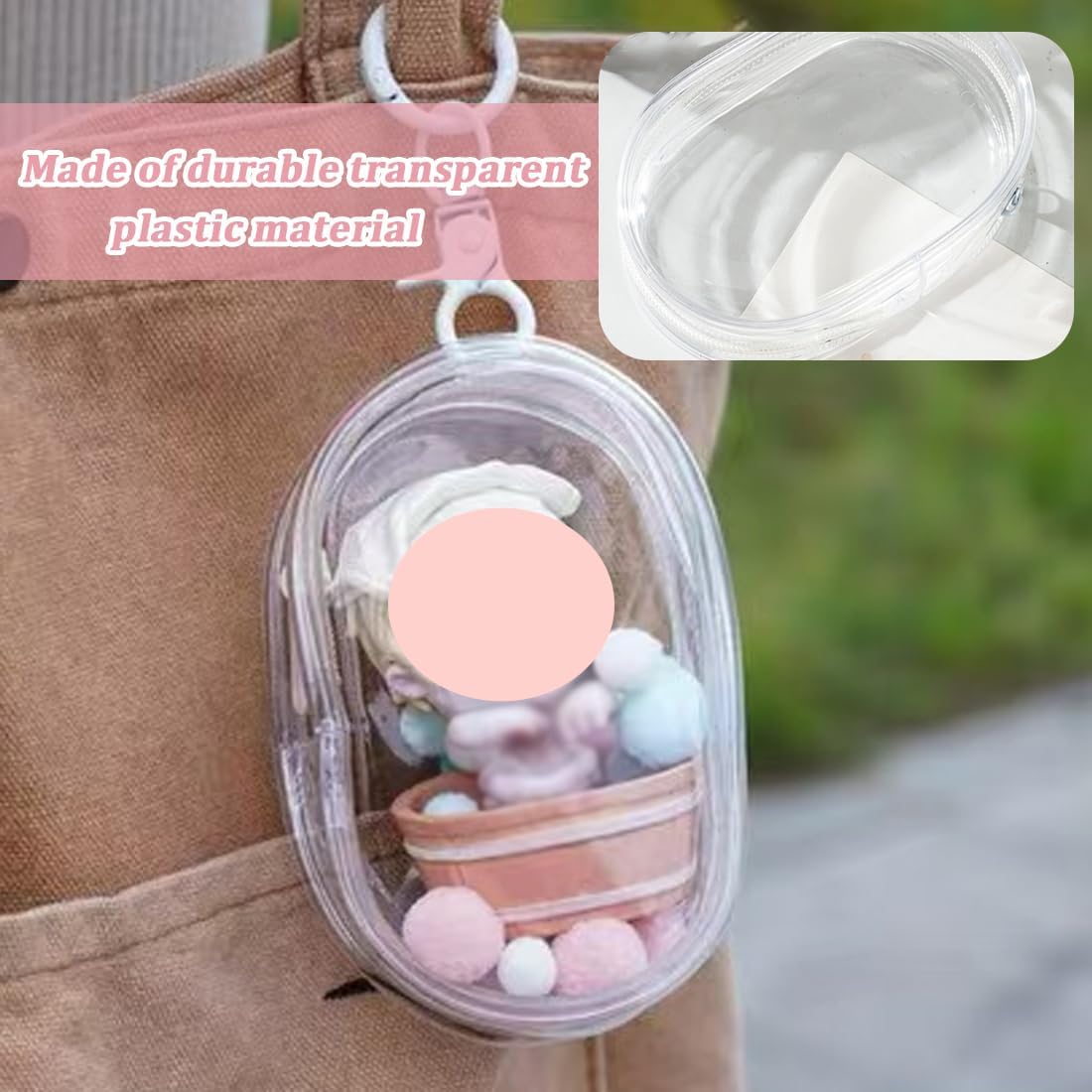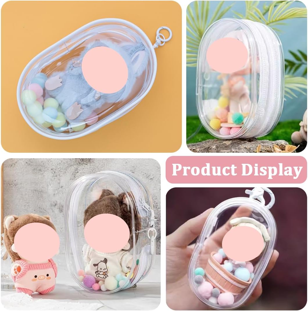 Materiale: Realizzato in materiale PVC di alta qualità, impermeabile e antipolvere, sicuro e durevole. Struttura trasparente: realizzata in resistente materiale plastico trasparente, consente di vedere il contenuto e di proteggere al contempo la bambola decorativa al suo interno. Caratteristiche del design: Mini zaino trasparente con grazioso portachiavi, pompon e altri accessori decorativi. Applicabile: questo prodotto è adatto per bambole di pezza da 15-18 cm, così come per altre bambole. Bellissimo regalo: Questo mini zaino trasparente per bambole può essere utilizzato per trasportare la tua bambola preferita quando viaggi o fai shopping. Puoi decorarla sullo zaino e portarla alle feste di compleanno, ad Halloween, a Natale e ad altri eventi, così anche i tuoi amici potranno apprezzare la tua bambola preferita.