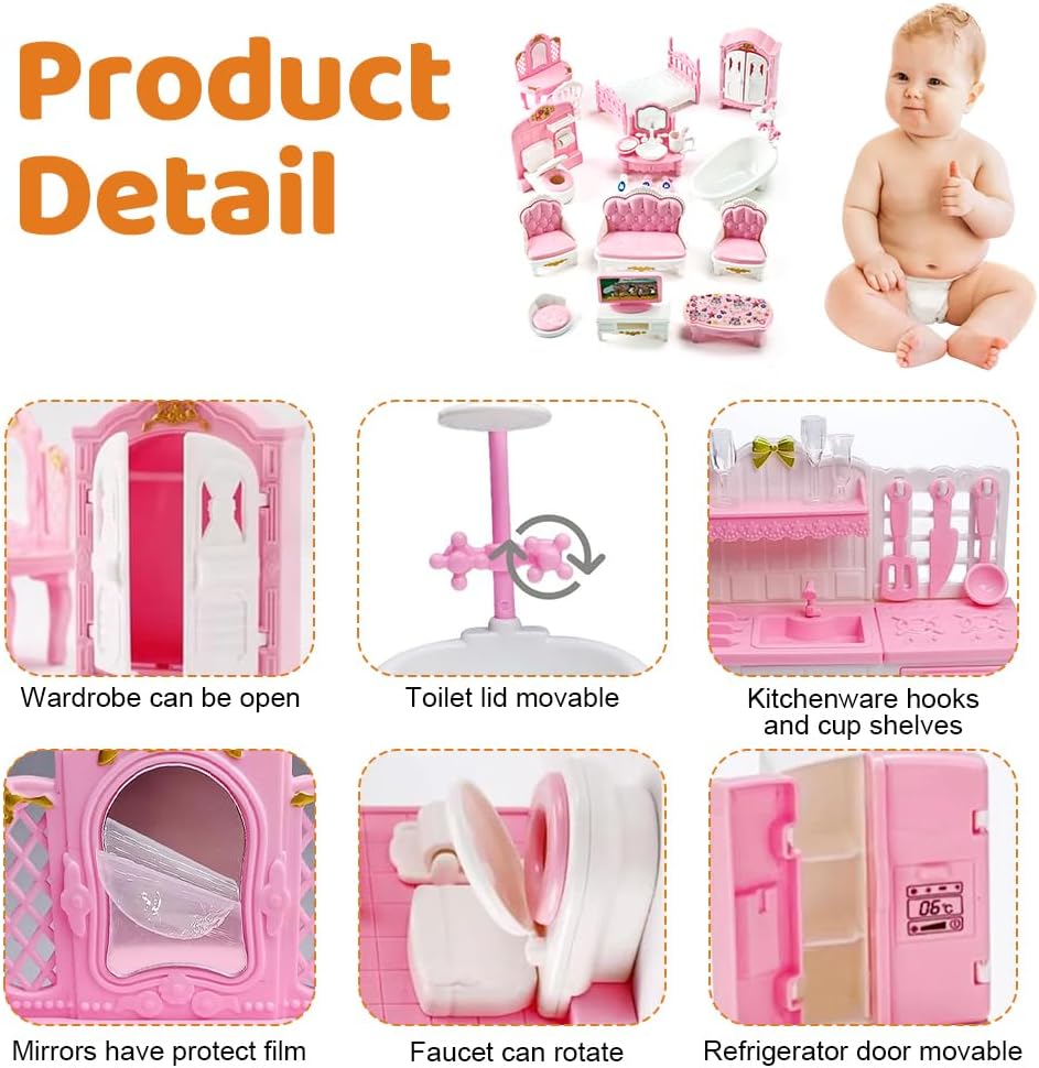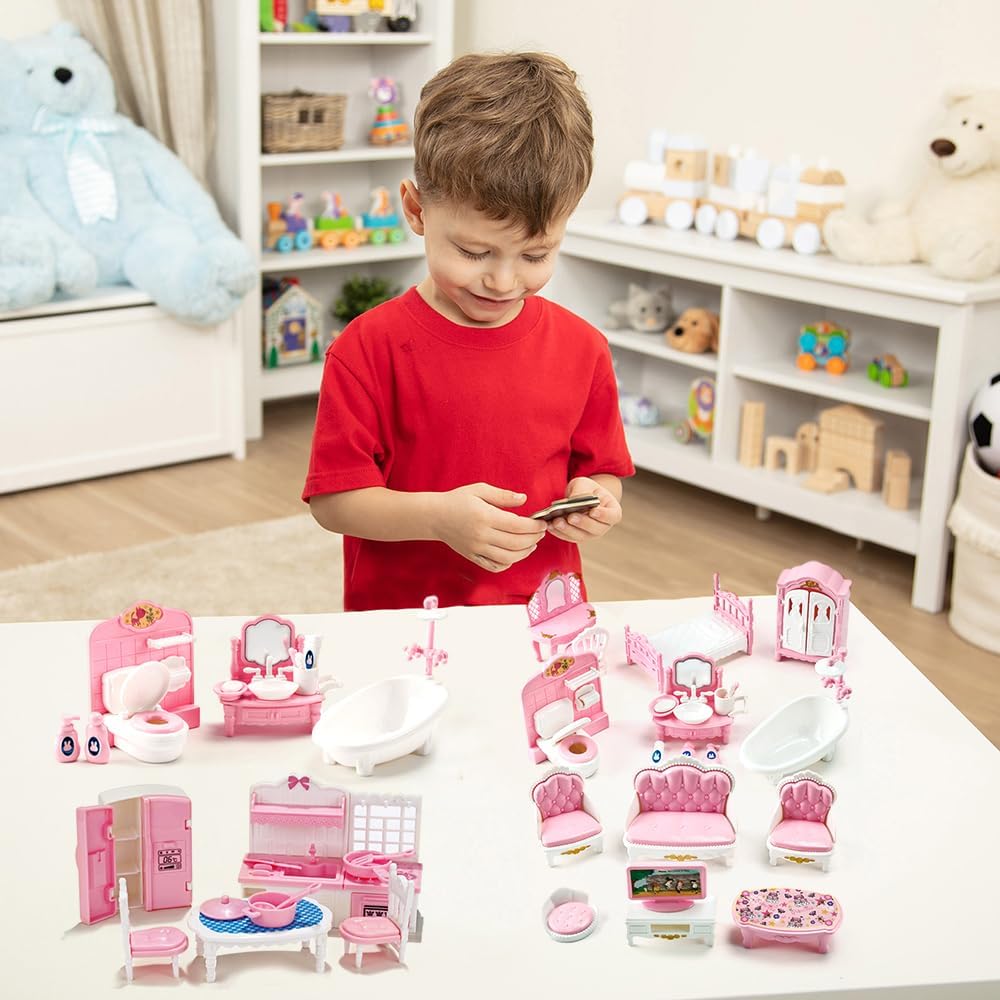 【Qualità premium e sicurezza per i bambini】 I set di mobili per casa delle bambole sono realizzati in resina, senza spigoli vivi, abbastanza lisci da proteggere i bambini mentre giocano. che sono inodori, durevoli e difficili da rompere. sono sicuri e non tossici, la lavorazione squisita e l'attenta lavorazione ne fanno una simulazione realistica. 【Set di mobili per casa delle bambole】 Adatto per casa delle bambole in miniatura 1:12, creando una vita colorata, set di mobili per casa delle bambole per 4 diversi soggiorni, cucina, camera da letto e servizi igienici. un carretto per spostare le cose e un cavallo a dondolo, altri divertenti accessori. Questi squisiti accessori rendono più divertente il gioco. 【Molto giocabile ed educativo】 Il set di mobili per casa delle bambole è color pastello e piace a ragazzi e ragazze. I prodotti simulano scene quotidiane, in modo che i bambini possano sperimentare di più la vita, aumentare la loro creatività. Aggiungeranno un tono moderno alla casa e la arricchiranno anche con dettagli e giocabilità. 【Molto giocabile ed educativo】 Il set di mobili per casa delle bambole è color pastello e piace a ragazzi e ragazze. I prodotti simulano scene quotidiane, in modo che i bambini possano sperimentare di più la vita, aumentare la loro creatività. Aggiungeranno un tono moderno alla casa e la arricchiranno anche con dettagli e giocabilità. 【Regalo unico】 Questa è una sorpresa natalizia ideale per ogni piccolo. Che tu stia cercando un regalo o una ricompensa personalizzata per il tuo bambino, questo set di mobili per casa delle bambole è la soluzione migliore per te. È una sorpresa ideale per Natale, compleanno, festa e Capodanno per bambini e adulti che amano le miniature.