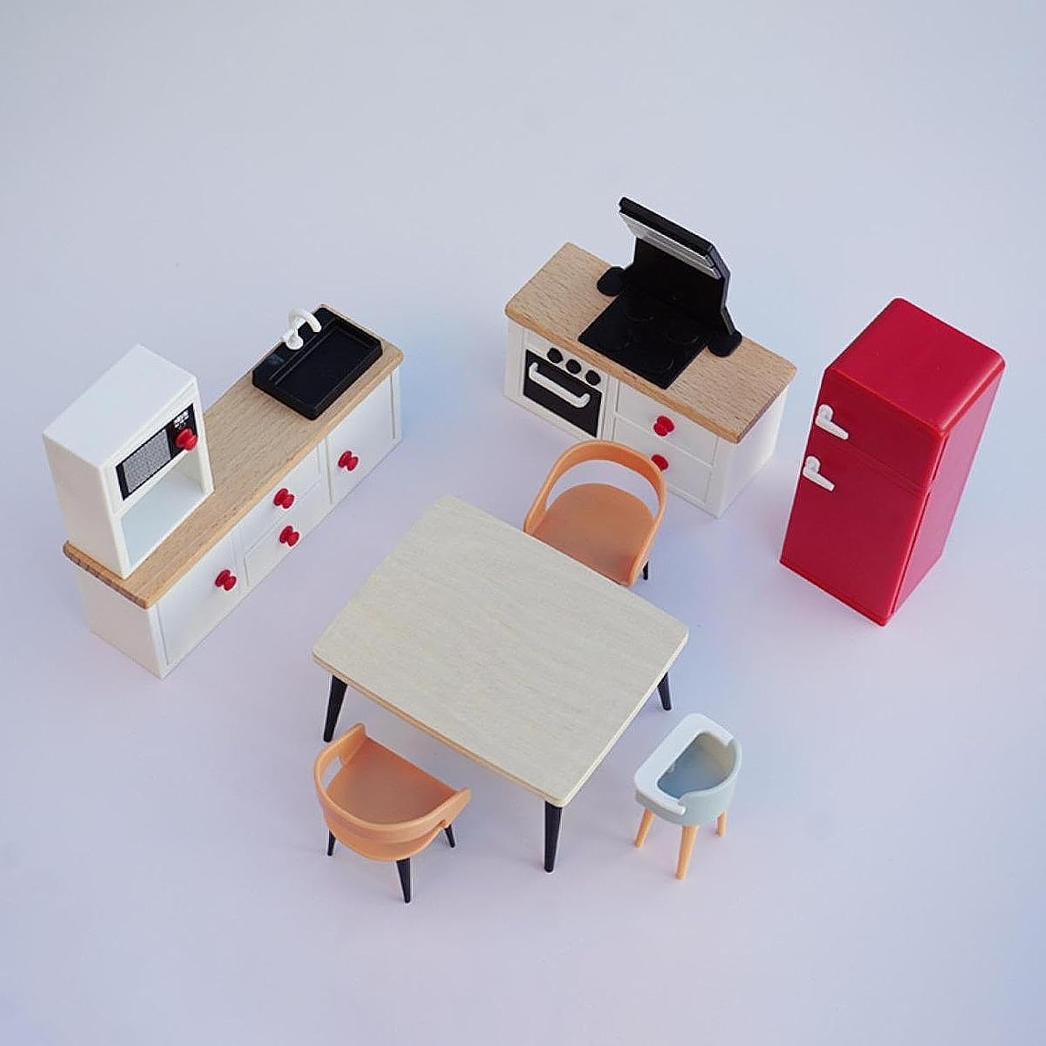 【Materiale】: i giocattoli per mobili in miniatura sono realizzati in robusto PP e legno, con dettagli realistici per un uso a lungo termine 【Set completo compatto】: mobile bianco, due sedie da pranzo europee, tavolo da pranzo, frigorifero, stufa bianca e seggiolone per bambini 【 la creatività e l'interazione genitore-figlio】: il set di mobili per la casa delle bambole è perfetto per il gioco genitore-figlio, consentendo ai bambini di progettare scene e creare storie, stimolando la loro immaginazione e rafforzando il loro pensiero spaziale e le capacità di narrazione 【Regalo ideale per le bambine】: la decorazione della casa delle bambole è perfetta per compleanni o occasioni speciali e il gioco di ruolo lo rende un ottimo regalo per qualsiasi bambina che ama giocare a casa con le bambole 【Uso versatile】: il set di mobili in miniatura per case delle bambole è versatile e adatto per case delle bambole in 1/12 o come oggetto di scena per fotografie in miniatura.