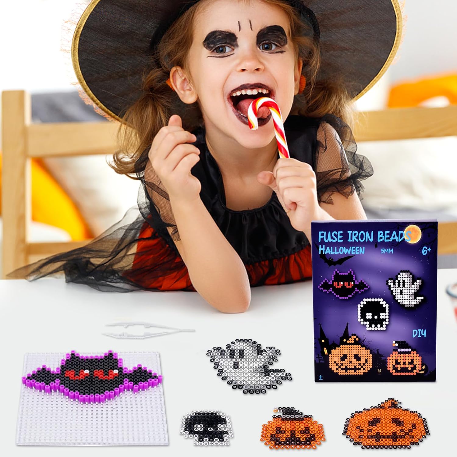 Set di perline da stirare da 5 mm: il set di perline contiene diversi accessori: una confezione di perline colorate, 1 stencil da 15 cm, carta da stiro da 16 cm + 4, 4 collane di perline, 4 ciondoli per cellulare in diversi colori, 8 piccoli anelli di ferro, 4 adesivi per frigorifero, 1 clip bianca. I bambini possono dare libero sfogo alla loro immaginazione e creare infinite forme e modelli diversi Alta qualità delle perle: le perline nel nostro set sono realizzate con materiali di alta qualità. Colori resistenti e durevoli, in modo che le opere d'arte siano belle per lungo tempo. Le perle sono anche adatte ai bambini e prive di sostanze nocive, quindi non devi preoccuparti della sicurezza dei tuoi bambini quando giocano con il set Design semplice e divertente: con il nostro set di perline da stirare per Halloween è possibile creare facilmente e rapidamente decorazioni per Halloween, giocattoli o gioielli. Le perle sono facili da maneggiare e sono perfette per bambini e adulti. È un ottimo modo per condividere l'atmosfera di Halloween con tutta la famiglia e diventare creativi insieme 【 Molti diversi motivi di Halloween】 Motivi realistici e carini di Halloween con cui i bambini possono creare le proprie decorazioni uniche, ad esempio fantasmi, zucche, scheletri e molto altro ancora. Questo set di perline è il giocattolo perfetto per ragazzi, ragazze, bambini e studenti, ideale come regalo per compleanni, Halloween, Pasqua e altre festività Regalo perfetto per bambini: questo set di perline da 5 mm per Halloween è perfetto per regali, compleanni per bambini, ragazzi e ragazze che amano il fai da te per ore di divertimento. Queste graziose opere d'arte possono essere utilizzate come portachiavi, ciondoli o accessori per cellulare