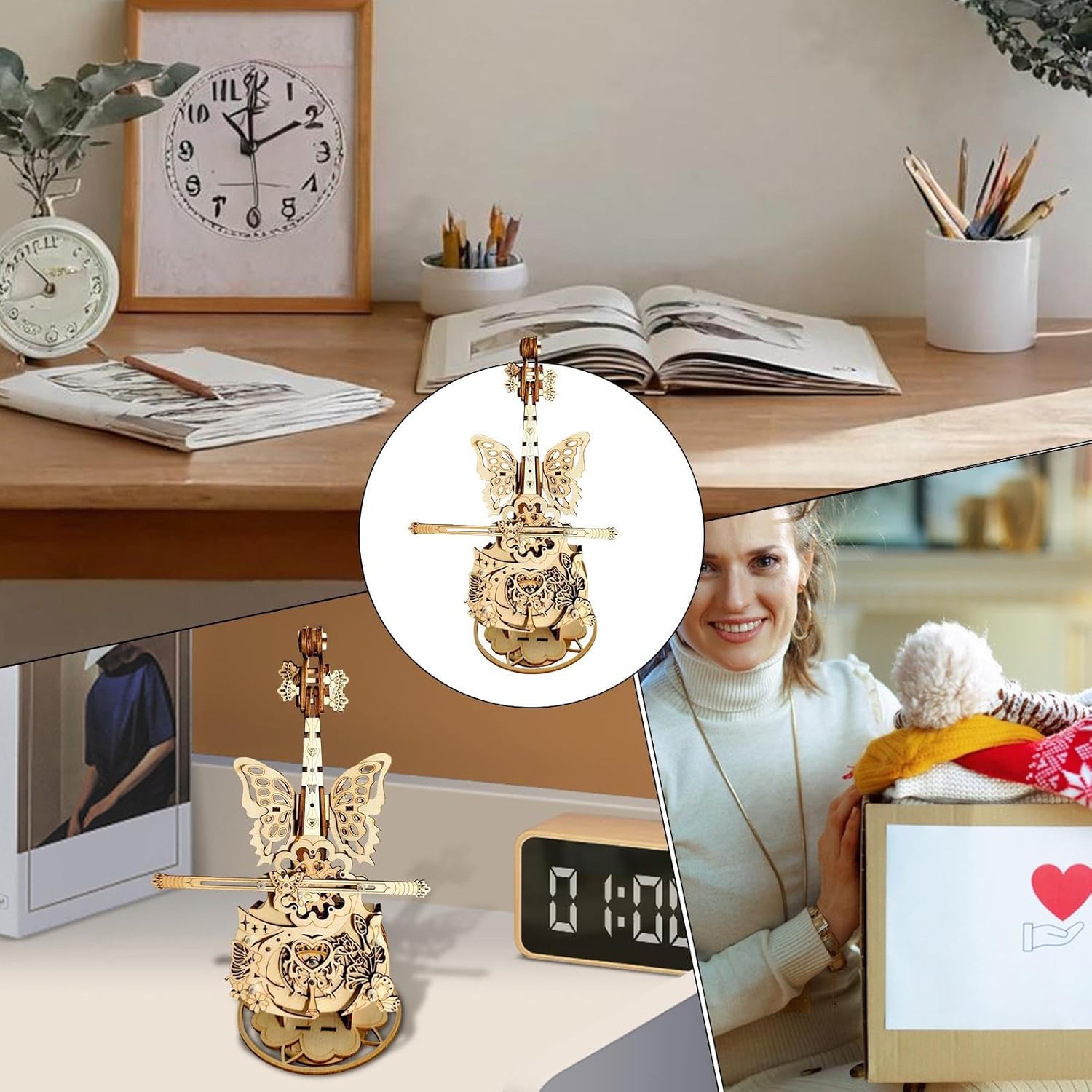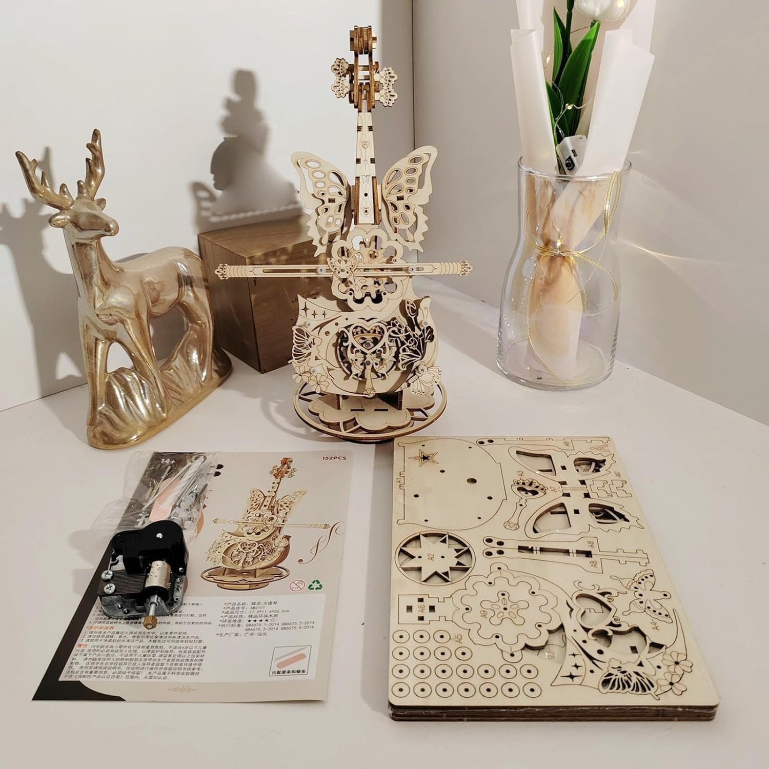 COMPONENTI: Il carillon per violoncello è dotato di parti finemente progettate per migliorare il tuo coinvolgente viaggio di creazione fornendo allo stesso tempo un gratificante senso di realizzazione attraverso istruzioni di montaggio dettagliate Espressione artistica armoniosa: I puzzle 3D della scatola per violoncello combinano la bellezza visiva con il ritmo, con trame naturali e curve dinamiche ispirate alle ali di farfalla e alle forme di violino per un'esperienza artistica coinvolgente Regalo creativo: Festeggia festival, Natale o qualsiasi occasione utilizzando questo puzzle creativo La musica per violoncello per bambini fornisce una migliore espressione della tua cura e del tuo affetto Bellezza visiva statica: Coinvolgi i tuoi sensi con melodie armoniose di un sistema di trasmissione meccanica combinato con un'incredibile estensione visiva, offrendo piacere di ascolto dinamico e bellezza statica per affascinare gli utenti che apprezzano le forme d'arte interattive e la creatività musicale. Ampia applicazione: adatto per scrivania o vetrina, camera da letto o angolo soggiorno. Questo carillon illuminerà ogni stanza con il suo tocco elegante e gli usi versatili, integrandosi con vari stili di decorazione
