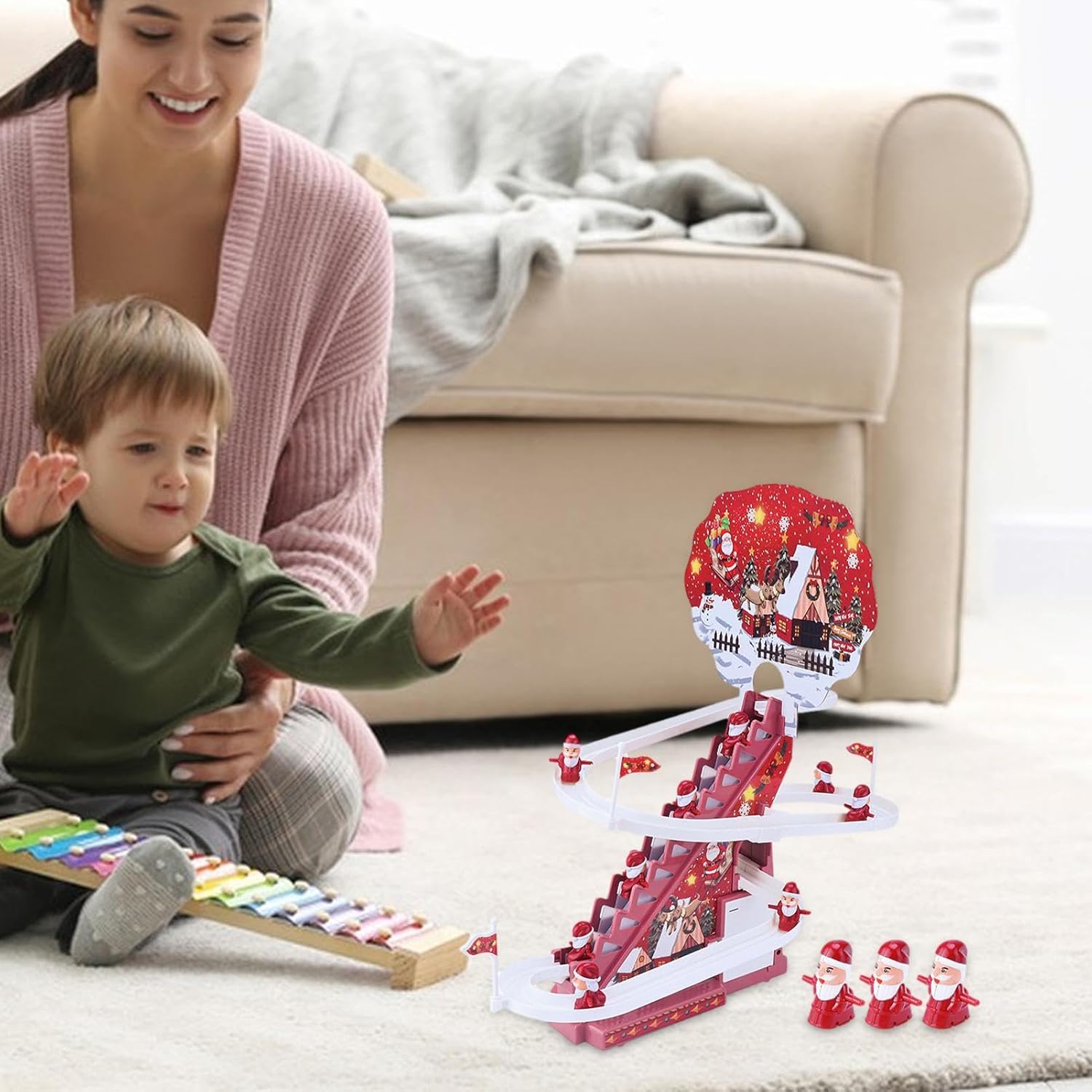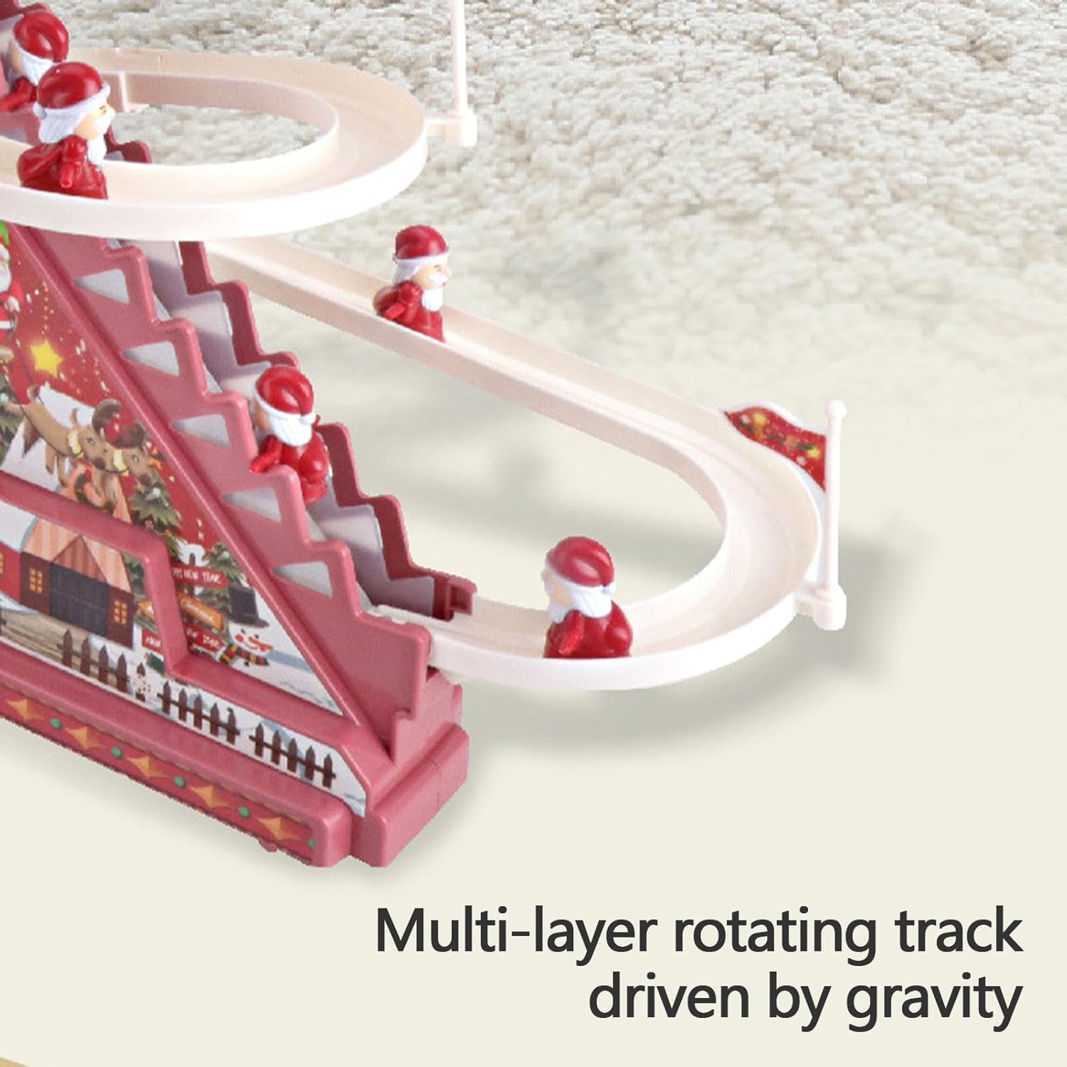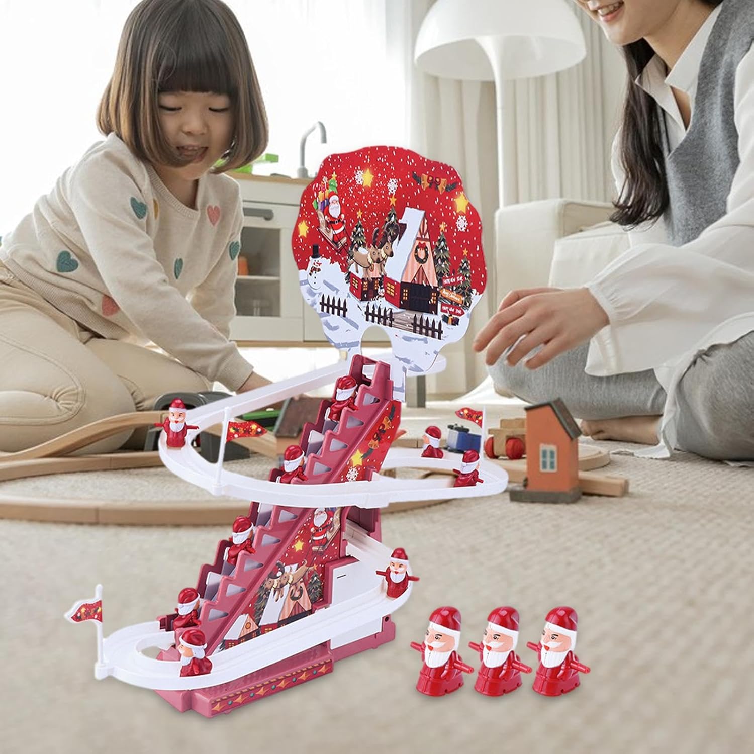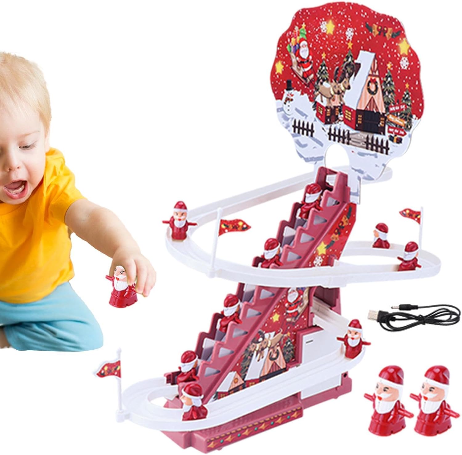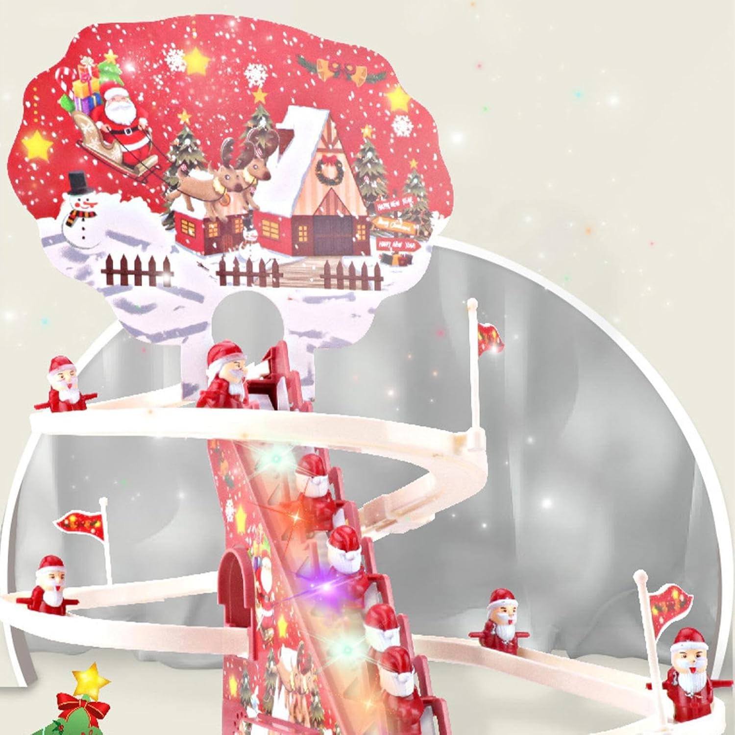 [Giocattoli divertenti per bambini] Progettate con musica divertente e luci LED colorate, le montagne russe natalizie porteranno gioia e risate alle feste di Natale e attireranno l'attenzione dei tuoi bambini e amici. [Materiali di alta qualità] Realizzato con materiali ABS di alta qualità, il giocattolo per scale di Babbo Natale presenta un aspetto delicato con grande durata, inodore, ecologico, sicuro, solido, sicuro e liscio. [Crea una relazione migliore] Il giocattolo da arrampicata di Babbo Natale di Natale migliora il rapporto tra genitori e figli ed è perfetto per far giocare insieme genitori e figli, popolare tra ragazzi e ragazze. [Articoli per feste a tema natalizio] Perfetto per Natale, Capodanno, feste a tema e vacanze invernali. Il giocattolo scorrevole di Babbo Natale con scale è pieno di elementi natalizi e invernali, progettato con simpatici personaggi di Babbo Natale e divertenti giocattoli scorrevoli. [Il miglior regalo per i bambini] Una scelta ideale per bomboniere e decorazioni. I giocattoli natalizi di Babbo Natale da arrampicata aiutano i bambini a riconoscere i colori e a sviluppare la coordinazione occhio-mano, regali perfetti per i tuoi amici, vicini e famiglie.