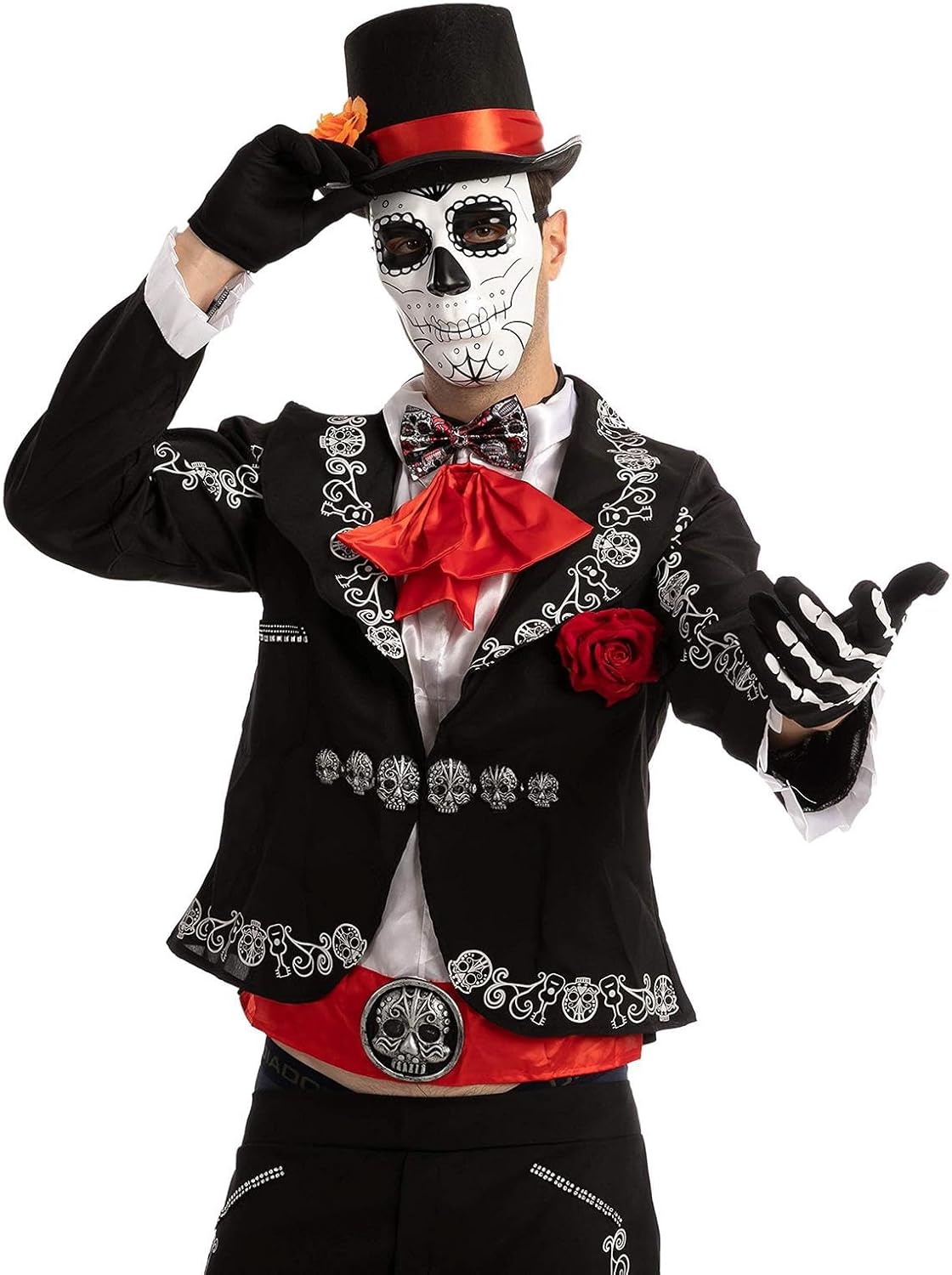 Migliora il tuo outfit del Giorno dei Morti con questi accessori per costumi di alta qualità. Look vivido e realistico con 1 paio di guanti da scheletro e un papillon facile da annodare. Adatto a molte occasioni, il papillon aggiunge il tocco perfetto a qualsiasi completo, rendendoti l'anima della festa! Attributi del prodotto Materiale: poliestere/non tessuto. Dimensioni del cappello: Dimensioni del prodotto: circa 30 x 25 x 12 cm/11,81 x 9,84 x 4,72 pollici. Taglia guanti corti: Taglia del prodotto: ca. 24 x 9 cm/9,45 x 3,54 pollici. Dimensioni dei guanti lunghi: dimensioni del prodotto: ca. 35 x 9 cm/13,78 x 3,54 pollici. Peso: ca. Elenco da 200 g: 1 * cappello floreale tricolore nero 1 * paio di guanti con teschio 1 * papillon
