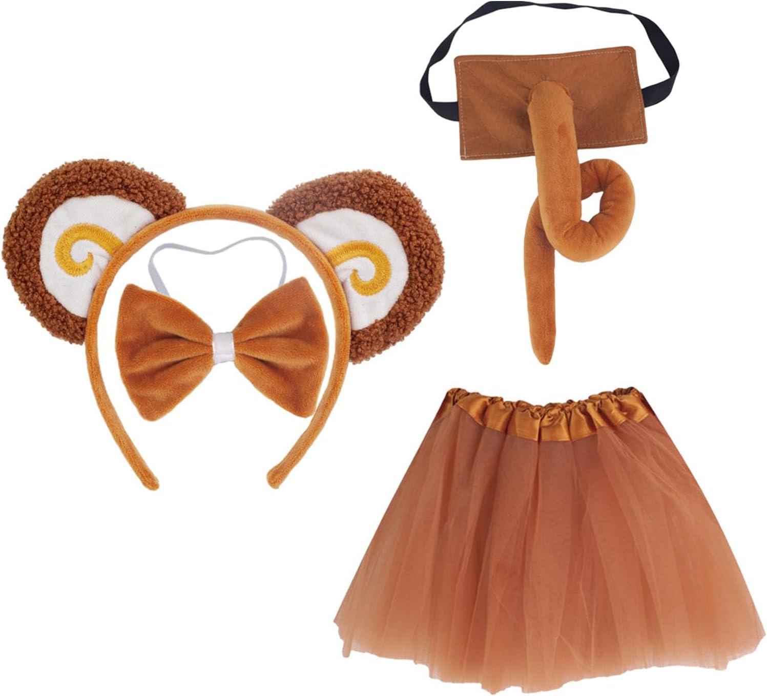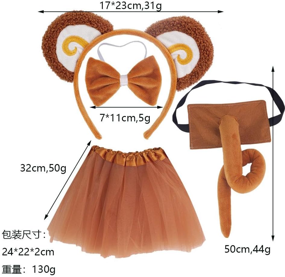 Descrizione: [Set cosplay] Il costume da scimmia include una coda, un papillon e una fascia per orecchie di scimmia. Alla moda e unico, perfetto per giochi di ruolo di Halloween. Materiale di alta qualità: il simpatico set di orecchie e coda è realizzato in tessuto di alta qualità, con dettagli squisiti, tocco confortevole e durata. Alla moda e carino: il design alla moda e unico della fascia per le orecchie ti consente di indossarlo sulla testa. Adatto per ragazzi, ragazze e bambini. Ampia applicazione: il set di costumi è un ottimo accessorio per varie occasioni, come feste di carnevale, cosplay, spettacoli teatrali, feste a tema animali, feste di Halloween, ecc. [Regalo perfetto per i bambini] Il costume da animale di Halloween è un ottimo regalo per bambini, cosplayer, attori, ballerini, ecc. Specifiche tecniche: Materiale: tessuto. Tabella delle taglie: Cerchietto: 17 cm x 23 cm. Papillon: 7 cm x 11 cm. Coda: 50 cm. Gonna in garza: 32 cm. La confezione include: Opzionale: 1 fascia, 1 papillon, 1 coda, o 1 fascia, 1 papillon, 1 coda, 1 gonna in garza. Nota: Si prega di considerare un leggero margine di errore dovuto alla misurazione manuale e ai diversi monitor.