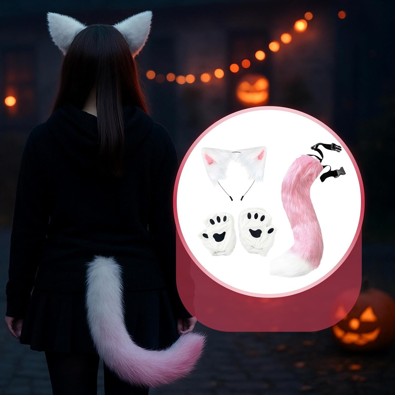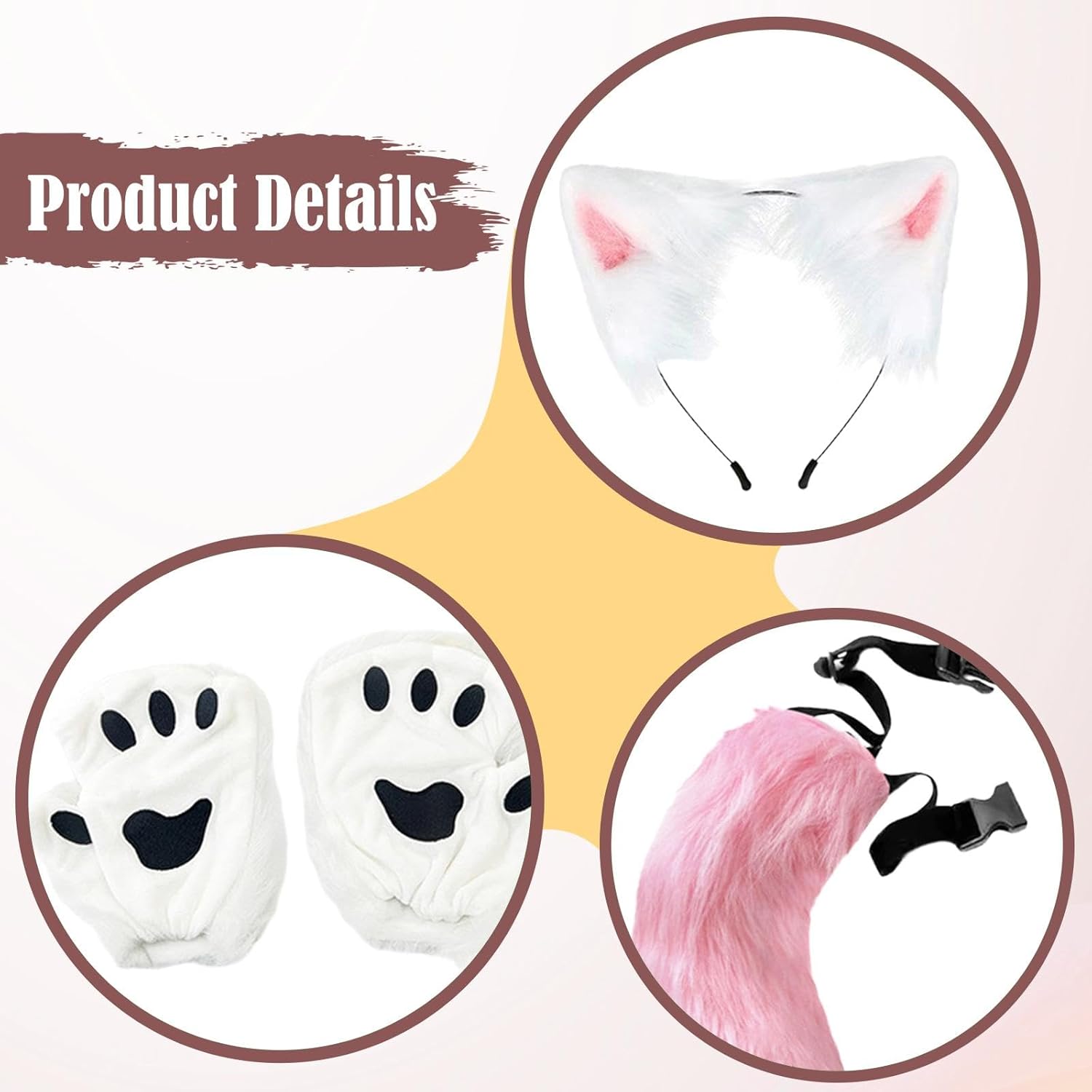 【Ottimo regalo】Questo grazioso e accattivante set di orecchie e coda di gatto è una meravigliosa scelta regalo per amici e familiari in occasione di compleanni, feste, festività, riunioni, ecc. 【Materiale di alta qualità】Il set di orecchie e coda di è realizzato in peluche di alta qualità, affidabile, leggero e comodo al tatto 【Set Cosplay Animale】: Grazioso set di costumi con orecchie e coda di animali, include 1 fascia per le orecchie, 1 coda e 1 paio di guanti con zampe, ottimo per il cosplay di un gatto o di una 【Facile da indossare】Questo set di copricapi con orecchie di animali è facile da indossare e da togliere, permettendoti di vestirti rapidamente. La coda ha una cintura regolabile, adatta a persone diverse 【Ampie occasioni】Il set cosplay di orecchie e coda è ampiamente adatto per Halloween, feste, carnevali, spettacoli teatrali, oggetti di scena per foto, spettacoli, feste a tema, travestimenti, giochi di ruolo, ecc.