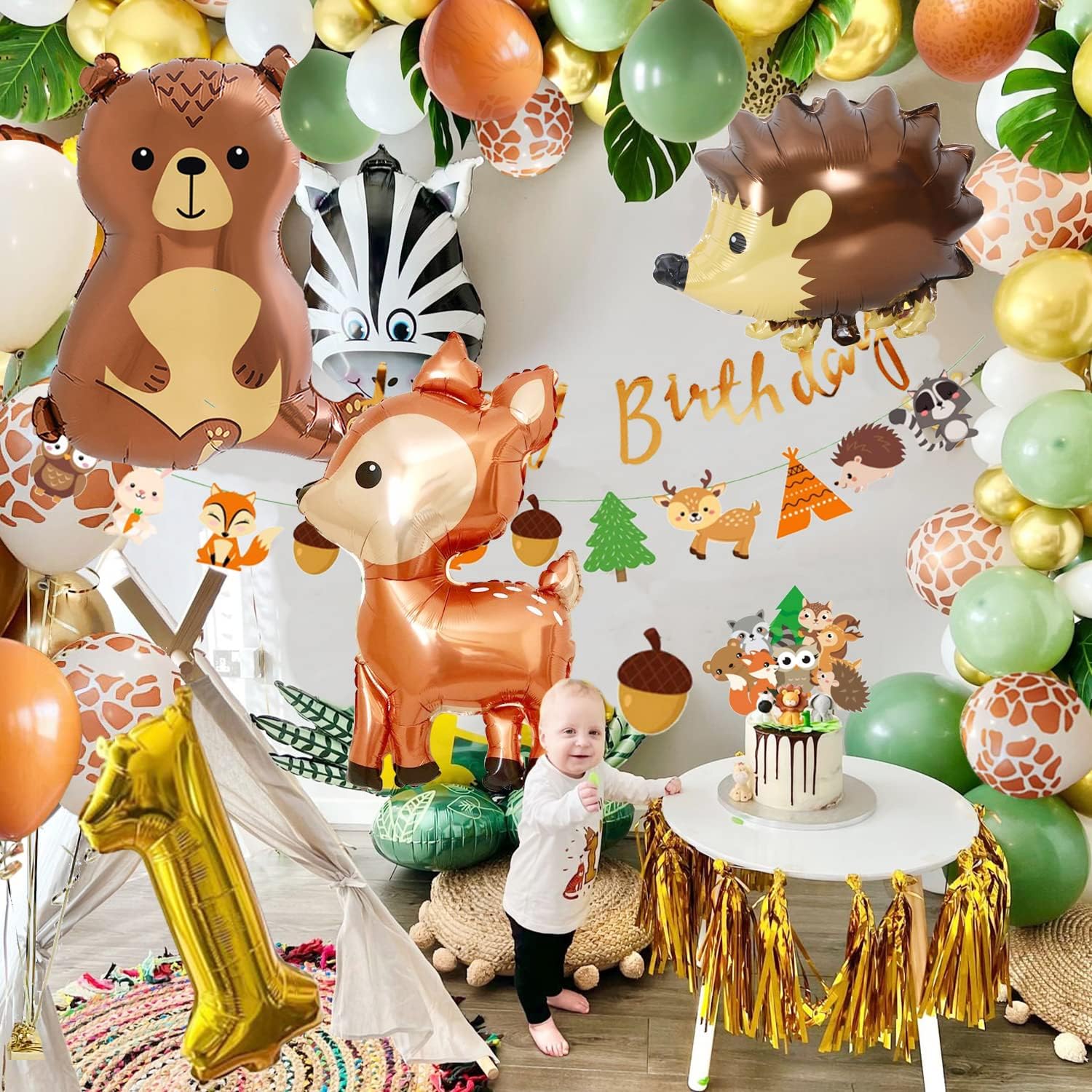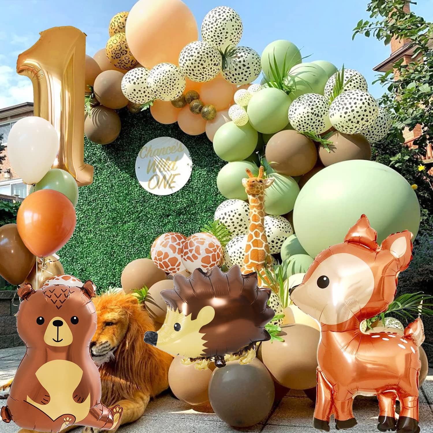 Decorazione per il 1° compleanno: Include palloncini in lattice*47, palloncino "Orso" *1, palloncino "Riccio" *1, palloncino "Cervo" *1, palloncino in foil numero "1" *1, striscione "BUON COMPLEANNO" *1, striscione "Animali della foresta" *1, decorazione per torta *1, catena per palloncini *1, nastro da 10 m *1. Decorazione di compleanno con animali della foresta: questa decorazione per il 1° compleanno comprende simpatici animali della foresta, palloncini con stampe di cervi, con il tema verde salvia e marrone arancione, molto adatti per primavera, estate, autunno e inverno, oltre a varie bandiere di animali della giungla e decorazioni per torte. Crea una festa a tema animali della foresta calda e allegra per i tuoi bambini. Facile da montare: è facile da montare e costruire da solo, catena di palloncini e punto di colla per palloncini, è facile realizzare una ghirlanda di palloncini. Un set completo di decorazioni di compleanno per un bambino di 1 anno è sufficiente per creare una festa di compleanno nella giungla safari unica. Materiale ecologico riutilizzabile: i palloncini per il 1° compleanno sono realizzati in gomma naturale e materiali in foglio di alluminio di alta qualità, spessi e resistenti, non tossici e innocui e sicuri da usare. Tutti gli accessori nella confezione possono essere riutilizzati in qualsiasi luogo della festa. Buon servizio: un eccellente servizio clienti è la nostra massima priorità. Tutti i prodotti vengono attentamente controllati prima di spedirli ai clienti. Se avete domande, non esitate a contattarci.