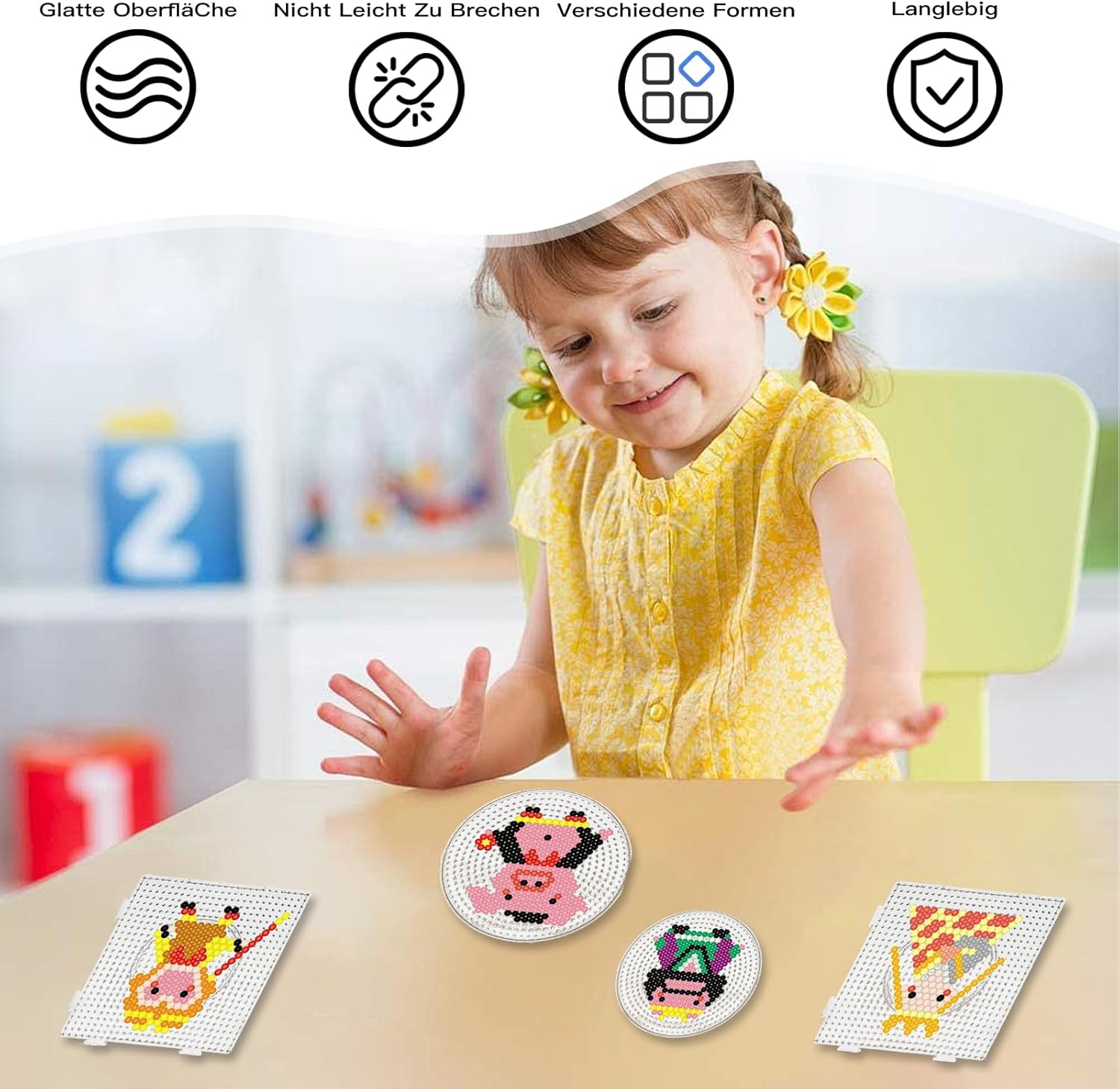 ELENCO DELLA CONFEZIONE: La confezione contiene 9 spille trasparenti con perline calde, inclusi cerchi, quadrati, esagoni e cuori. Adatto a utenti dai 14 anni in su. MATERIALE DI ALTA QUALITÀ: i nostri prodotti sono realizzati in EVA di alta qualità. La superficie è liscia, i tagli sono morbidi, non è facile da rompere e sono molto resistenti. VARIE FORME: I nostri design sono disponibili in un'ampia varietà di forme e dimensioni, consentendo agli appassionati di artigianato di essere più fantasiosi. AMPIA APPLICAZIONE: questo prodotto è molto adatto per i giochi puzzle a forma di fagiolo. Sarà un regalo molto utile per gli appassionati di artigianato. FACILE DA USARE: è molto facile da usare, basta posizionare le perline sulla lavagna. Posiziona semplicemente le perline sulla tavola, coprile con carta da stiro e usa un ferro da stiro per fondere insieme le perline.