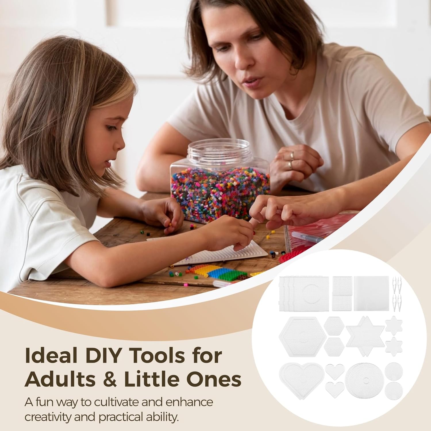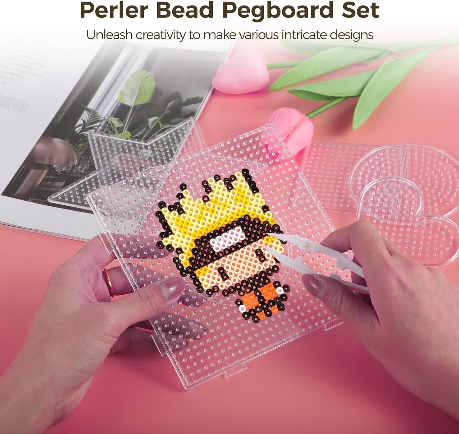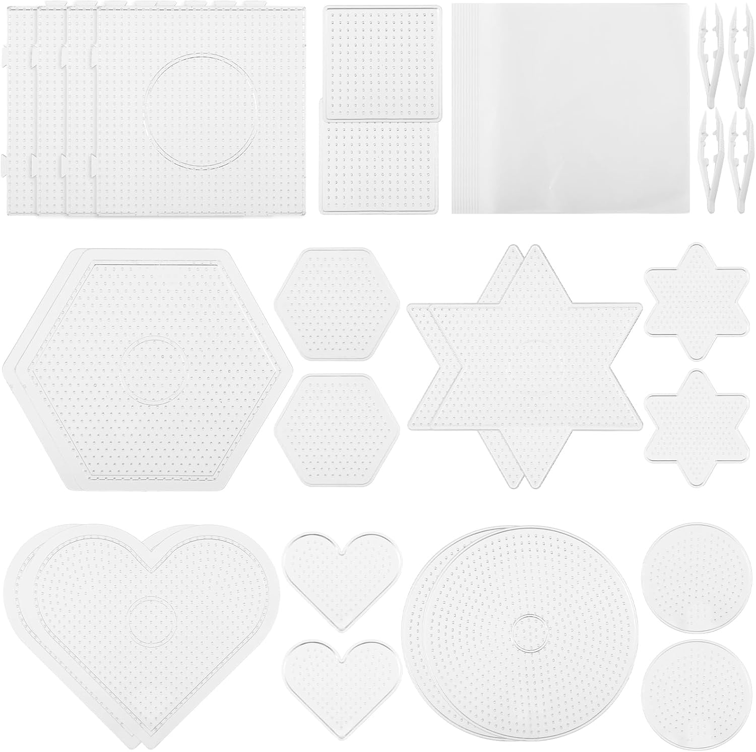 【Opzioni di forme multiple】22 pannelli forati in cinque forme diverse; compreso quadrato, esagono, stella, cuore, cerchio; Ideale per vari progetti creativi. Plastica robusta e trasparente: realizzata in plastica leggera ma allo stesso tempo; durevole contro screpolature e scolorimento; la trasparenza facilita il posizionamento delle perline Allineamento preciso delle perline: i fori del pannello forato sono chiaramente visibili, rendendo il posizionamento delle perline facile e preciso; promuove la coordinazione occhio-mano 10 fogli di carta termoadesiva inclusi: premi in modo sicuro le creazioni di perline per impostare i disegni; garantisce che tutti i progetti rimangano intatti; ideale per adulti e bambini Uso pratico: posizionare le perline con una pinzetta, coprire con carta da stiro e applicare calore per fonderle insieme; un procedimento semplice per gli appassionati del fai da te