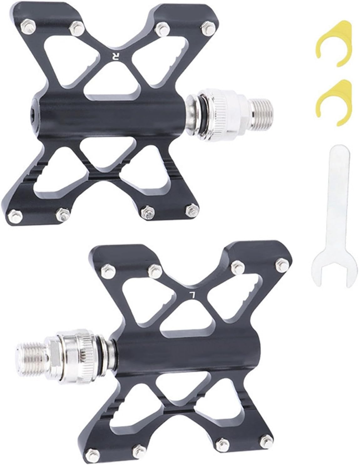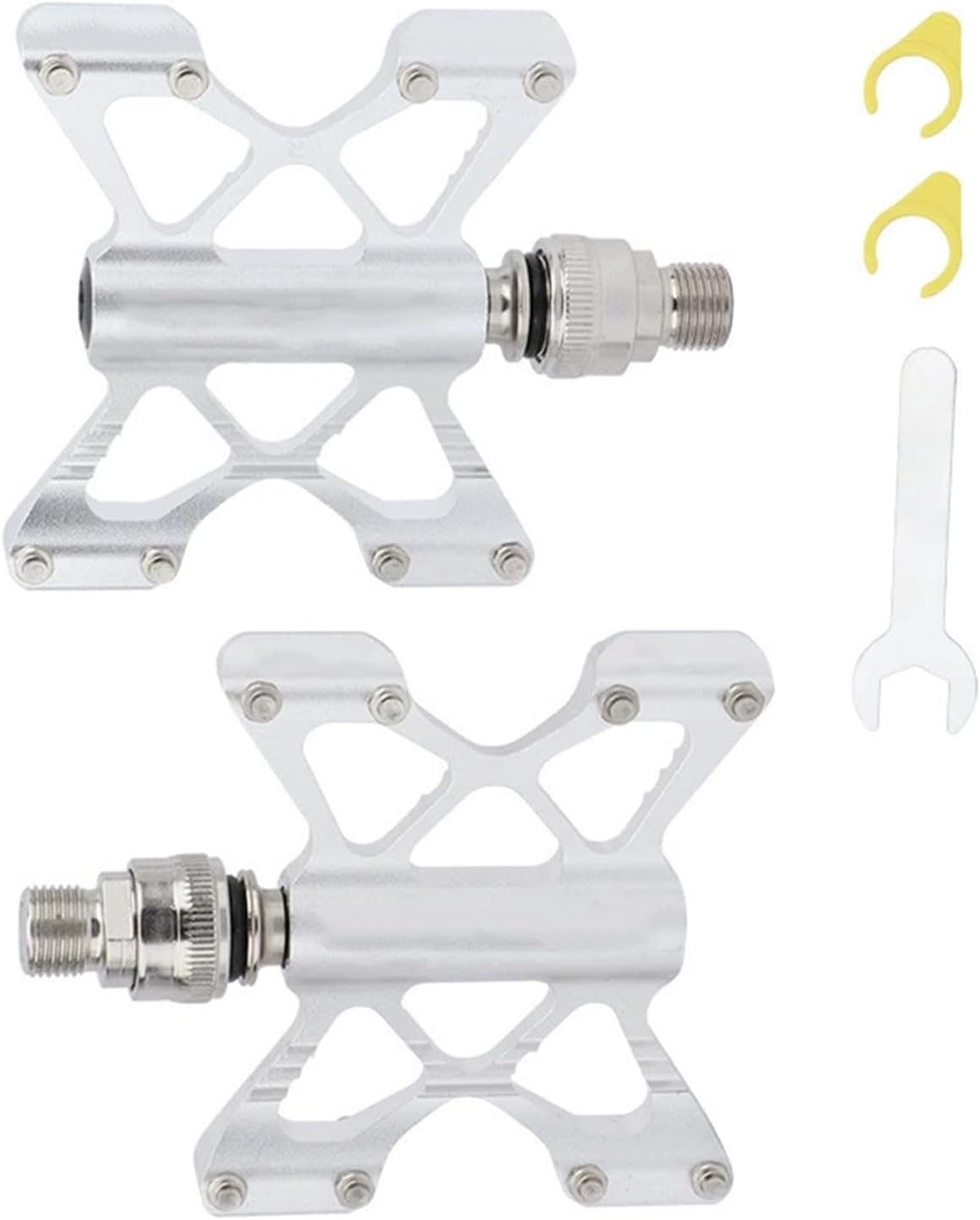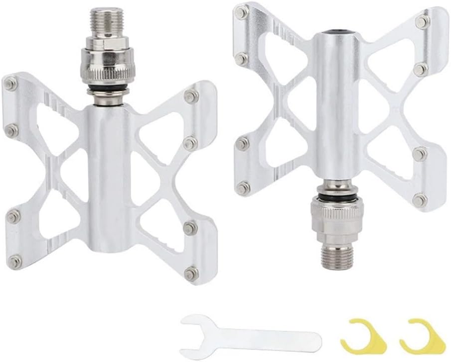 Struttura in lega di alluminio: realizzati in lega di alluminio, questi pedali per bici sono progettati per resistere a graffi e usura, un'esperienza di guida sicura e affidabile. [Cuscinetto avanzato DU sigillato] Dotato di tecnologia dei cuscinetti DU per prestazioni fluide e lubrificazione a risparmio di lavoro, mentre il design antiscivolo del chiodo fornisce stabilità durante ogni pedale. Efficace protezione da polvere e pioggia: la copertura antipolvere in lega di alluminio impedisce efficacemente l'ingresso di polvere e pioggia, prolungando significativamente la durata dei pedali. Compatibile con più biciclette: con un diametro di installazione di 14 mm, questi pedali si adattano a biciclette pieghevoli, mountain bike e bici da strada, rendendoli per varie esigenze di ciclismo. Design a sgancio rapido: il meccanismo a sgancio rapido consente un facile smontaggio con una semplice pressione della testa, offrendo comodità durante la commutazione o il trasporto della bici.