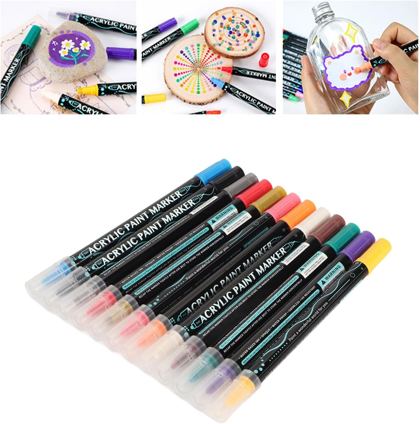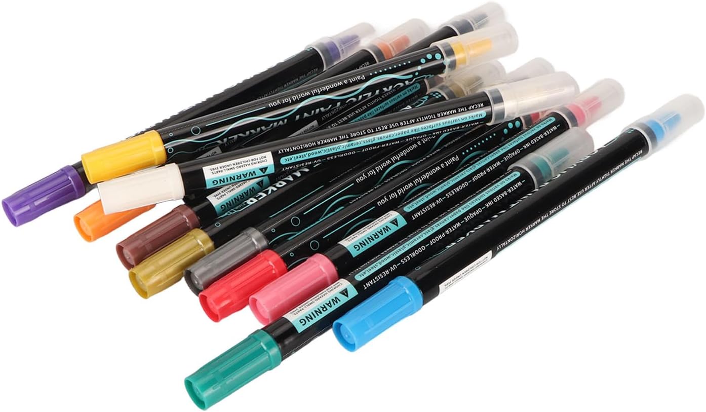 ? [Doppio Suggerimento]: versatile design a doppia punta con una punta rotonda per riempire grandi aree e una punta fine per delineare preciso, per una varietà di mestieri e opere d'arte. [Surface adatto]: goditi un flusso di inchiostro liscio e un'eccellente copertura su carta, rocce, legno, tela, tessuto e altro, rendendo questi marcatori di vernice versatili per molti progetti. [Uso multiuso]: i migliori marcatori di vernici acrilici per tutte le età, ideali per la pittura a roccia, artigianato in legno, arte di tela, design di tessuti e vari progetti fai -da -te per infinite creatività.