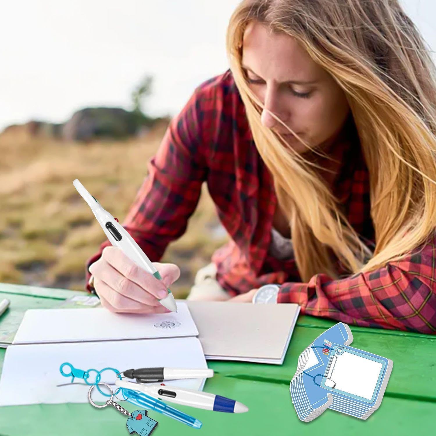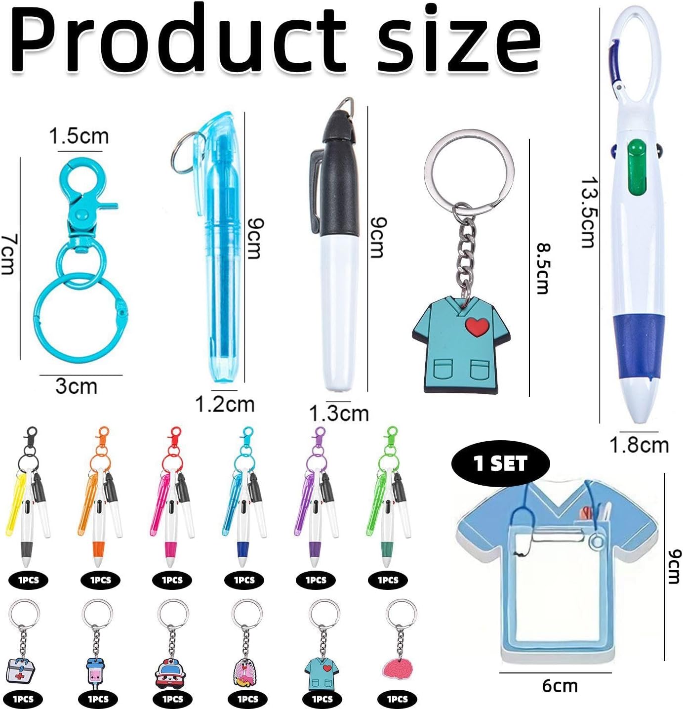 【Contenuto Del Prodotto】Riceverai 1 Set Di 6 Evidenziatori Di Punta, 6 Pennarelli Permanenti, 6 Penne A Sfera Retrattili, 6 Badge E 6 Portachiavi. In Combinazione Con Un Set Di Quaderni, La Penna Da Infermiera Misura 1,8 X 13,5 Cm Ed È Disponibile In Vari Colori. La Dimensione Del Blocco Note È 6 X 9 Cm E Il Colore È Blu, Adatto Al Lavoro Quotidiano Degli Infermieri. 【Materiale Del Prodotto】 Questa Penna Per Infermiere È Realizzata In Plastica Resistente, Robusta E Durevole E Può Scrivere Facilmente. Il Blocco Note È Realizzato In Materiale Peva, Che È Impermeabile E Può Tenere I Registri Organizzati In Vari Ambienti Di Lavoro. 【Design Multiuso】 Questo Prodotto È Dotato Di Funzioni Portachiavi E Cordino, Che Sono Convenienti Per Gli Infermieri Da Trasportare E Utilizzare In Qualsiasi Momento Durante Il Lavoro. Il Design Multicolore Della Penna Consente Di Contrassegnare Penne Diverse, Migliorando L'Efficienza Del Lavoro. 【Portatile E Facile Da Usare】 Questa Combinazione Di Penne Per Infermiere Ha Un Design Compatto Ed È Facile Da Trasportare. È Adatto Per Essere Appeso Alle Uniformi O Alle Borse Degli Infermieri. Il Blocco Note È Piccolo E Leggero, Facile Da Trasportare E Adatto Per Annotare Rapidamente Informazioni Importanti. 【Set Pratico】 Questo Prodotto Non Contiene Solo 30 Penne Per Infermiere, Ma Viene Fornito Anche Con Un Pratico Blocco Note Per Soddisfare Le Diverse Esigenze Degli Infermieri Al Lavoro. Questo È Un Set Di Accessori Per Infermiere Molto Pratico.