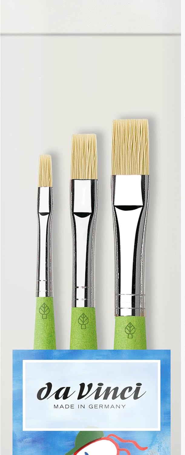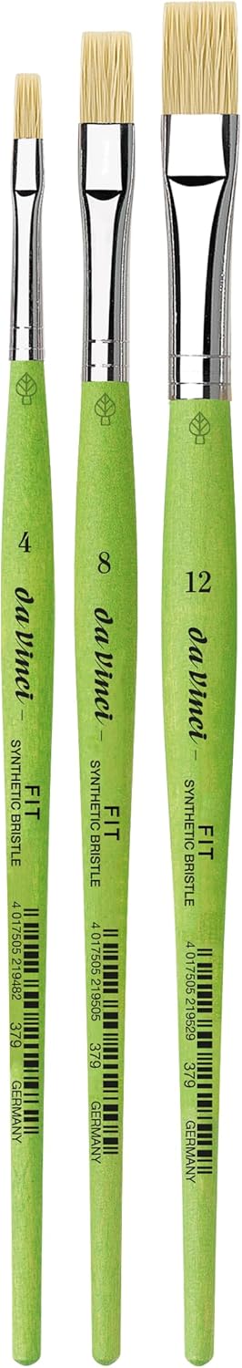 Materiale: le morbide fibre sintetiche grigie sono state sviluppate appositamente per la pittura amatoriale e scolastica. Offrono un comportamento di pittura superiore rispetto ai tradizionali pennelli naturali per capelli, a un prezzo interessante. Versatile: ideale per studenti, hobbisti e principianti. I pennelli sono ideali per vernici liquide e varie tecniche di pittura, da schizzi veloci a dettagli più fini. Lavorazione: i pennelli sono dotati di ghiere in alluminio senza cuciture che tengono saldamente le fibre e garantiscono un'elevata stabilità e durata, anche con un uso regolare. Maneggevolezza: gli steli di colore verde opaco con struttura antiscivolo sono comodi da tenere in mano e consentono un lavoro sicuro e controllato, ideale per lunghe sessioni di pittura. Lunga durata: i pennelli larghi di questa serie sono particolarmente resistenti grazie alla tecnologia DUROPLUS. Mantengono a lungo la loro forma ed elasticità anche con un uso intensivo.
