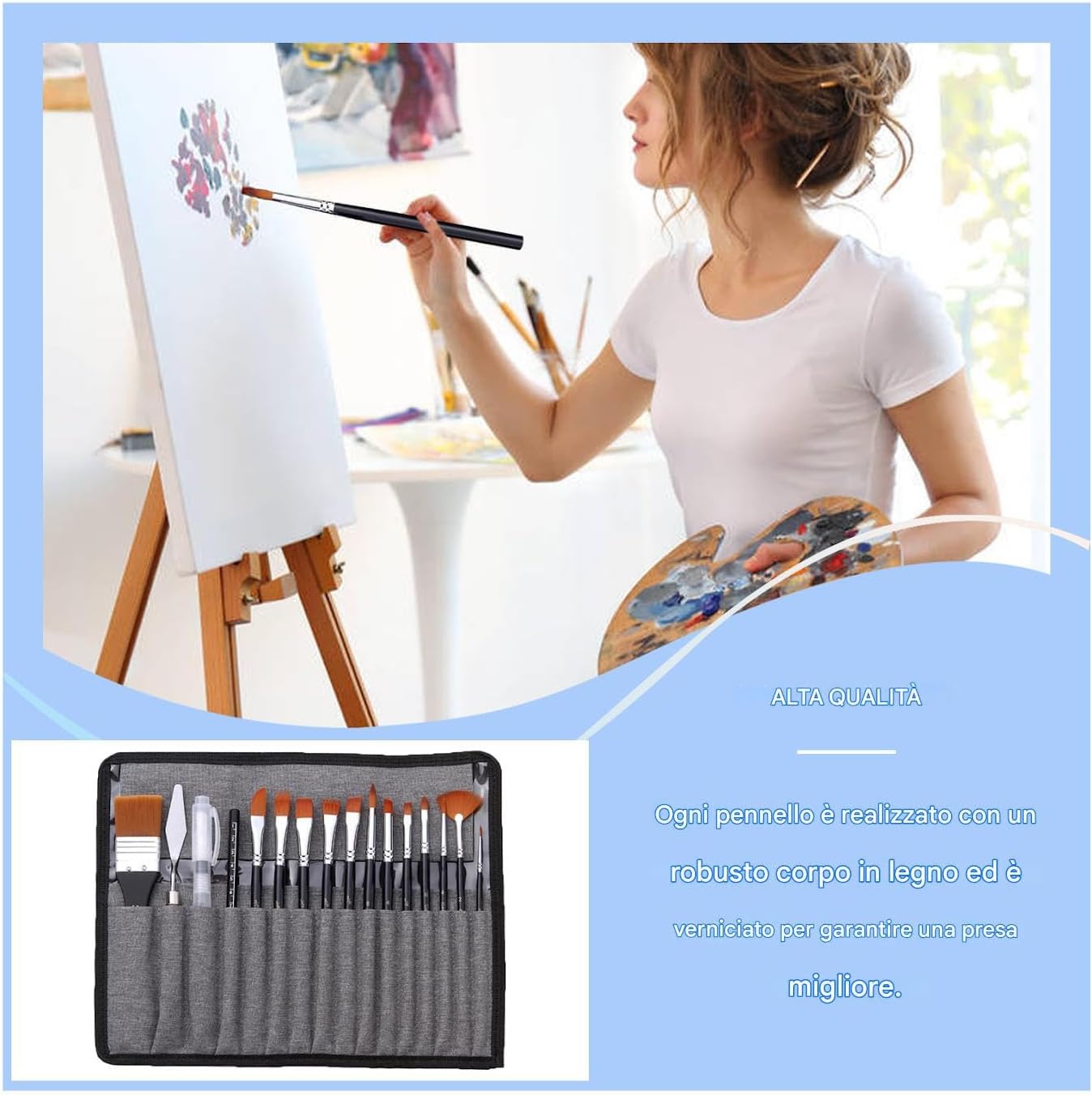 Varietà di applicazioni: migliora la tua arte con il set di pennelli acrilici, tra cui fodera, , angolato, ventilatore e pennelli a pettine, a 1 spugna d'arte, 1 penna d'acqua e 1 d'arte per tecniche di pittura versatile Organizzazione furba: ogni pennello è assicurato per essere completato fino al prossimo utilizzo; Basta arrotolarli, mettili nella borsa in tela in tessuto leggero e mantieni la tua creatività in movimento Durabilità affidabile: con materiale in legno resistente all', il nostro set di pennelli è robusto, non facilmente deformato e progettato per resistere alla ruggine, garantendo un uso robusto Impressionante versatilità: rilasciare creatività per artisti in , che siano principianti, studenti, hobbisti o professionisti; Adatto per la giornata per bambini o qualsiasi occasione Ampia applicazione: sollevare il tuo mestiere con dettagli di precisione su una varietà di superfici tra cui pelle, e ceramiche; Adatto per il rilascio di creatività nelle opere d'arte