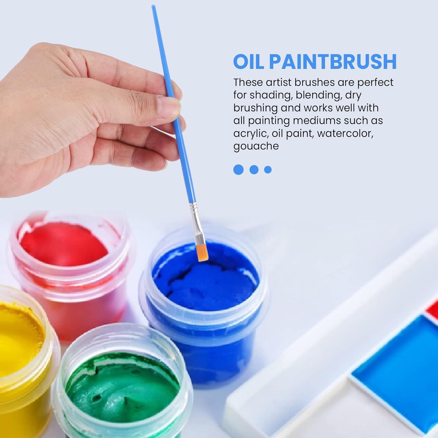 2.I pennelli artistici resistono a lungo nell'uso quotidiano e si puliscono facilmente con acqua e sapone 3.Questi pennelli per artisti sono perfetti per sfumare, sfumare, spazzolare a secco e funzionano con tutti i mezzi di pittura come acrilico, pittura ad olio, , , e opzione economica come pennelli usa e getta per applicare la colla o la pittura 1.La maggior parte dei pennelli per pittura è ideale per i principianti, la creazione di gruppi e la lezione di pittura ad . 4. perfetto per lezioni di pittura, feste artistiche di compleanno, progetti artistici, modellini in scala, pittura di viso e corpo