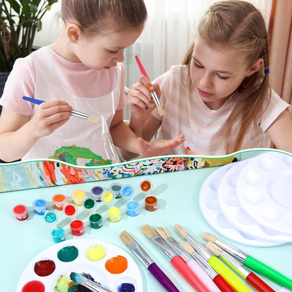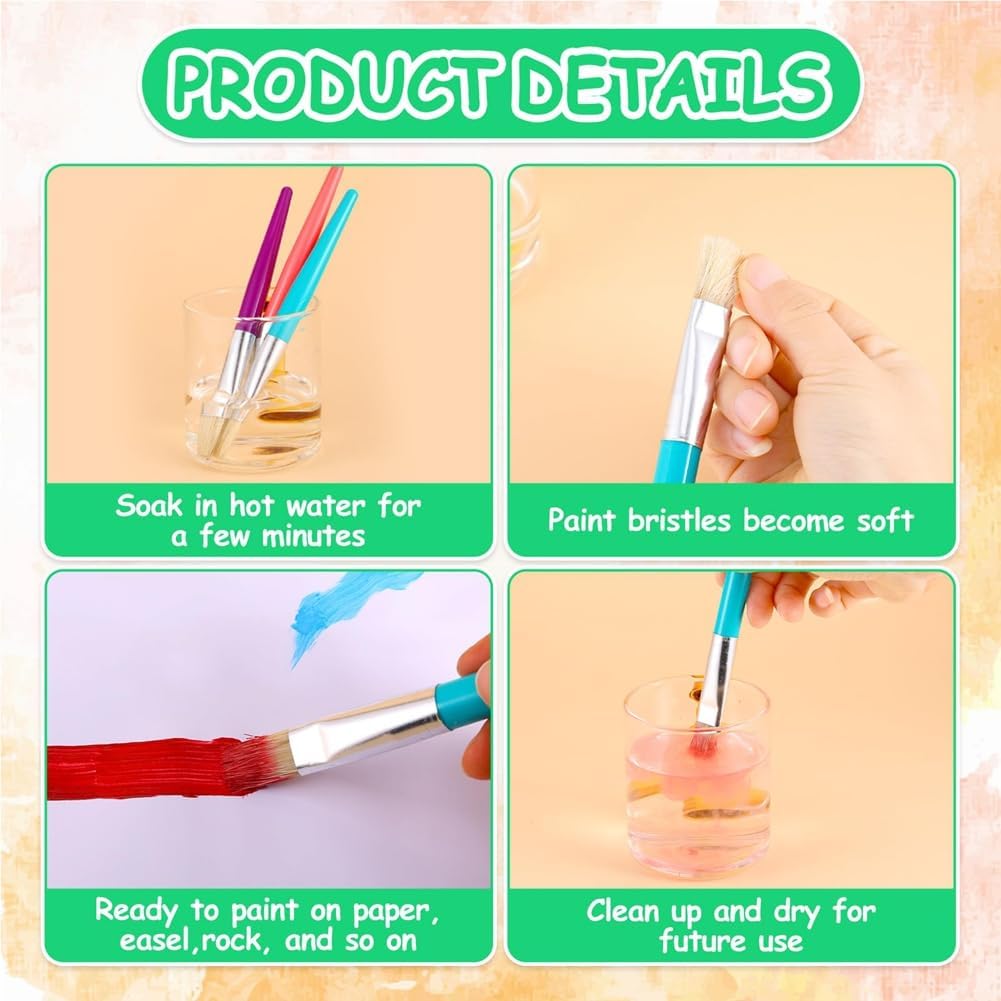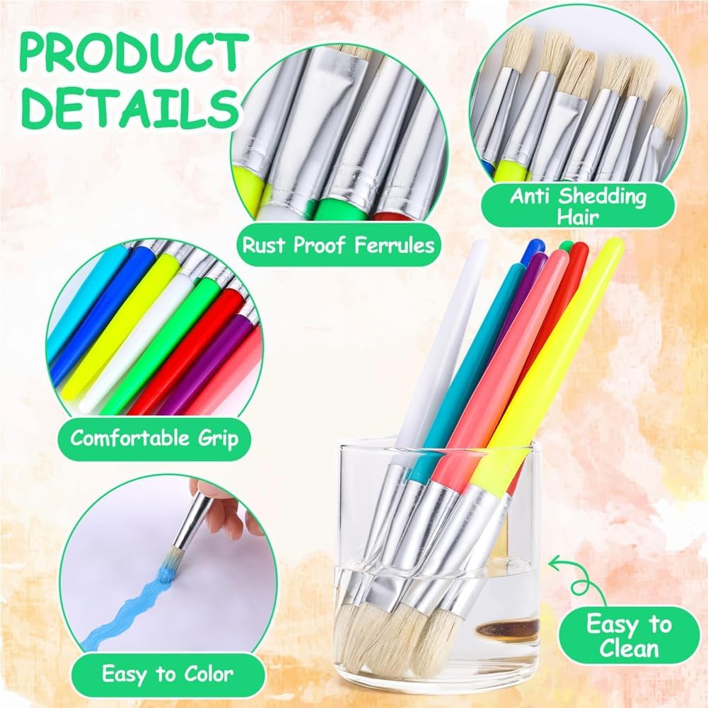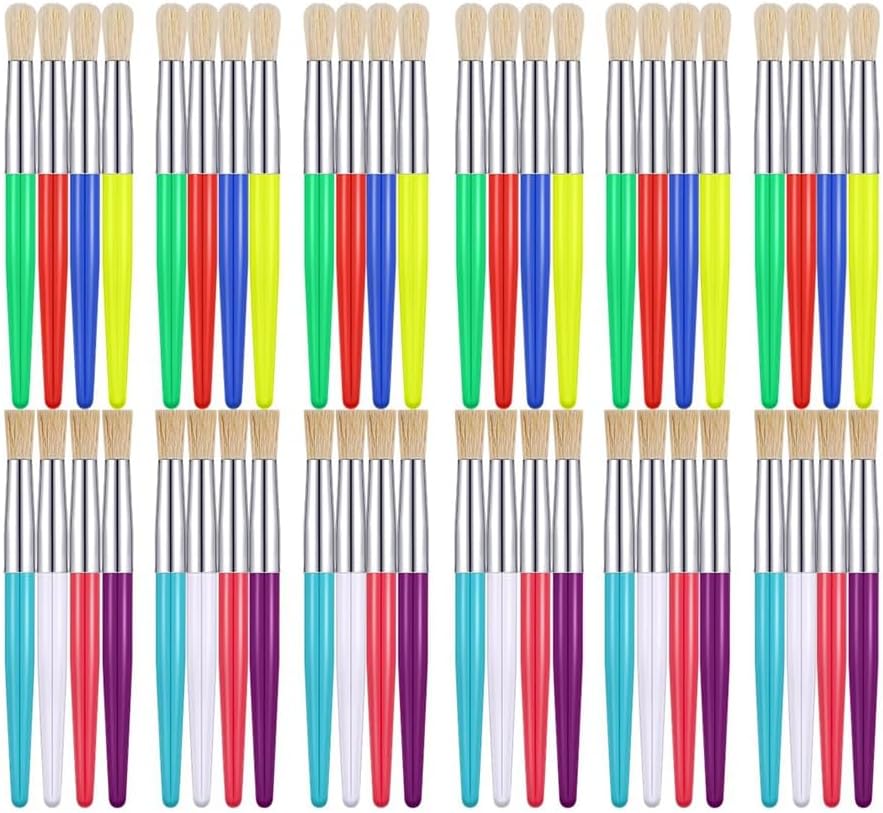 Condividete questi pennelli con i vostri bambini, vicini, compagni di classe, conquisterete sicuramente il loro favore, i pennelli e le tavolozze pratiche possono aiutarvi a trascorrere momenti felici dedicandovi alla pittura. Utilizza il trasparente per proteggere i vestiti, le gonne o le camicie del tuo bambino da sporco e bagnato; risparmia tempo e costi di pulizia; ogni pezzo è confezionato singolarmente, trasportabile e utilizzabile. Questi pennelli paffuti per bambini in età prescolare sono realizzati con setole, manici colorati e ghiere antiruggine; le setole sono saldamente fissate ai pennelli per bambini e non ; la da 2,8 pollici è spessa e resistente, comoda per i bambini in età prescolare che vogliono dipingere. Riceverai 24 pennelli rotondi e 24 pennelli piatti, 24 tavolozze e 24 grembiuli usa e getta; una quantità abbondante per soddisfare le esigenze di pittura di almeno 24 bambini, ognuno contiene 2 pennelli. Questi pennelli dai colori vivaci sono facili da e usare per i più piccoli e possono contenere molta ; perfetti per i bambini fino ai primi della scuola elementare; possono essere facilmente lavati con un po' di acqua calda e sono resistenti e riutilizzabili.