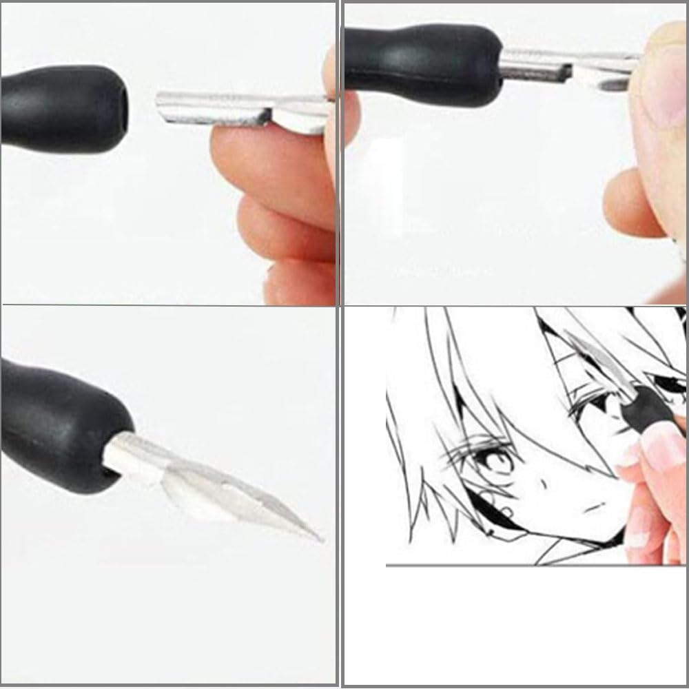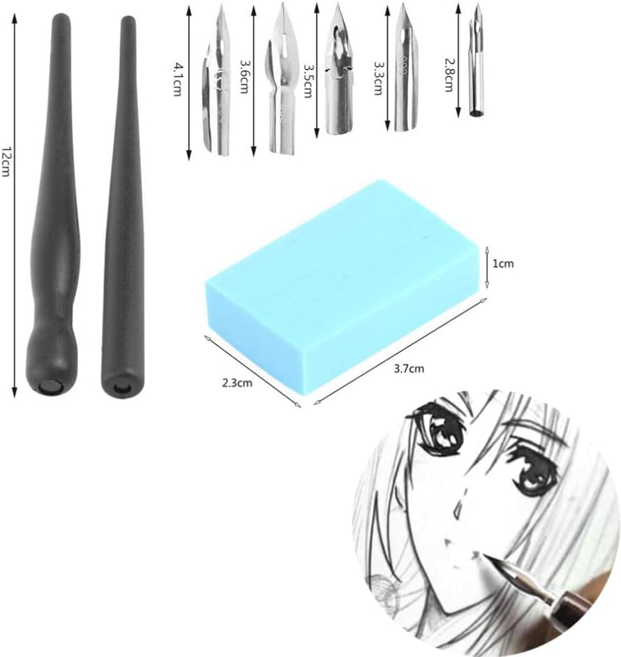 Materiale Sicuro:Il Supporto Della Penna è Realizzato In Plastica Di Alta Qualità, Robusto E Confortevole Da Afferrare. La Punta Della Penna è Realizzata In Acciaio Inossidabile, Resistente Alla Ruggine,La Gomma è Fatta Di Materiale Tpr, Che è Morbida. Il Pacchetto Include:La Confezione Contiene 2 Portapenne, 1 Gomma E 5 Set Di Pennini (Un Pennino Rotondo, Un Pennino Per Studenti, Un Pennino A Fischietto, Un Pennino D E Un Pennino G). Per Soddisfare Le Tue Diverse Esigenze Di Pittura. Ampio Uso:Questo Set Di Penne Manga è Adatto Per Manga, Animazione, Disegno A Mano, Scrittura, Incisione, Calligrafia E Disegno Artistico,Ottimo Set Di Strumenti Per La Pittura Manga Per Artisti E Principianti. Facile Da Usare:Inserire La Punta Della Penna Nella Porta Di Inserimento Metallica Sul Corpo Della Penna Prima Dell'Uso E Immergerla Nell'Inchiostro Prima Dell'Uso. Le Linee Possono Produrre Linee Morbide E Spesse In Base Alla Forza, All'Angolo E Alla Quantità Di Inchiostro Impregnato. Portapenne Leggero E Comodo Da Impugnare: Questi Due Portapenne Sono Spessi Ma Leggeri, Che Garantiscono Una Presa Confortevole.Il Pennino A Immersione Della Penna A Immersione Per Fumetti, Facile Da Controllare E Stabile Da Usare, E Disegna Facilmente Linee Morbide.
