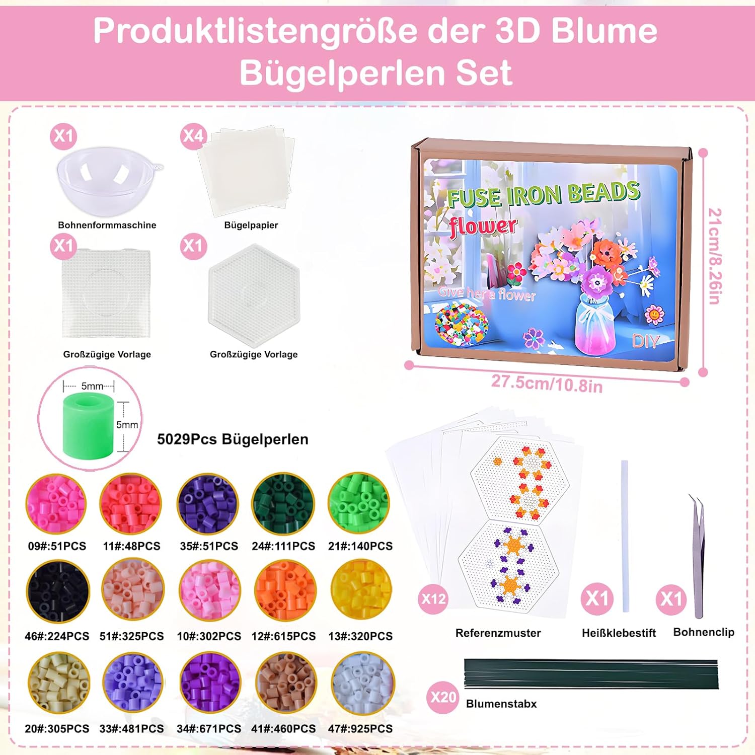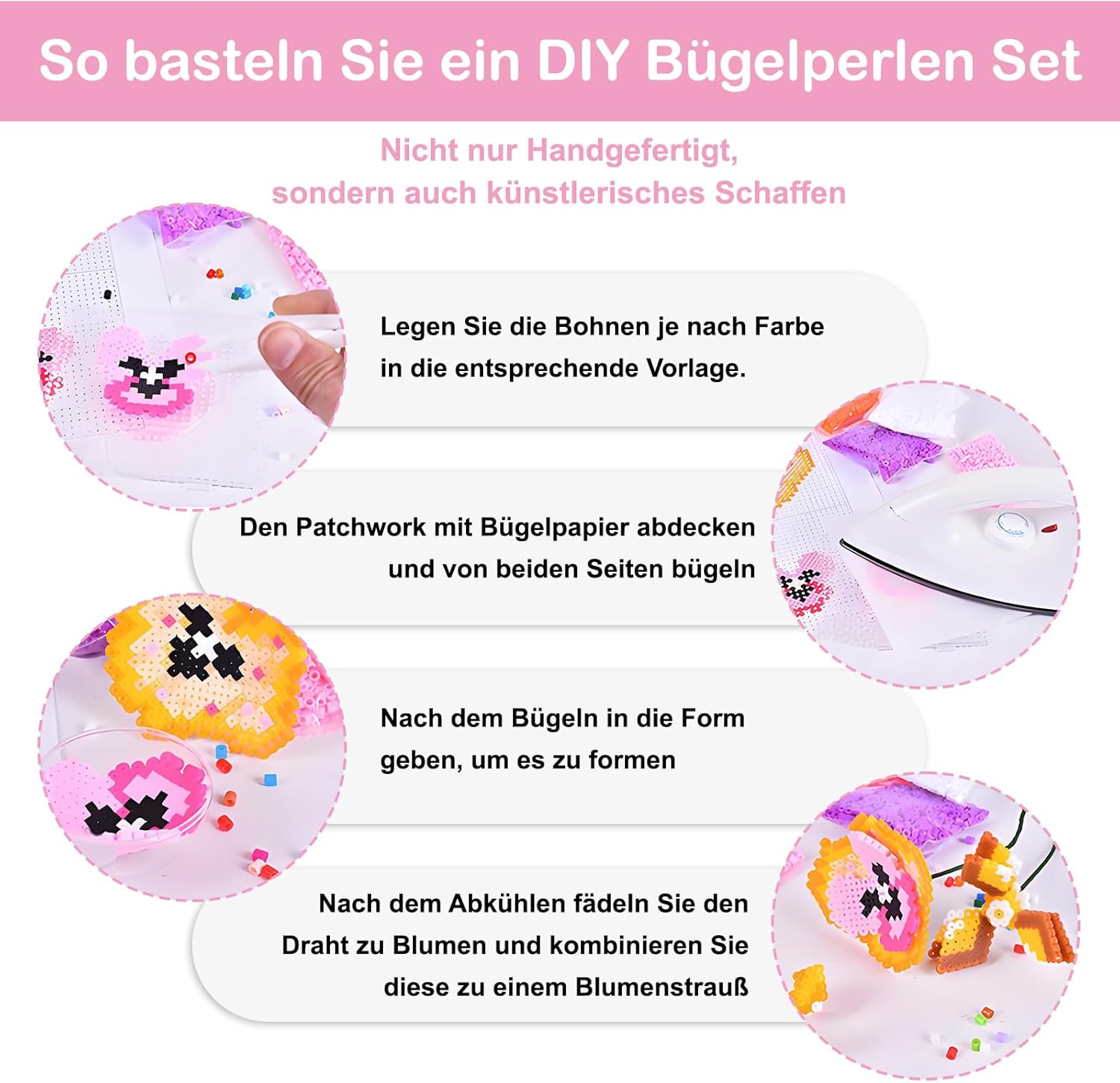 Accessori completi di perline fai da te: questo set di perline da stirare contiene 15 colori vivaci di perline da 5 mm, 1 clip, 1 styler, 2 stencil da stirare, 4 supporti per stirare, 1 penna di colla a caldo, 20 penne a fiore di filo verde, 12 motivi di riferimento che consentono di creare molti bellissimi bouquet, quindi metterlo in un vaso. Il numero di perline da stirare dipende dalle esigenze del modello, quindi il numero di singoli colori varia Materiali di alta qualità: il nostro set di perline da stirare è realizzato in plastica sicura di alta qualità, durevole. I perni di plastica non si sciolgono o si piegano durante la stiratura. La superficie delle perline è liscia, senza sbavature, perline da stirare. Il bambino può essere sicuro di usarlo. Il colore glitterato è luminoso e non sbiadisce, bello e durevole. Scatena la tua immaginazione con le nostre perline assortite Fiori tridimensionali fai da te: i fiori creati con il nostro set di perline da stirare sono vivaci tridimensionali. Confezione regalo o come progetto creativo, il nostro set delizierà i bambini e gli amanti del bricolage. Possono progettare da soli vari modelli e sono adatti per realizzare immagini pixel, piccole figure o per cucire e filare. e creare molte belle opere. Non serve solo come decorazione, ma ti dà anche un senso di realizzazione Allena diverse abilità: può aiutare i bambini a riconoscere la capacità dei bambini, il colore e migliorare la coordinazione occhio-mano dei bambini, la capacità di riconoscimento, il senso del tatto. Può stimolare l'innovazione dei bambini e aiutarli a migliorare il lavoro manuale. Adatto anche per adulti Facile da usare: il set di perline da stirare è molto semplice. Secondo il modello o le proprie esigenze, posizionare le perline sullo stencil adatto, quindi coprire le perline posizionate con carta da stirare, quindi stirare leggermente fino a quando le perline si sciolgono. Quindi stirare l"altro lato, lascialo raffreddare e il tuo capolavoro è pronto! Ideale per Natale, compleanni e occasioni speciali. Donate gioia creativa!